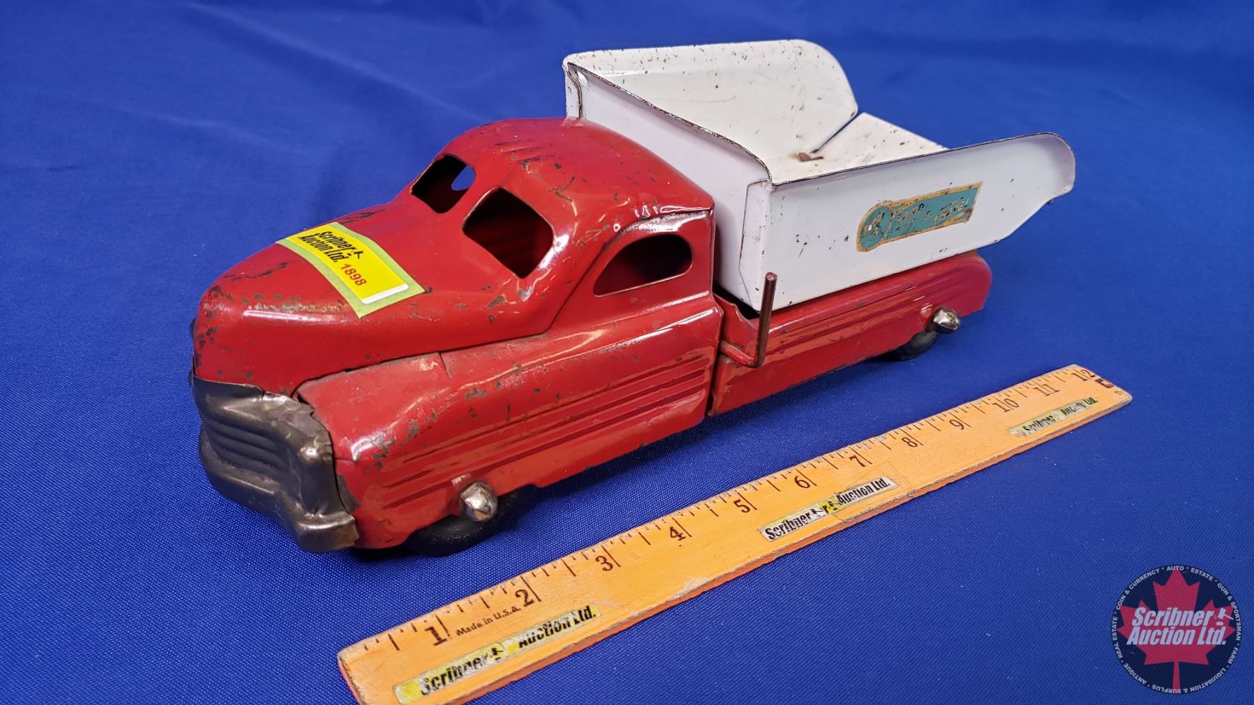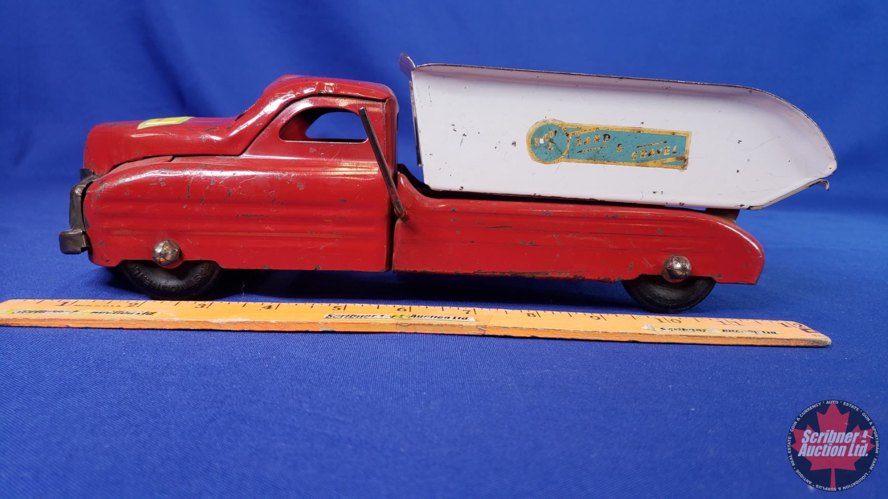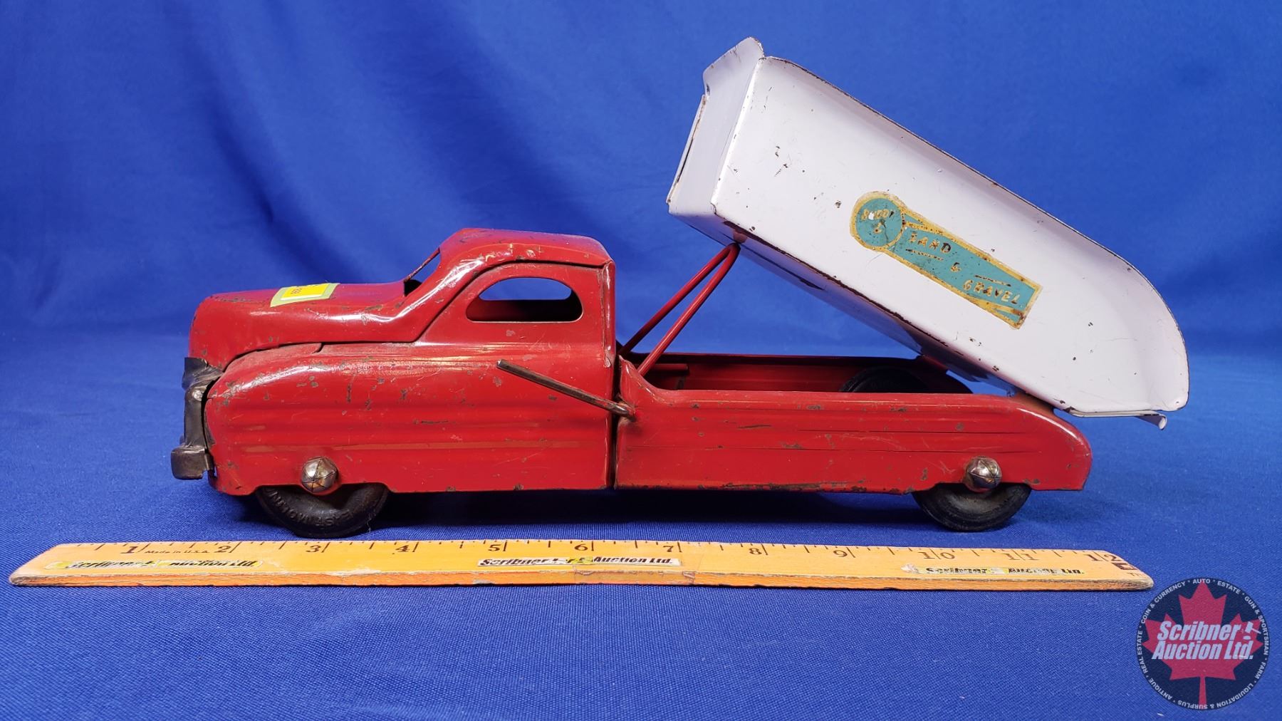 BUDDY L Metal Toy Dump Truck "Sand & Gravel" (4"H x 4-1/2"W x 13"L) (SEE PICS!)