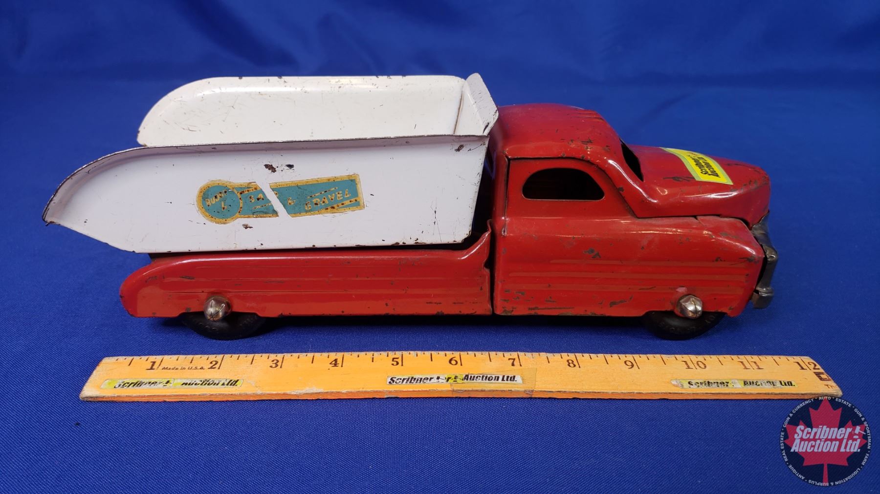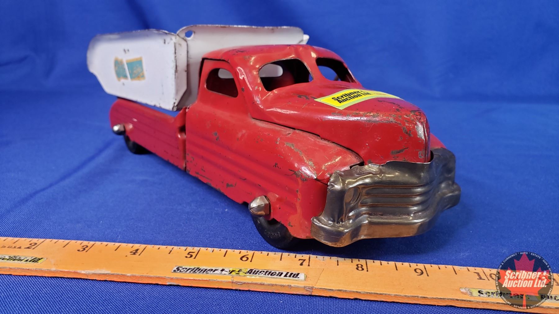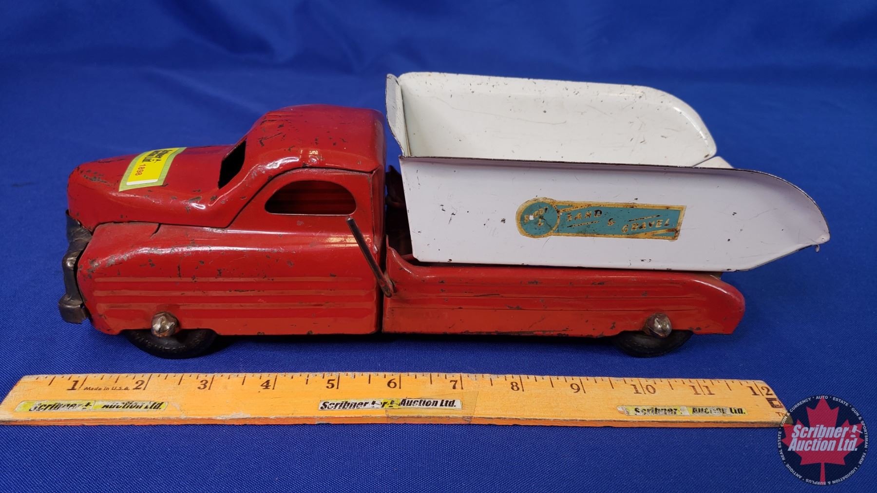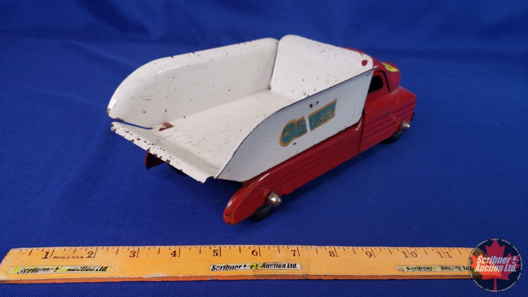 BUDDY L Metal Toy Dump Truck "Sand & Gravel" (4"H x 4-1/2"W x 13"L) (SEE PICS!)