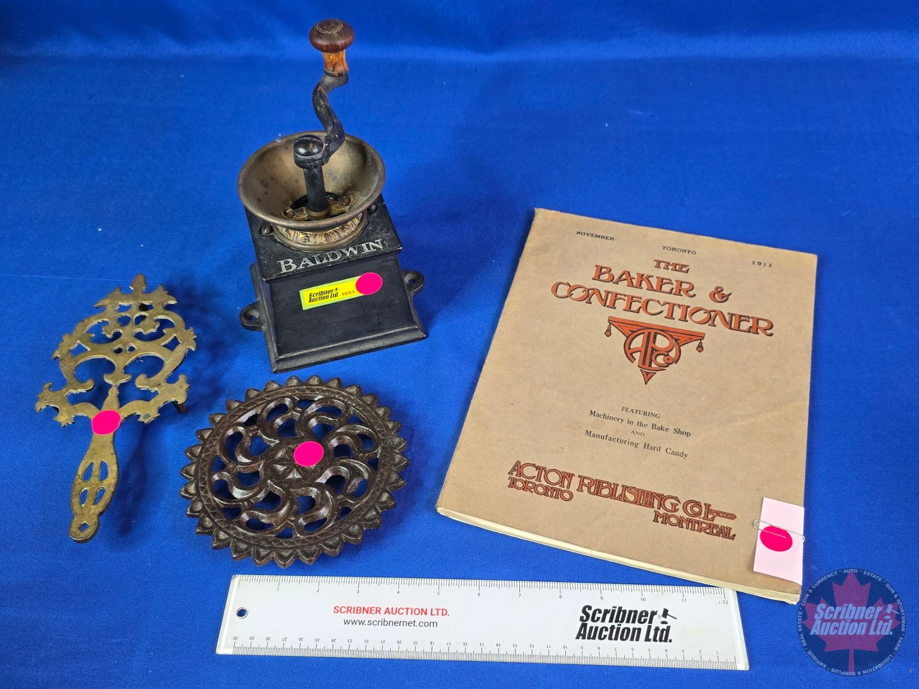 Baldwin Coffee Grinder, Trivets & The Baker and Confectioner Magazine