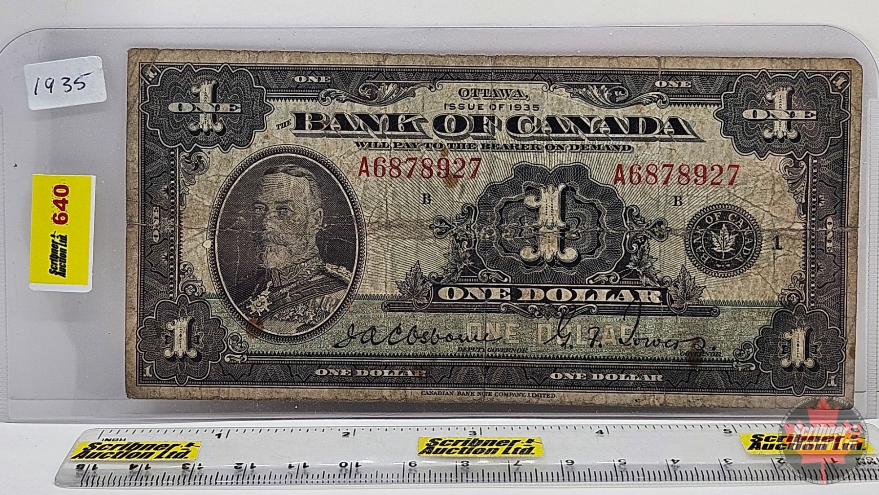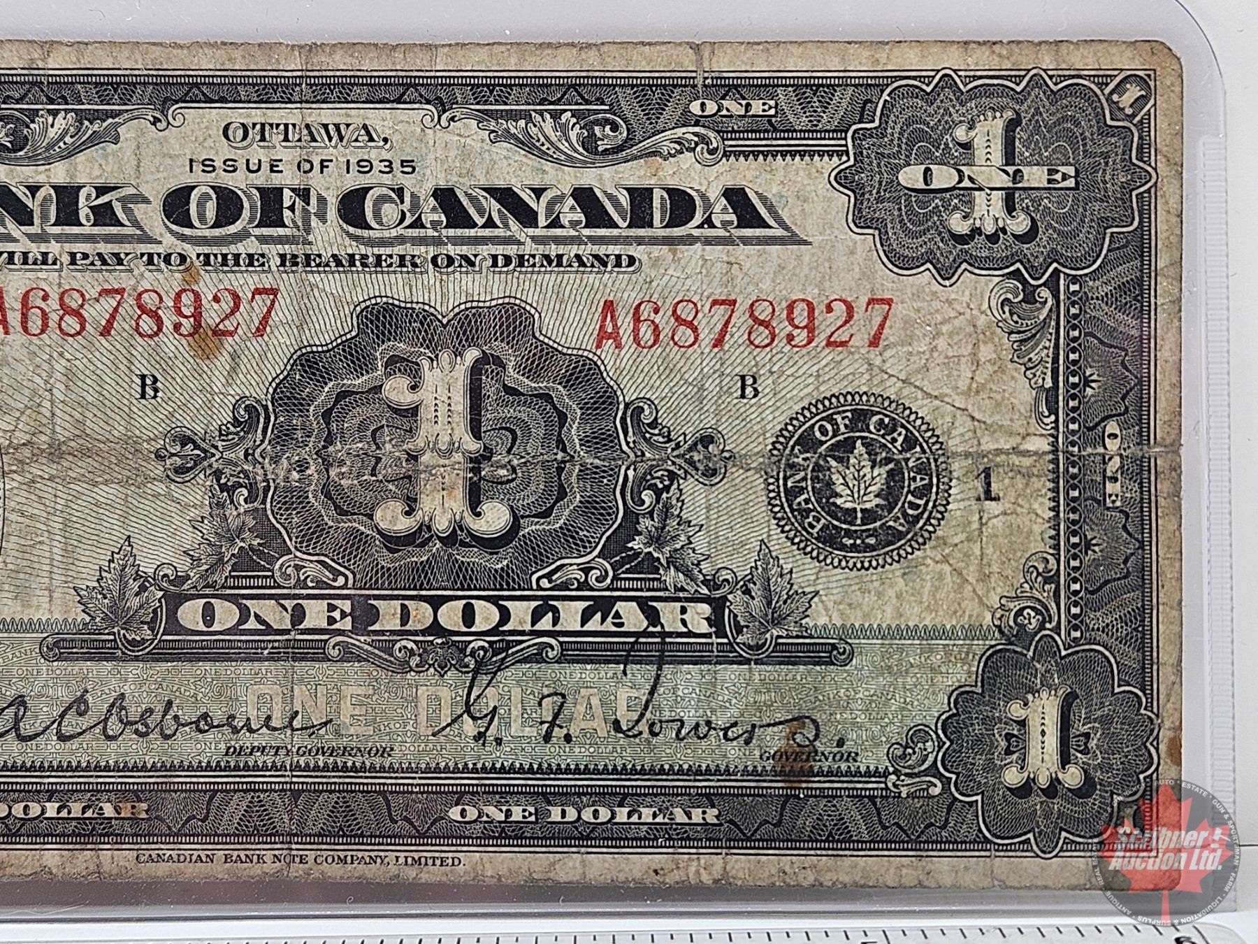 Bank of Canada $1 Bill 1935 King George : Osbourne/Towers #A6878927