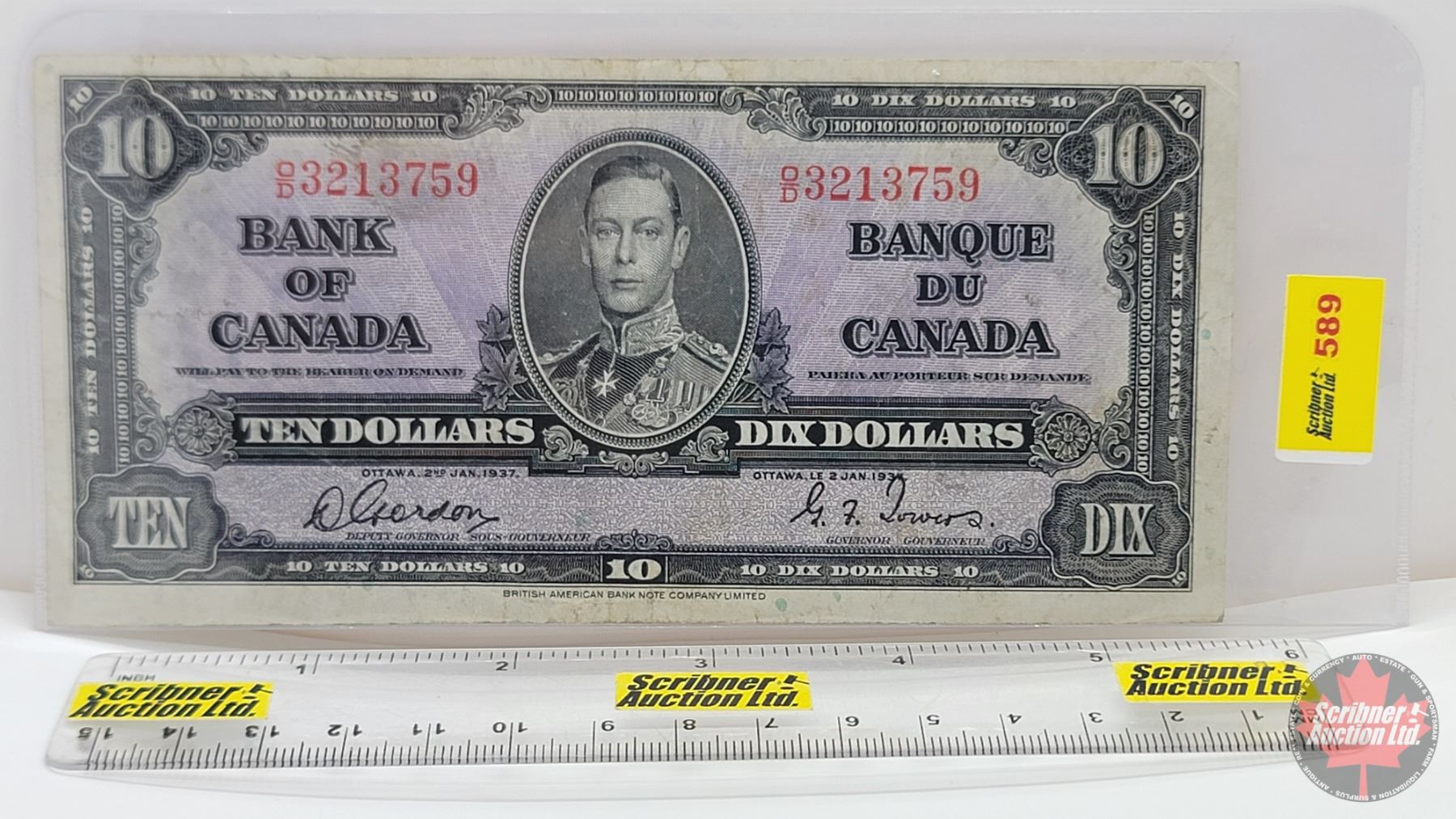 Bank of Canada $10 Bill 1937 : Gordon/Towers #OD3213759 (See Pics for Varieties, Conditions, Serial