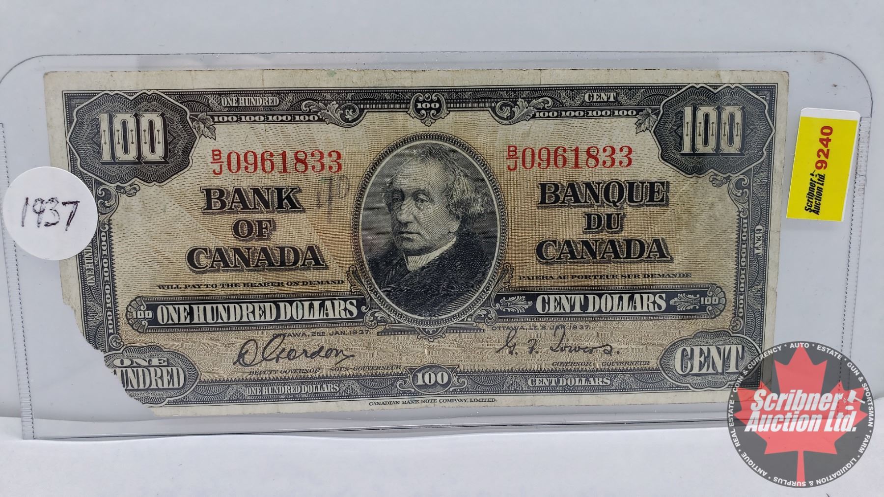 Bank of Canada $100 Bill 1937 : Gordon/Towers #BJ0961833