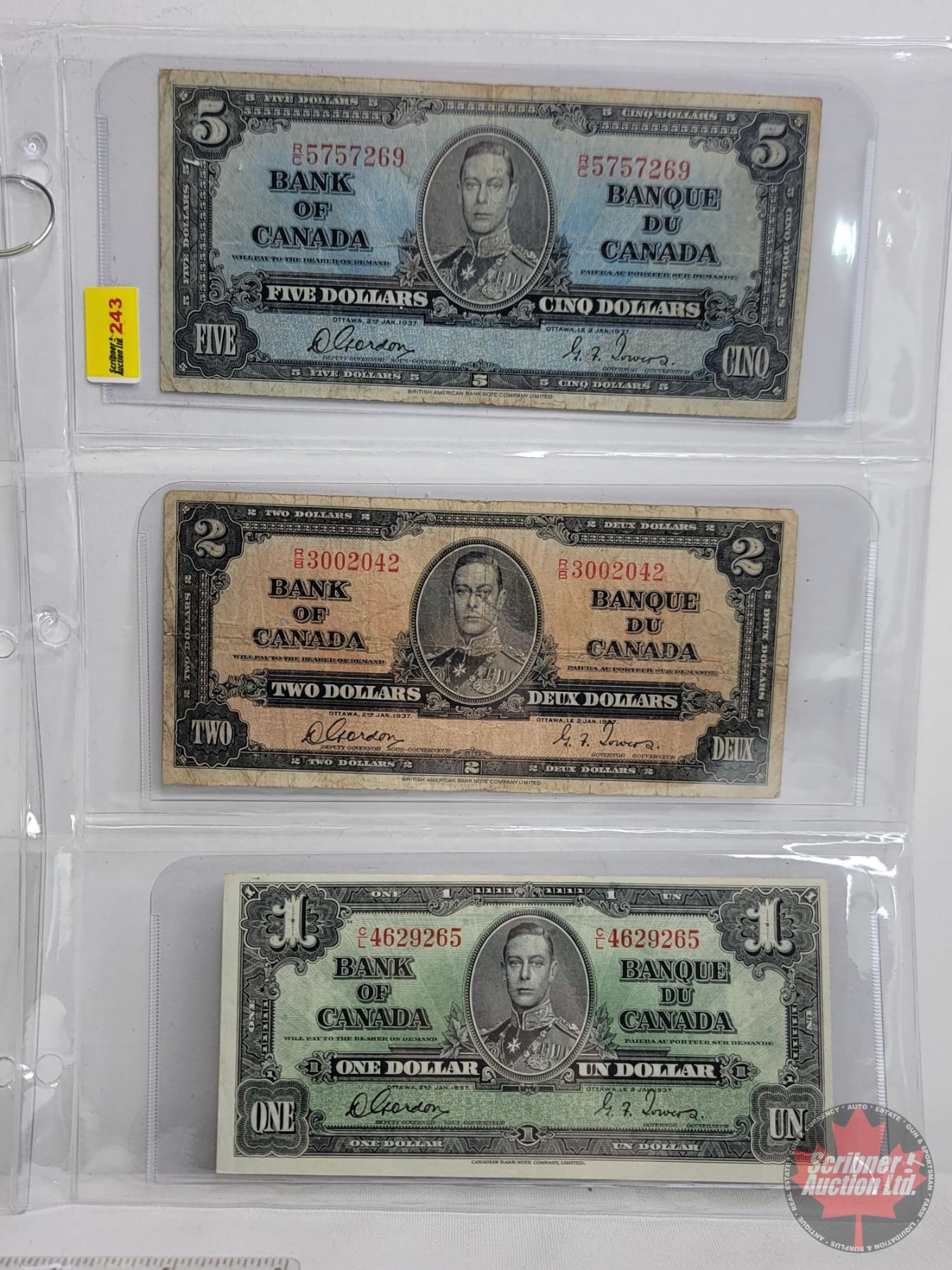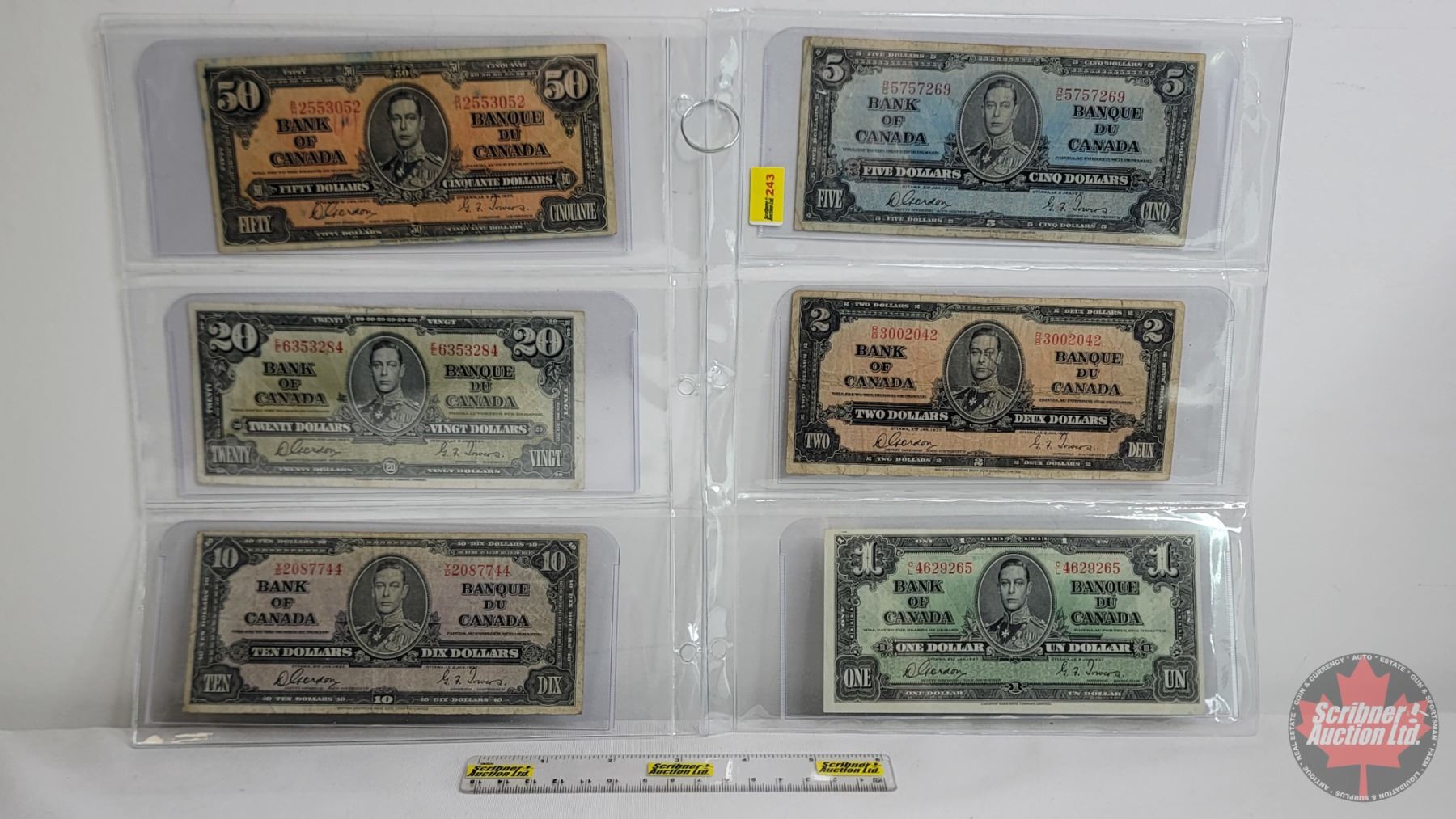 Bank of Canada 1937 Bills (6):