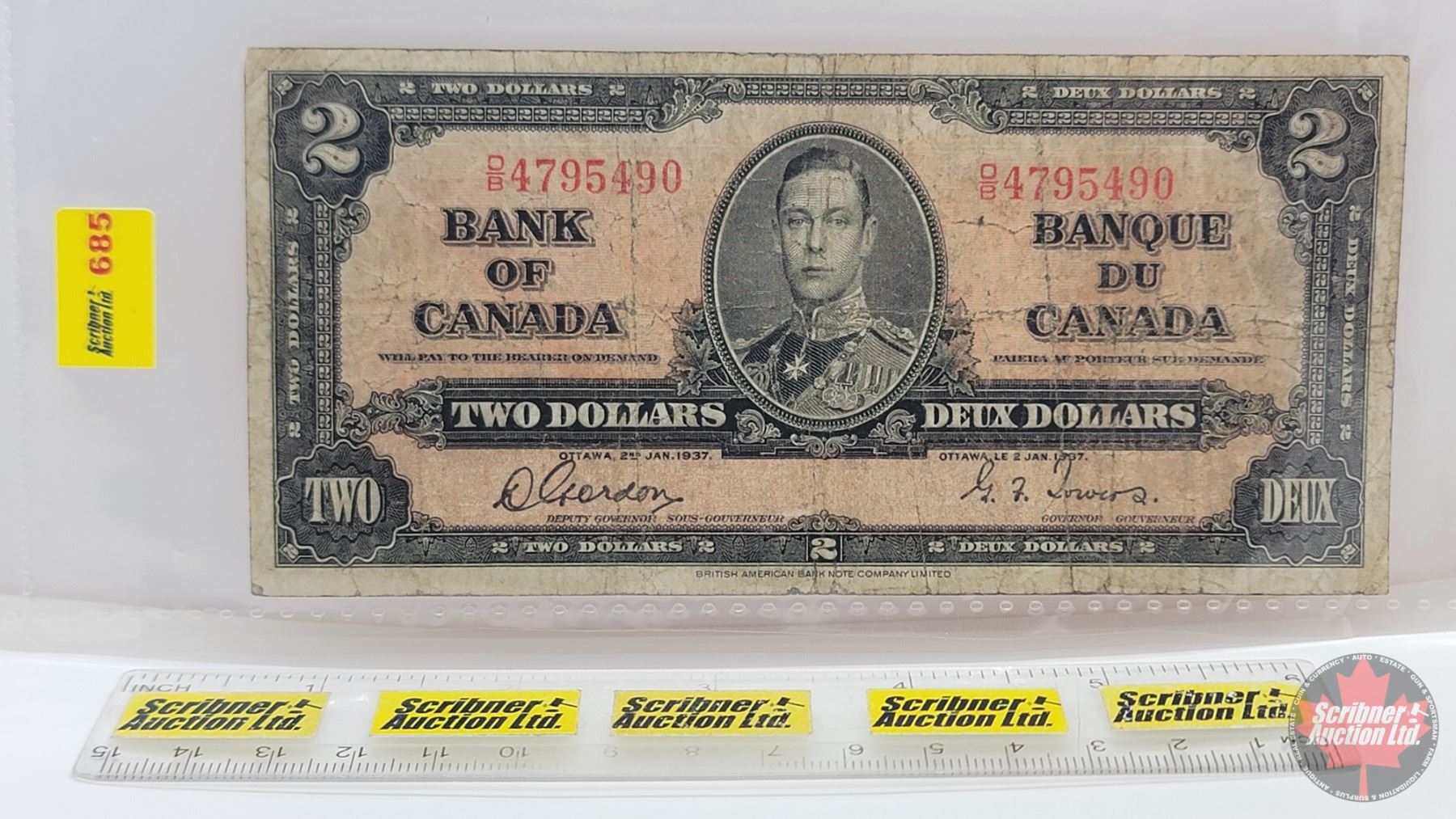 Bank of Canada $2 Bill 1937 : Gordon/Towers #OB4795490 (See Pics for Varieties, Conditions, Serial N