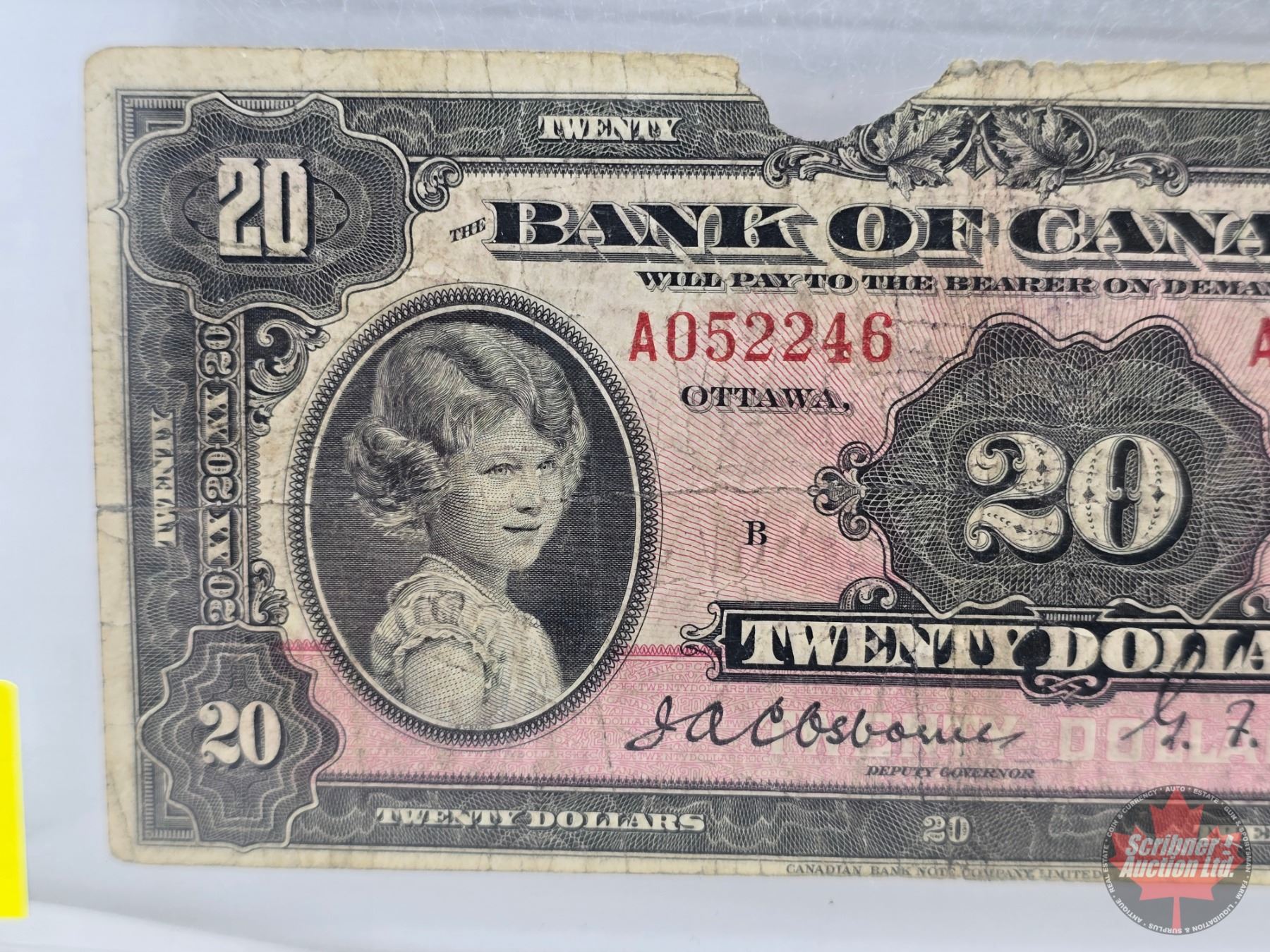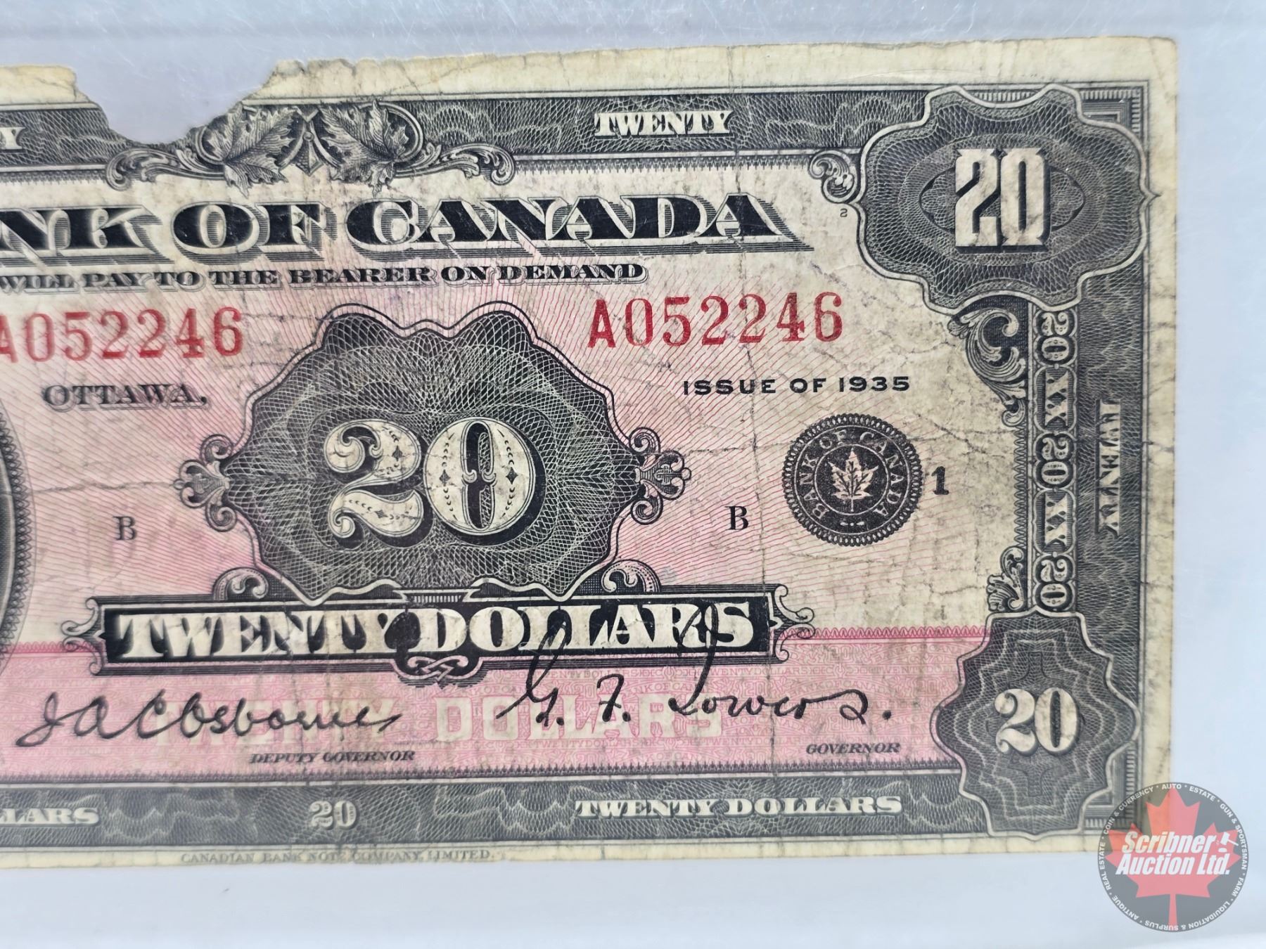 Bank of Canada $20 Bill 1935 "English" : Small Seal : Osborne/Towers #A052246