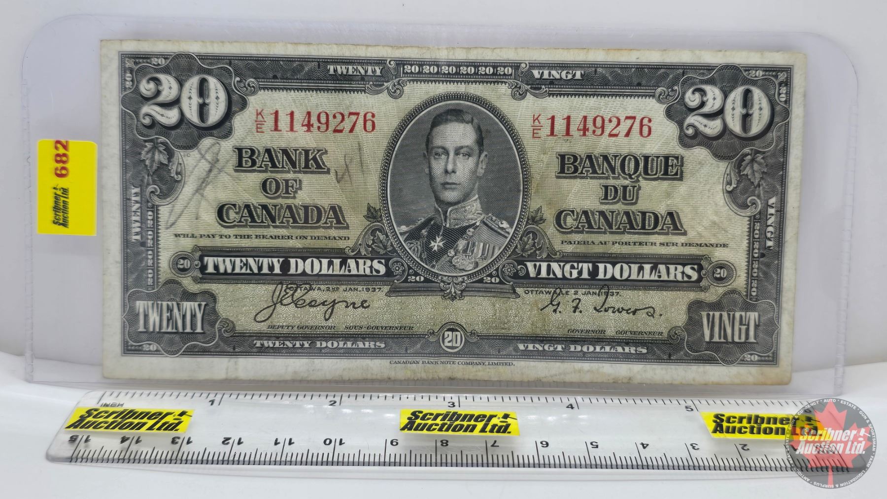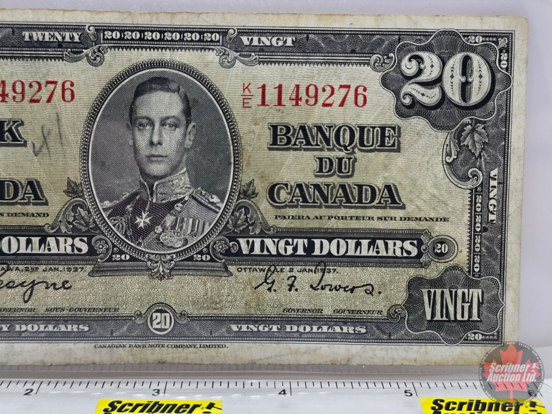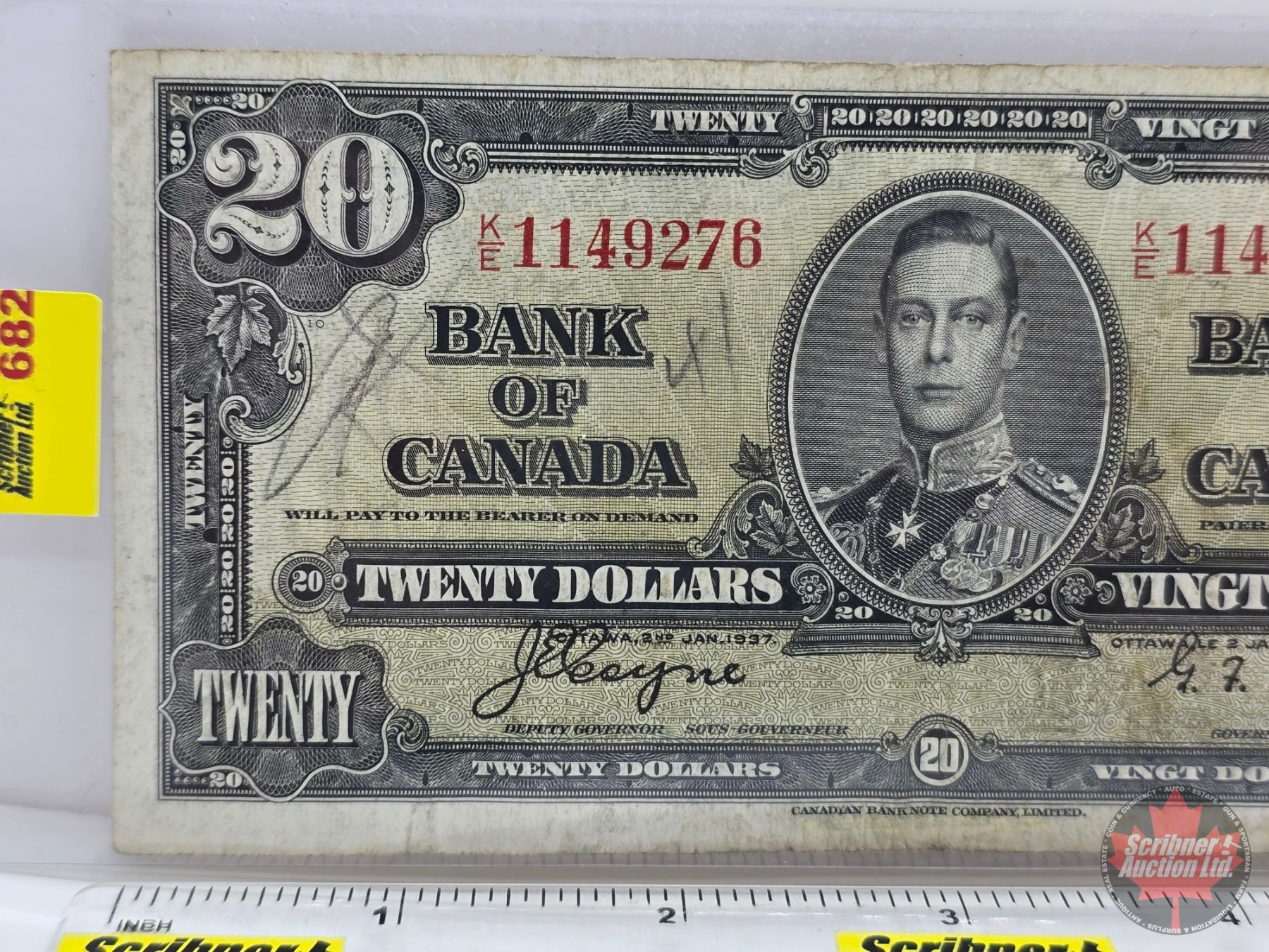 Bank of Canada $20 Bill 1937 : Coyne/Towers #KE1149276 (See Pics for Varieties, Conditions, Serial N