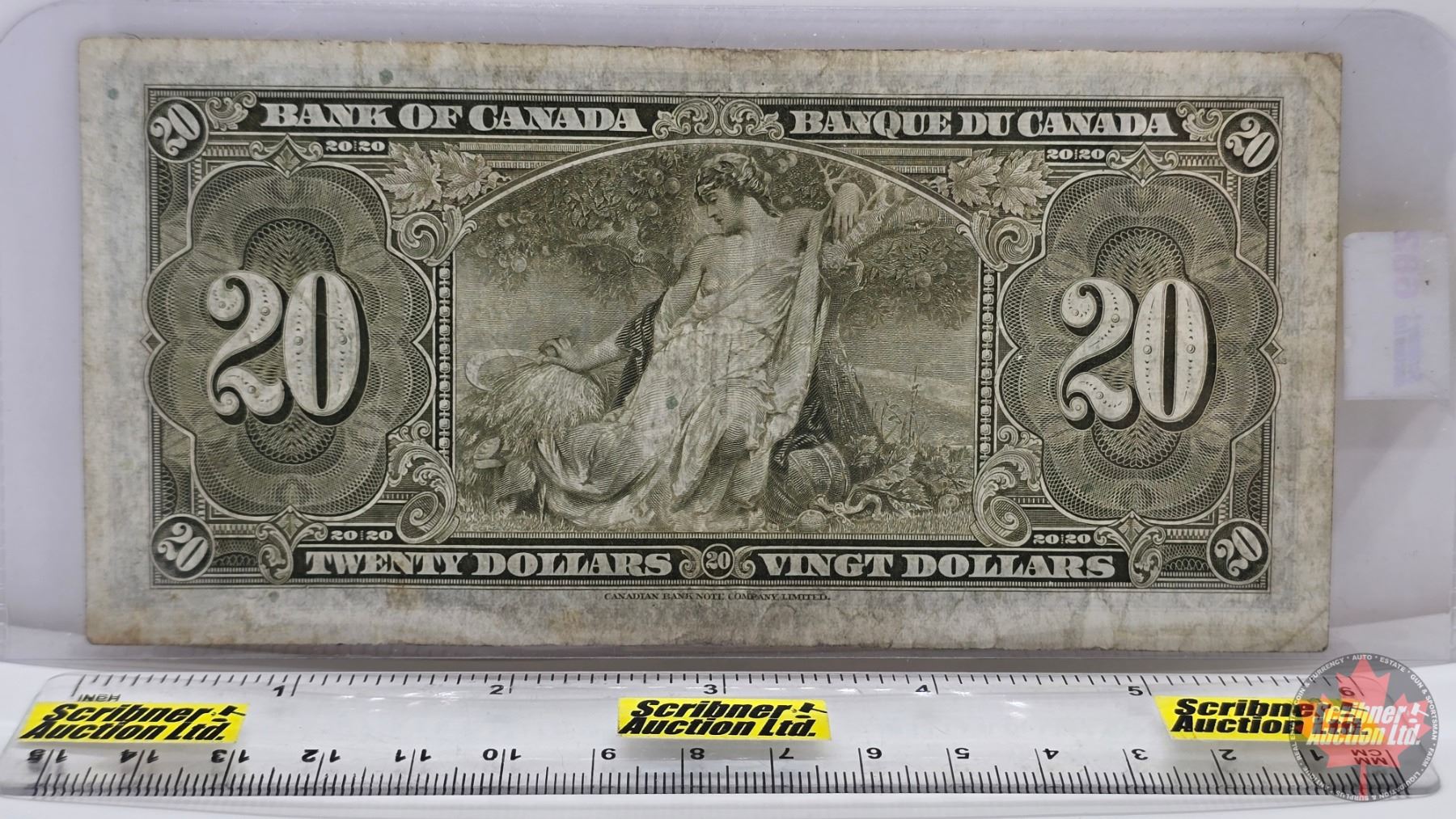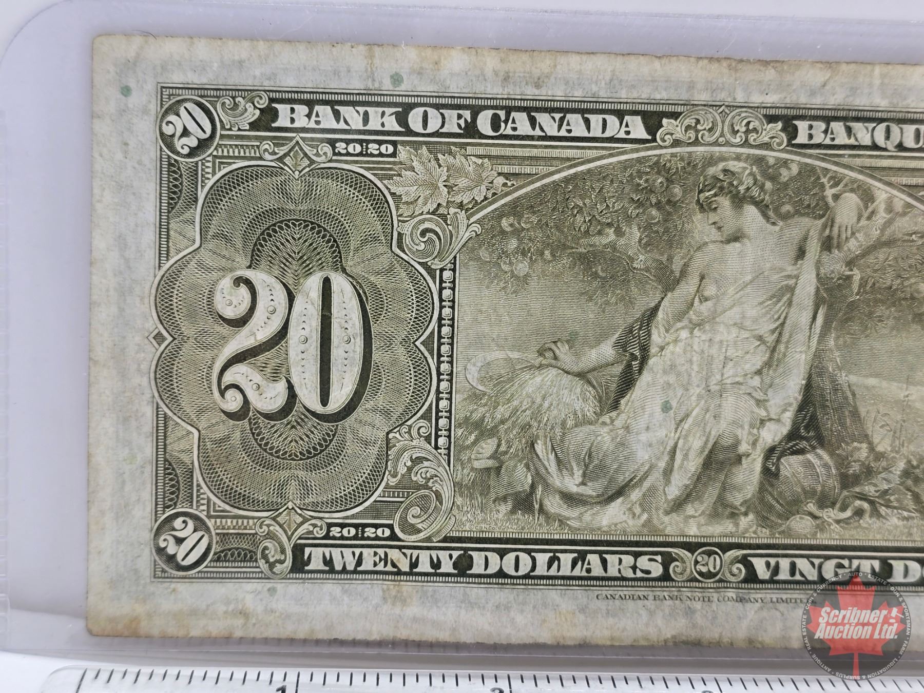 Bank of Canada $20 Bill 1937 : Coyne/Towers #KE1149276 (See Pics for Varieties, Conditions, Serial Numbers, Printing Dates & Signatures) (Listing & Descriptions are a GUIDE ONLY and are subject to changes, errors, additions or deletions. Please use the provided pictures to satisfy yourself to the Condition and/or Grades. Please Read & Understand All Terms & Conditions for this Auction Sale.)