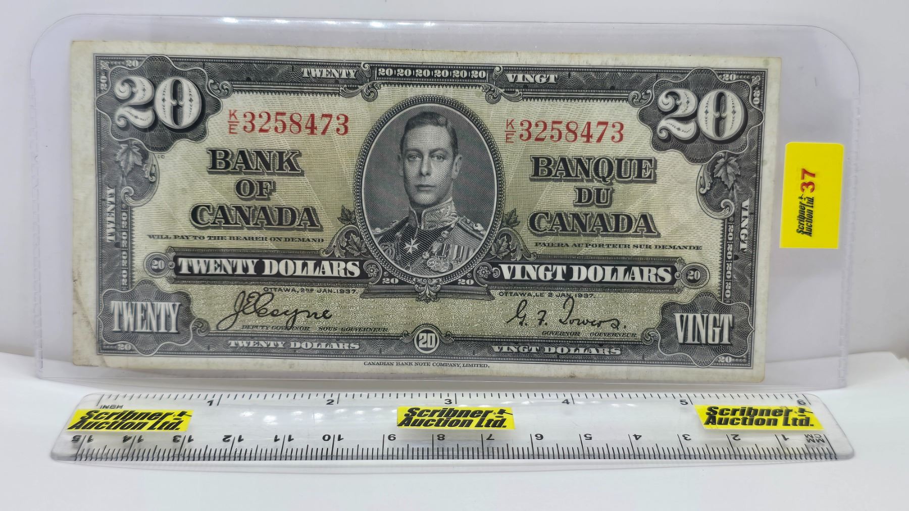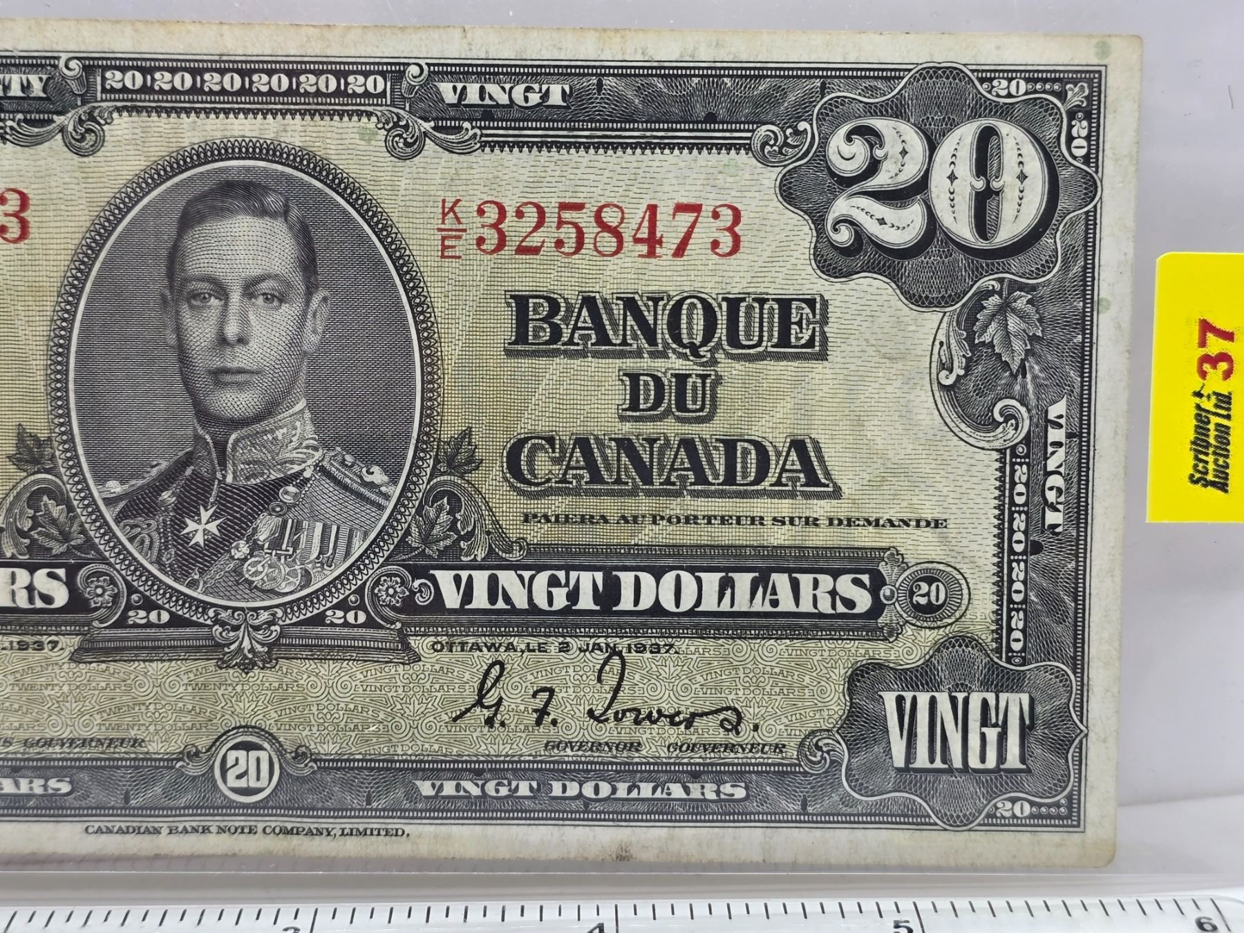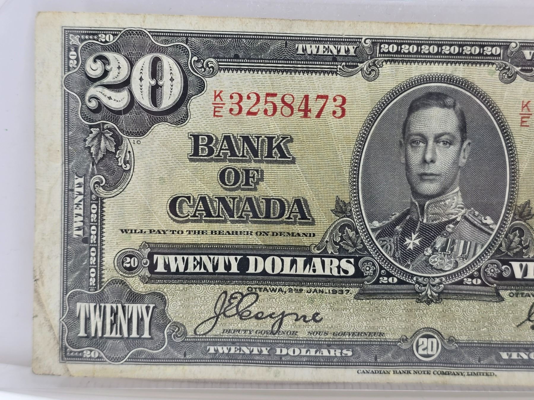 Bank of Canada $20 Bill 1937 : Coyne/Towers #KE3258473 (See Pics for Varieties, Conditions, Serial N