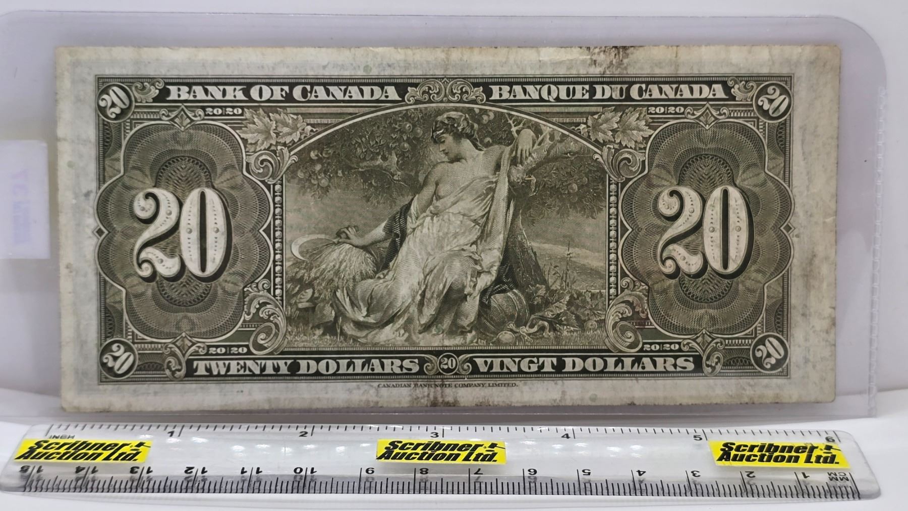 Bank of Canada $20 Bill 1937 : Coyne/Towers #KE3258473 (See Pics for Varieties, Conditions, Serial Numbers, Printing Dates & Signatures) (Listing & Descriptions are a GUIDE ONLY and are subject to changes, errors, additions or deletions. Please use the provided pictures to satisfy yourself to the Condition and/or Grades. Please Read & Understand All Terms & Conditions for this Auction Sale.)