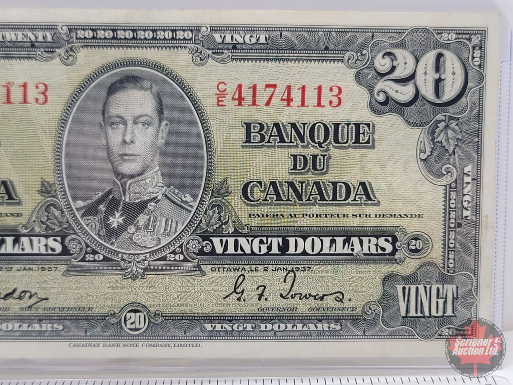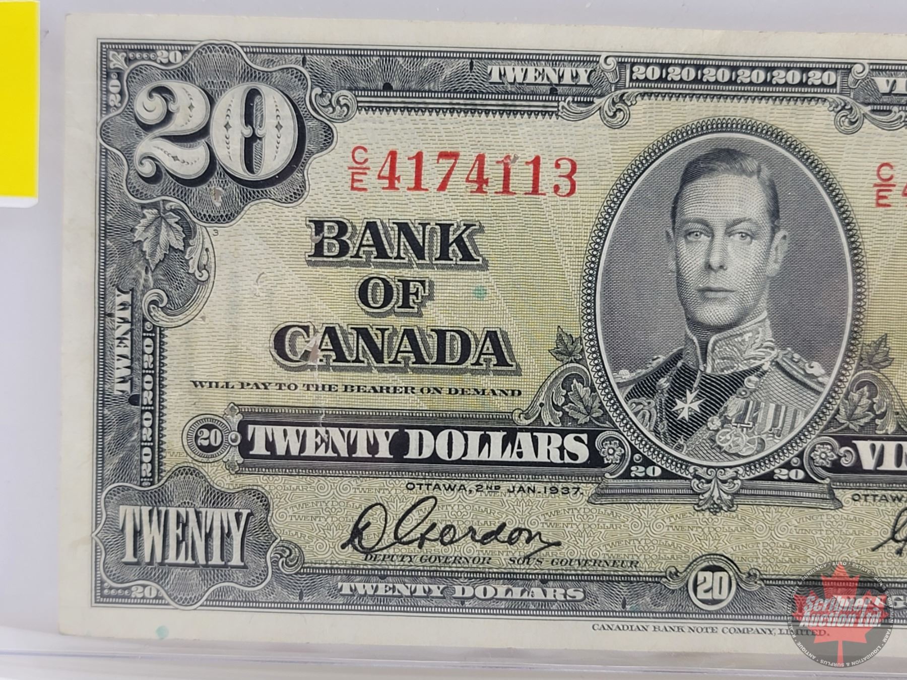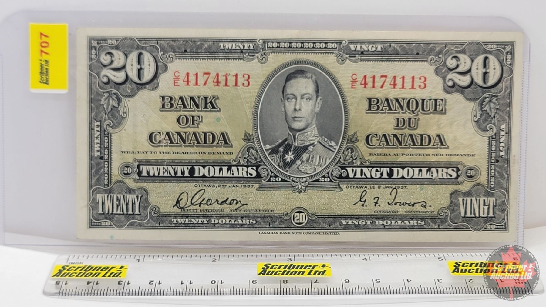 Bank of Canada $20 Bill 1937 : Gordon/Towers #CE4174113 (See Pics for Varieties, Conditions, Serial