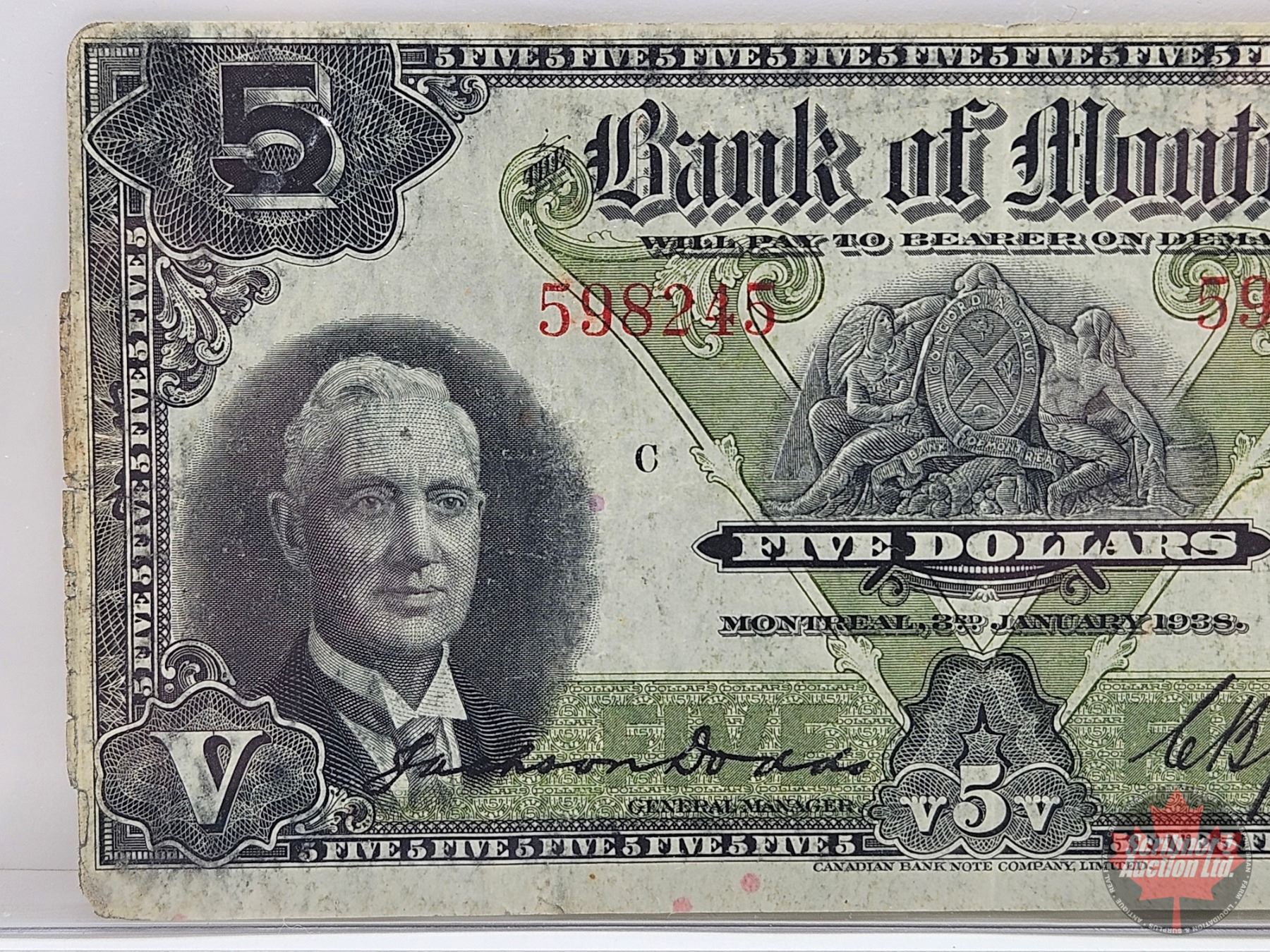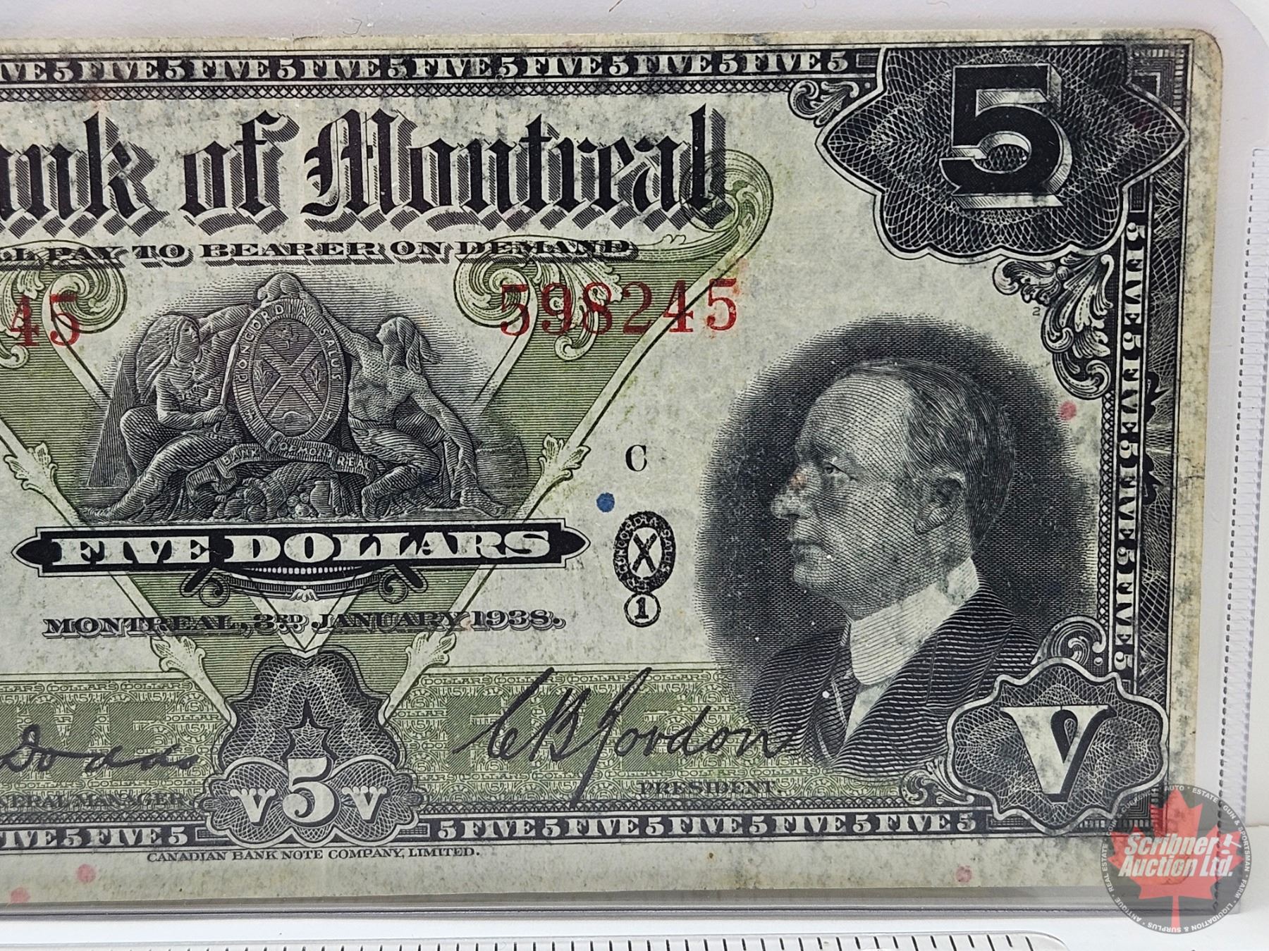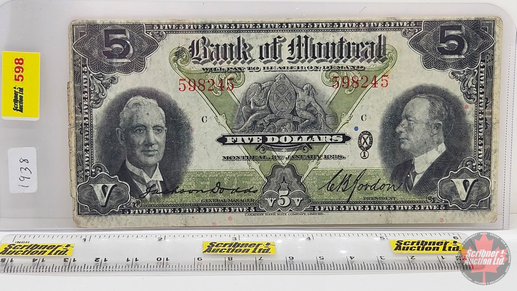 Bank of Montreal $5 Bill 1938 : Dodds-Gordon #598245