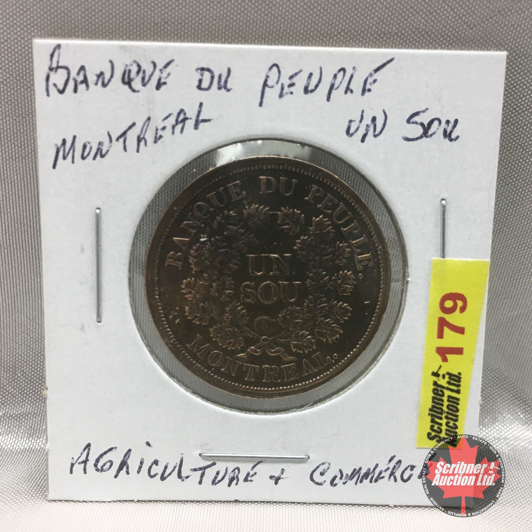 Banque Du Peuple Montreal Un Sou - Agriculture & Commerce Bas Canada