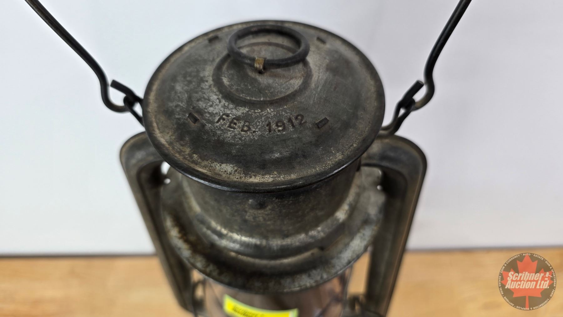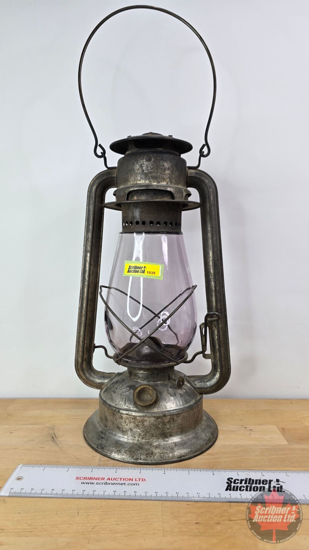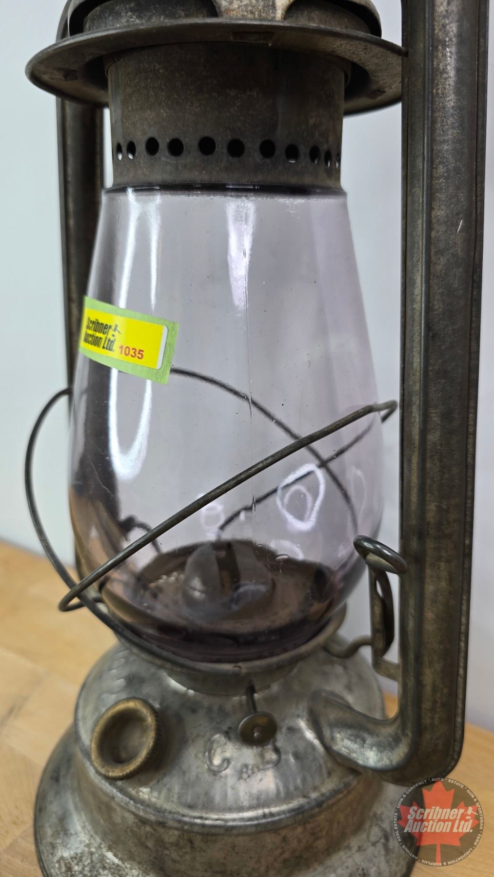 Barn Lantern "No. 2" : C.B. Marswells : Purple Tinge Globe : Feb 1912 (Measures: 15"H) (SEE PICS!)
