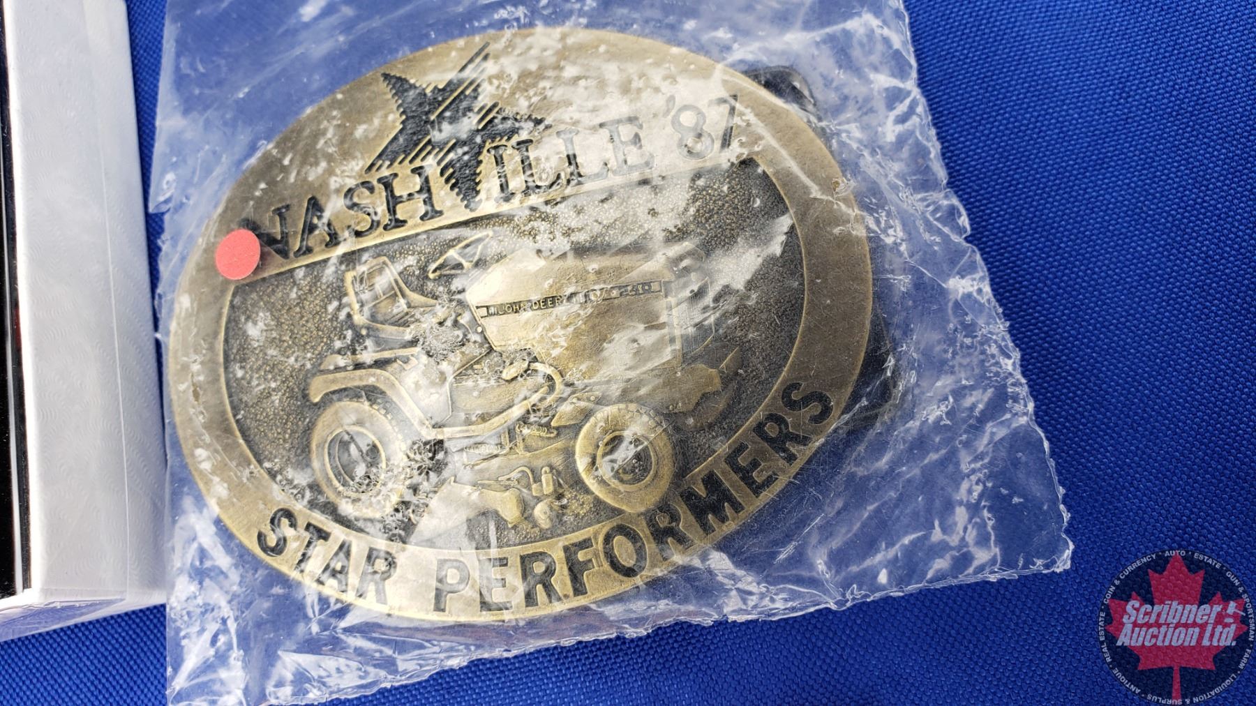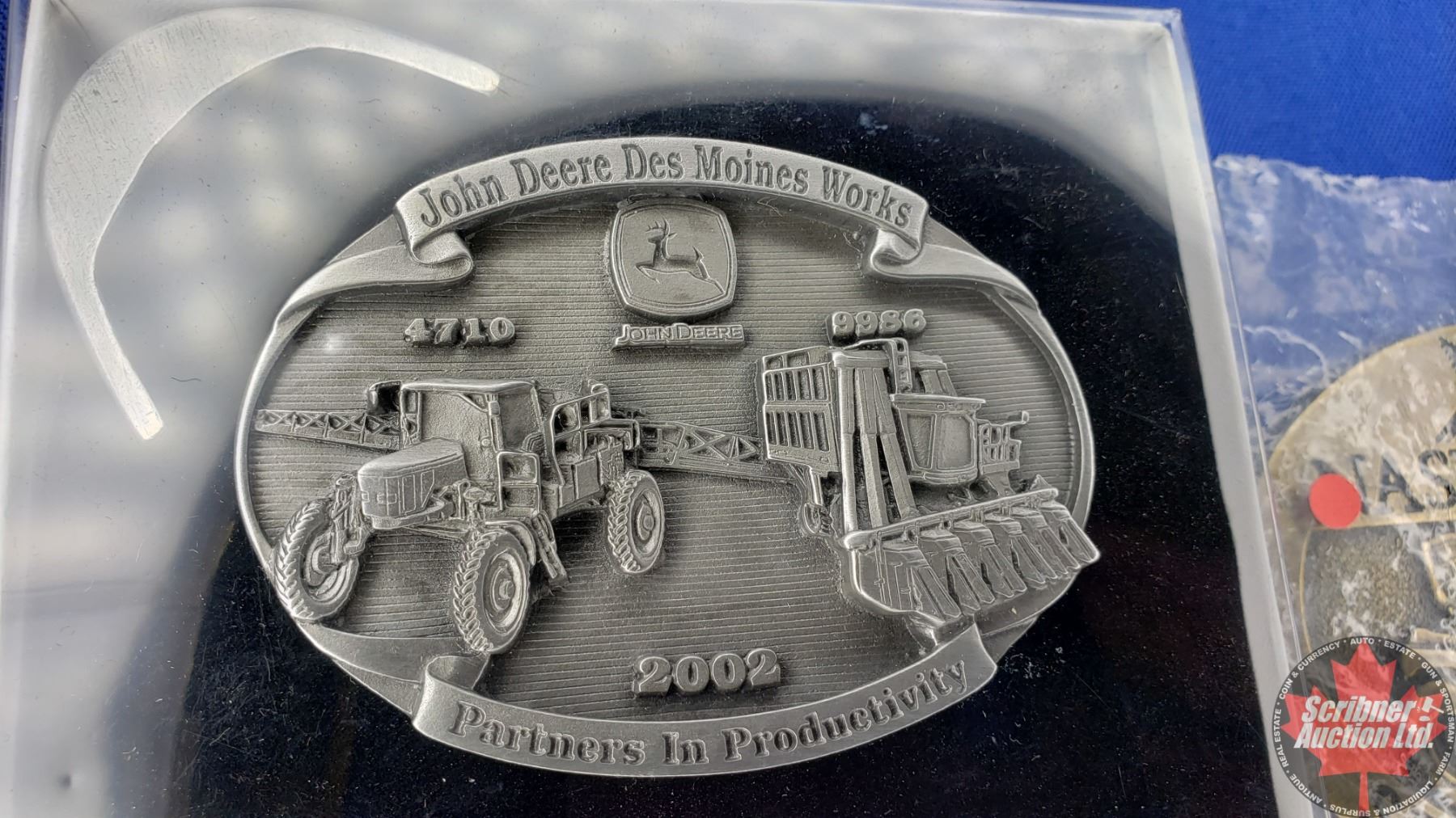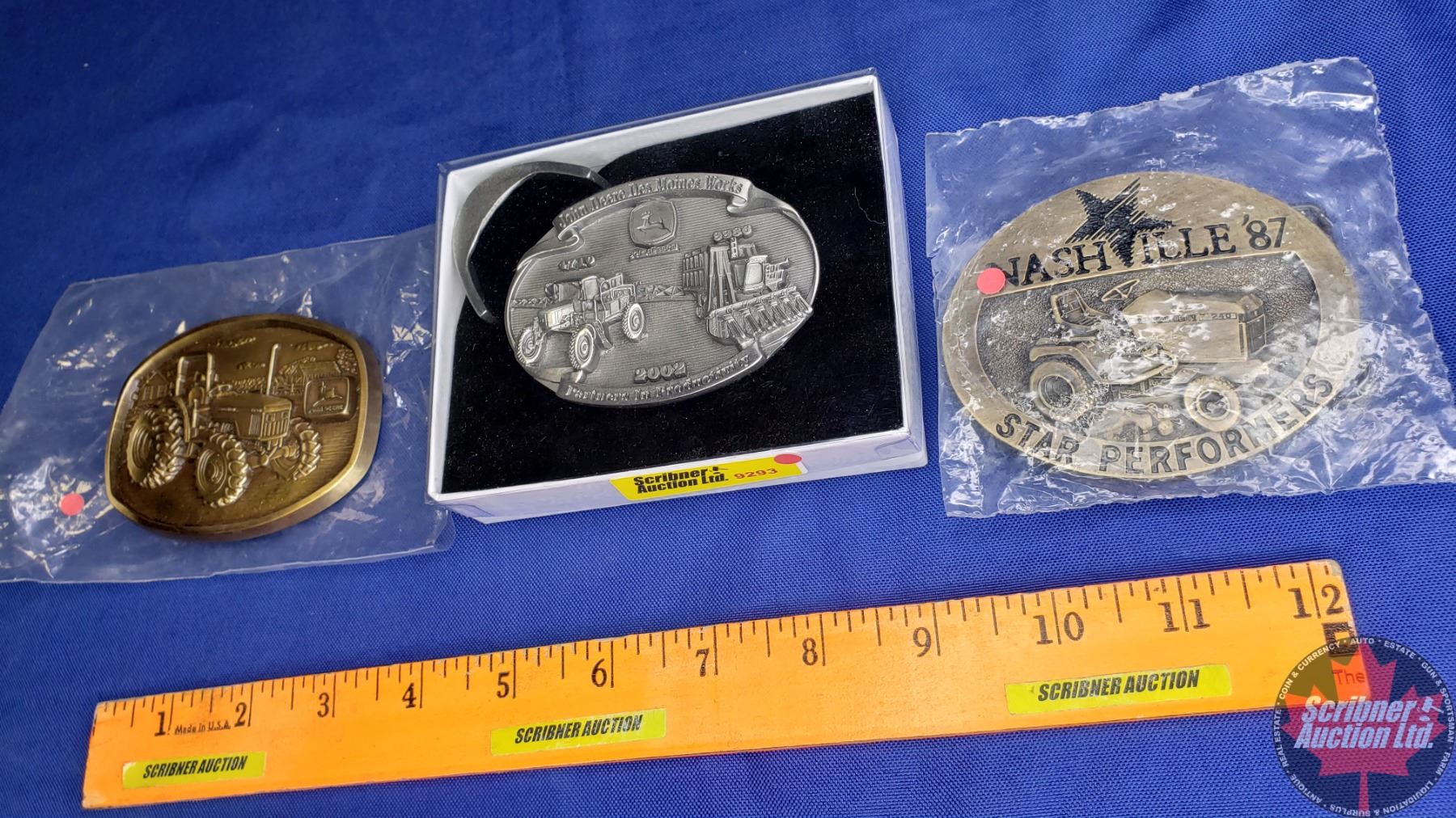 Belt Buckles (3): "John Deere Des Moines Works 2002" & "Nashville '87 Star Performers" & "John Deere"