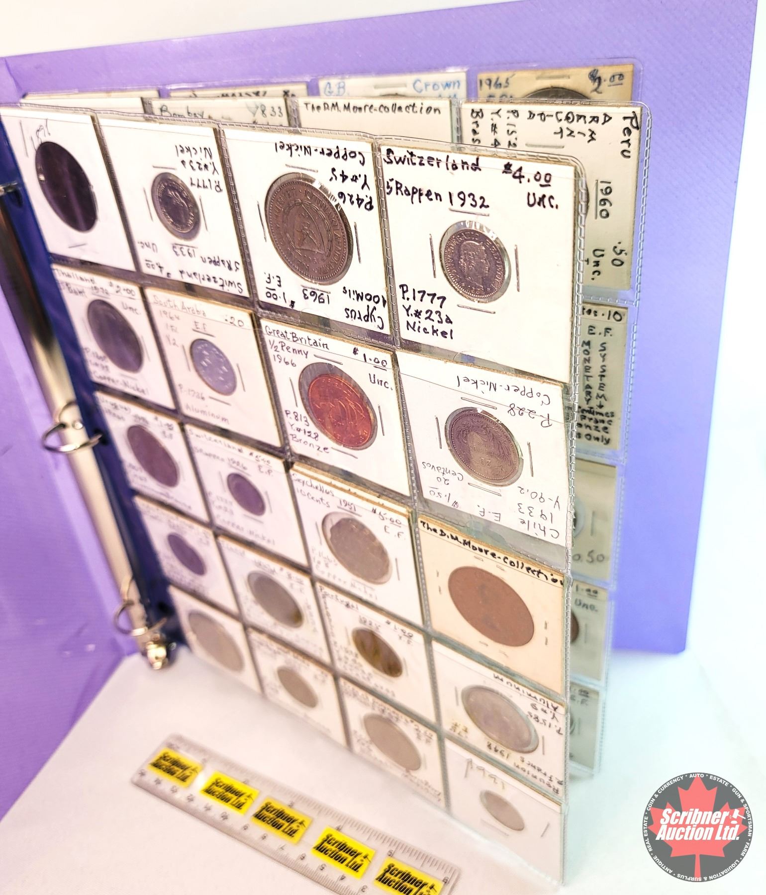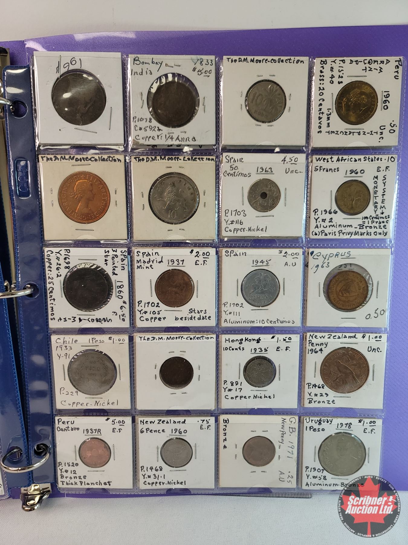Binder Lot - Foreign Coin Collection (60 Coins) : 1800's & 1900's Incl. Great Britain; New Zealand; Canada; Spain; South Arabia; French Polynesia; Switzerland; West Africa States; Peru; etc!!! (MUST SEE PICS FOR YEARS / COUNTRIES)
