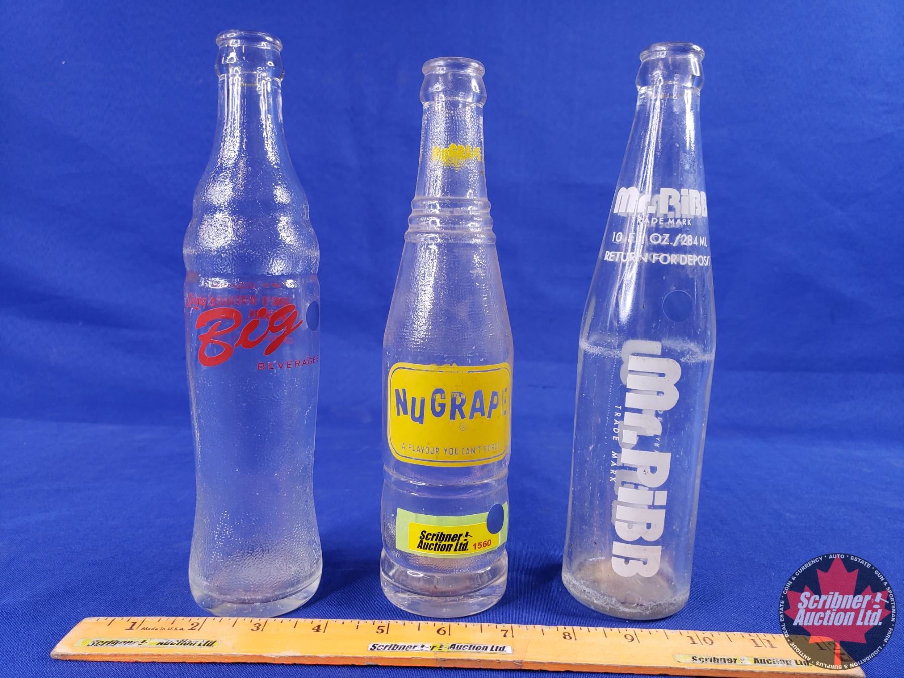 Bottle Trio : Big ; NuGrape ; Mr. Pibb (Tallest Bottle Measures: 10"H) (SEE PICS!)
