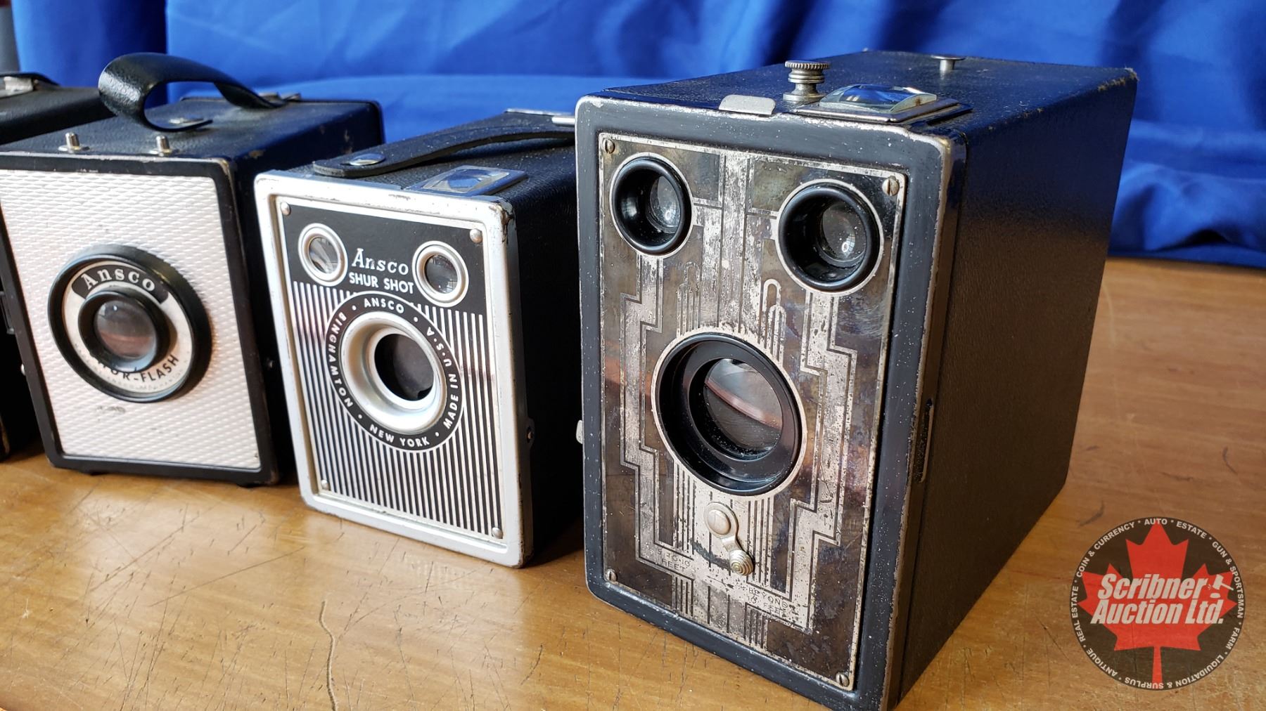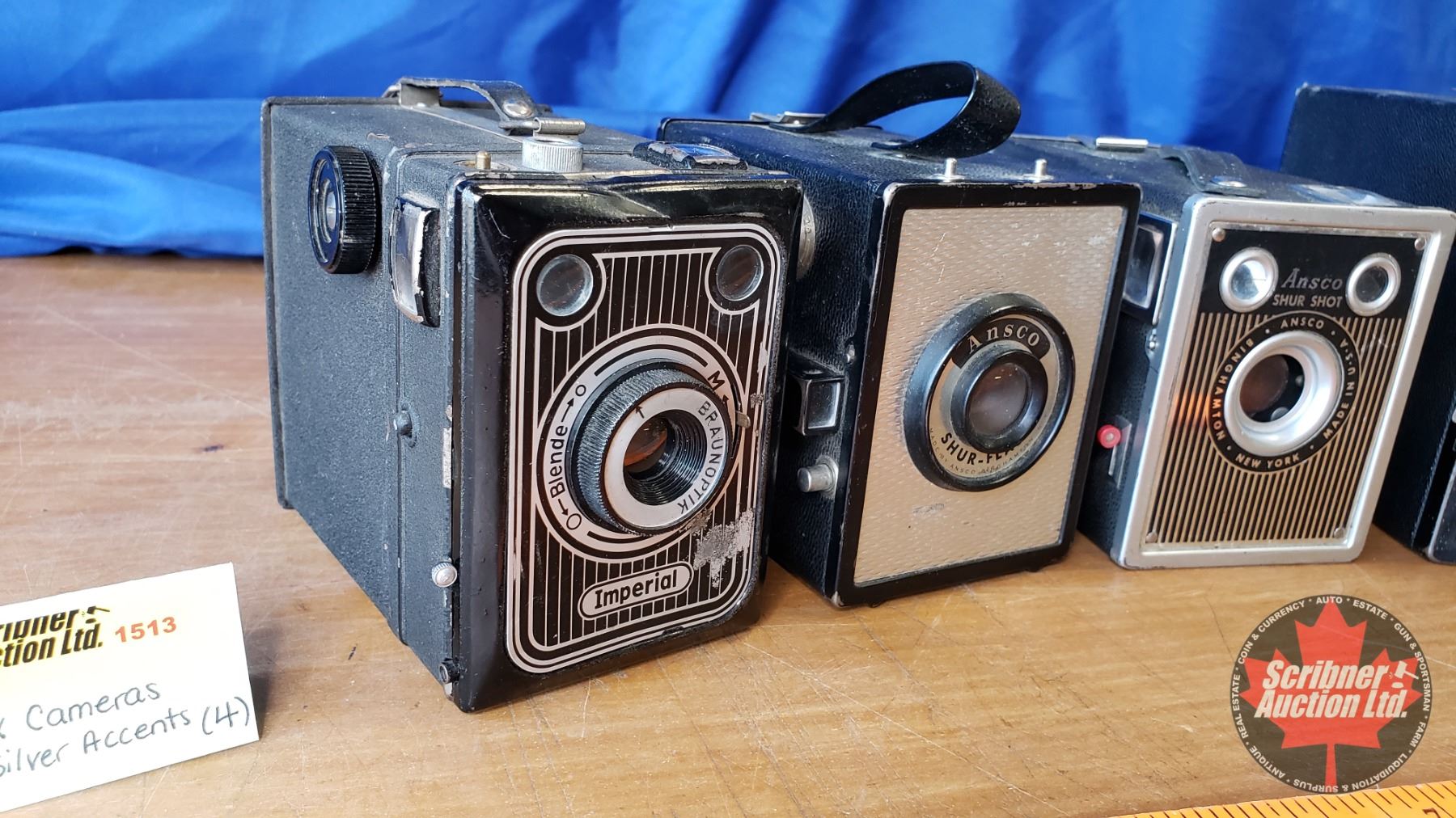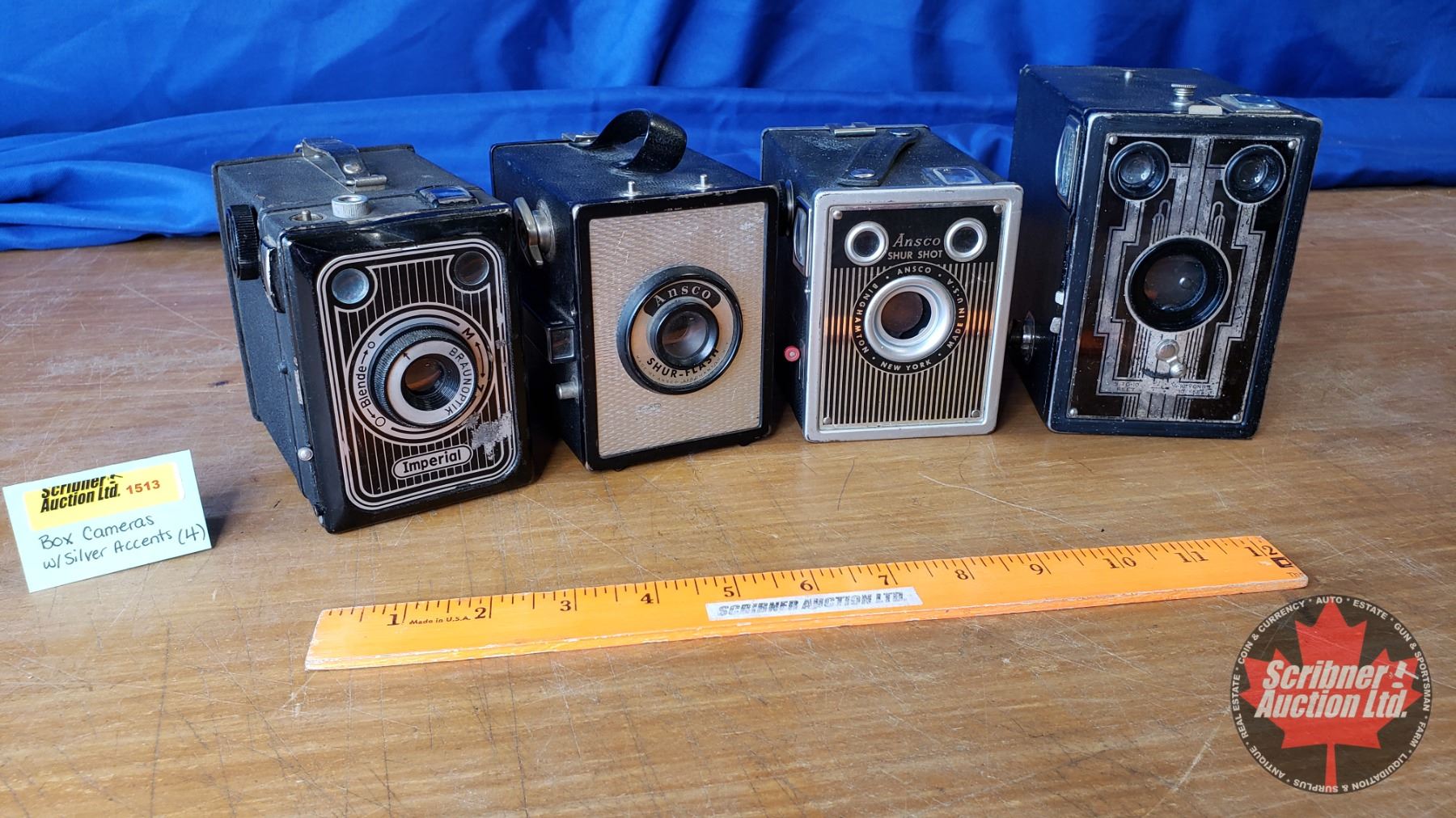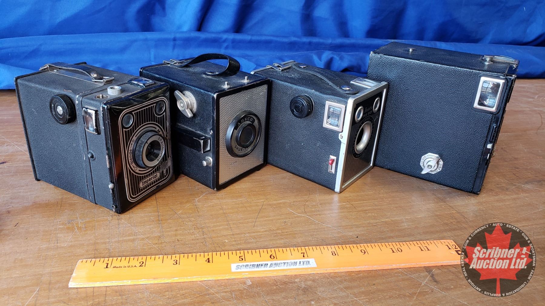 Box Cameras w/Silver Accents (4): Imperial, Kodak, Ansco, Ansco (See Pics)