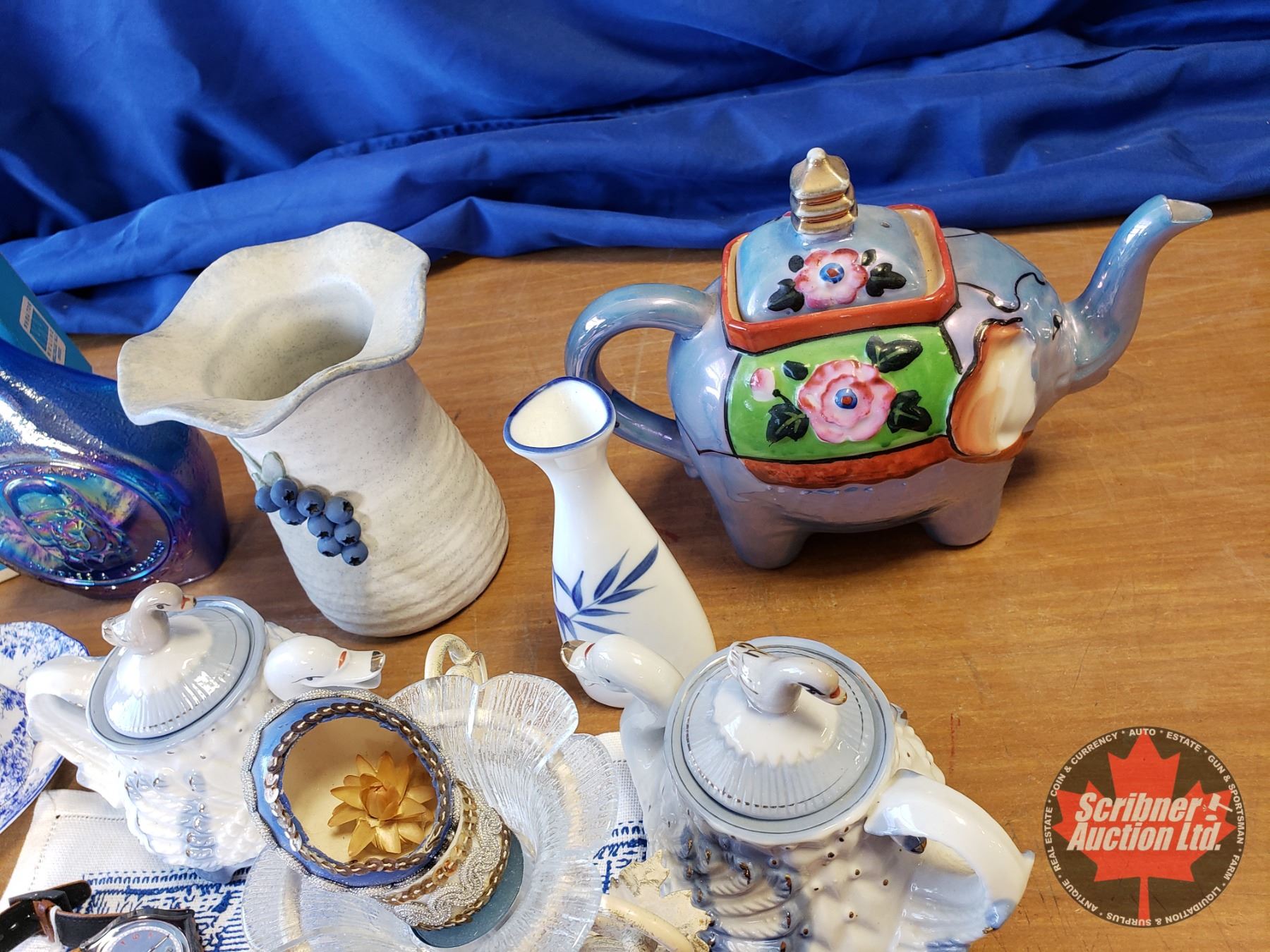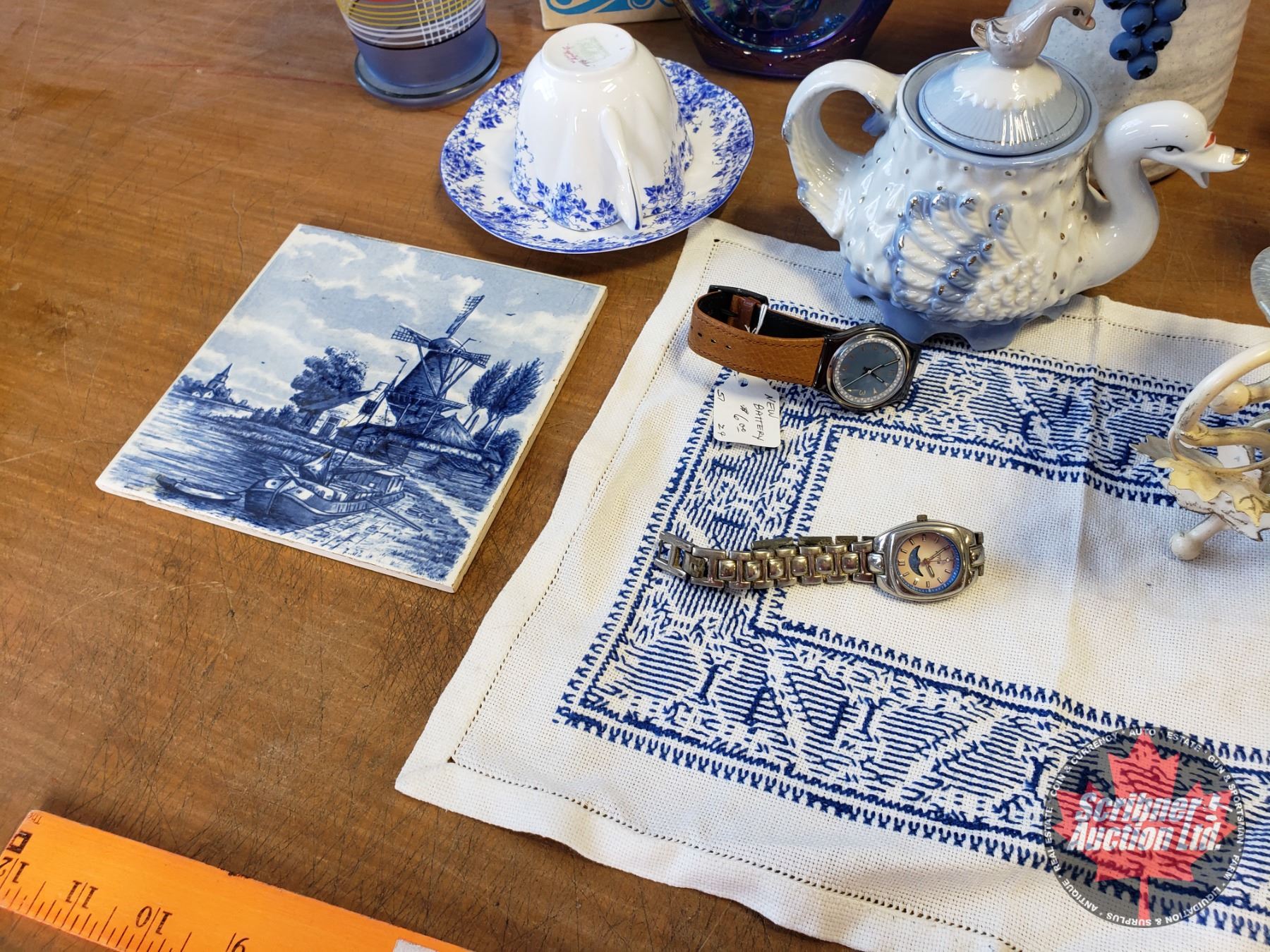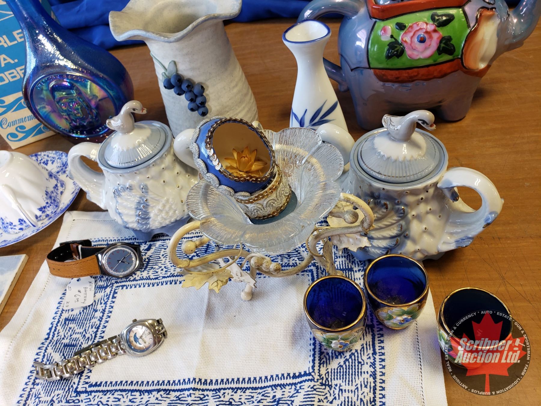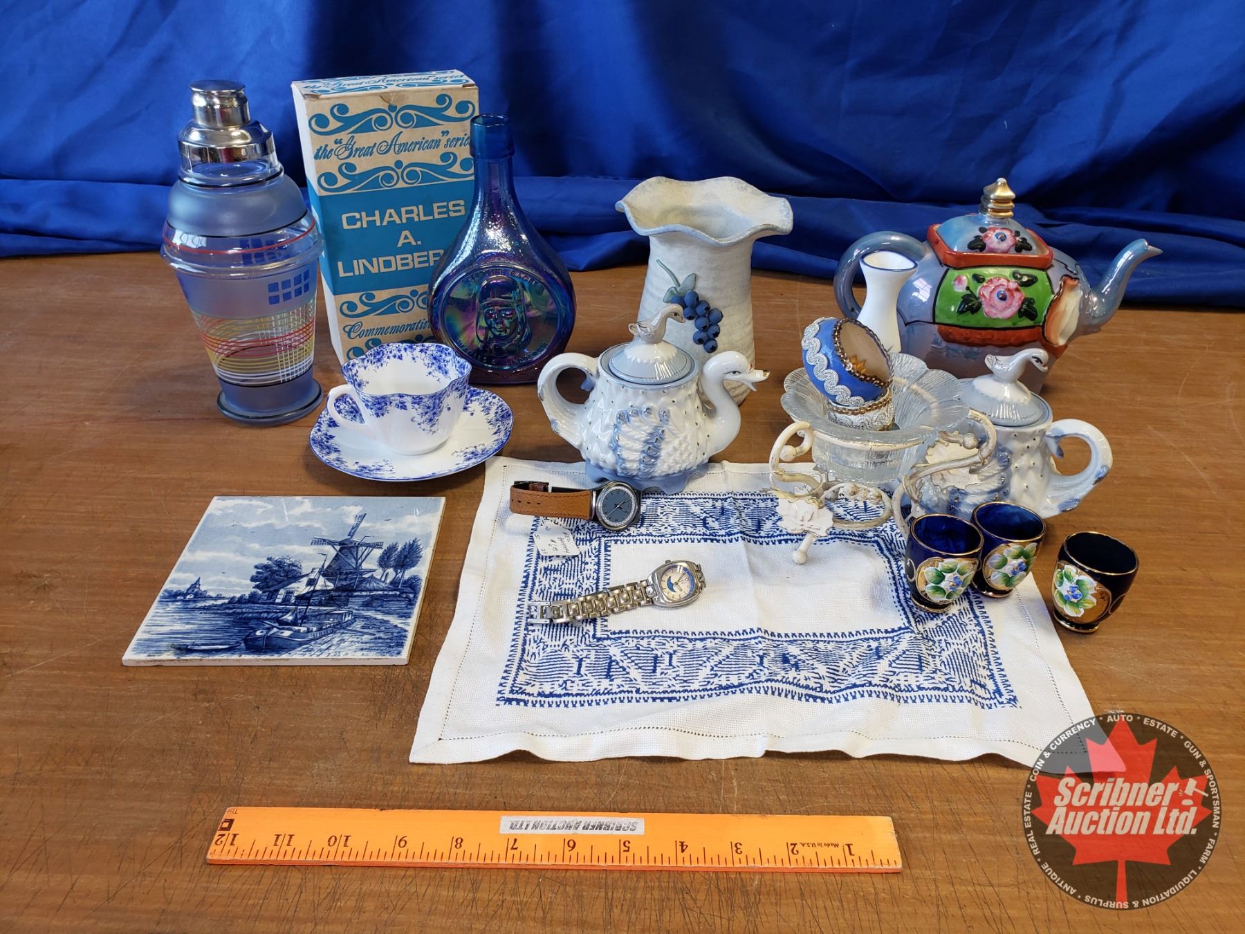 Box Lot - Blue Theme (Tea Pots, Vase, Tea Cup/Saucer, Cocktail Shaker, Watches, etc) (See Pics)