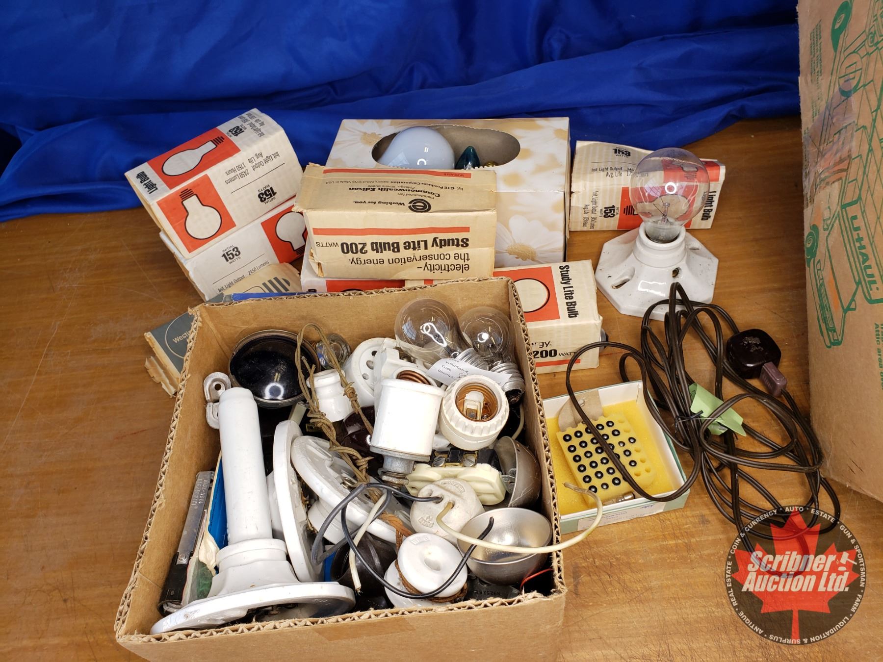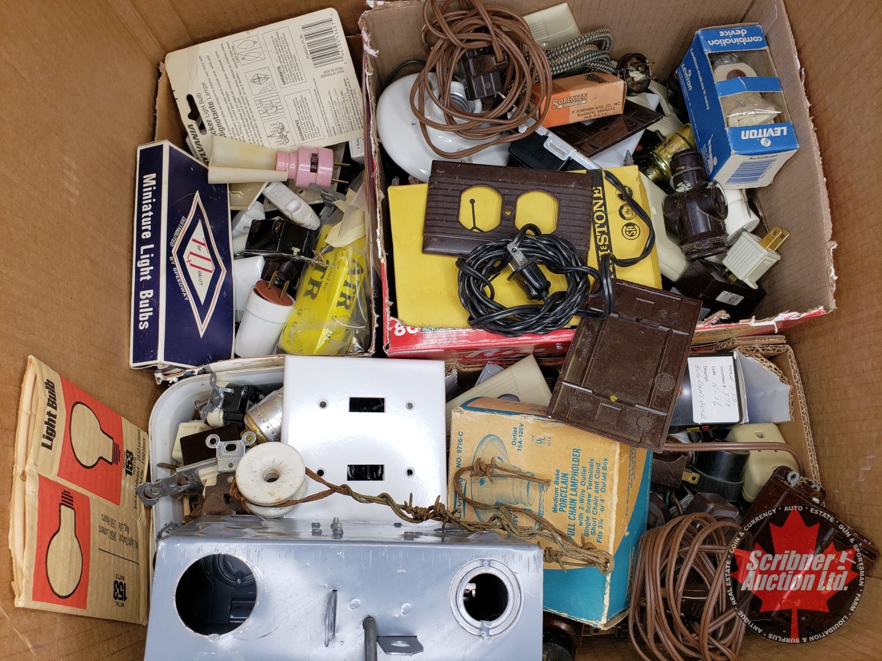 Box Lot - Electrical : Light Switches, Bulbs, Fuse Box, Soldering Irons, etc (See Pics!)