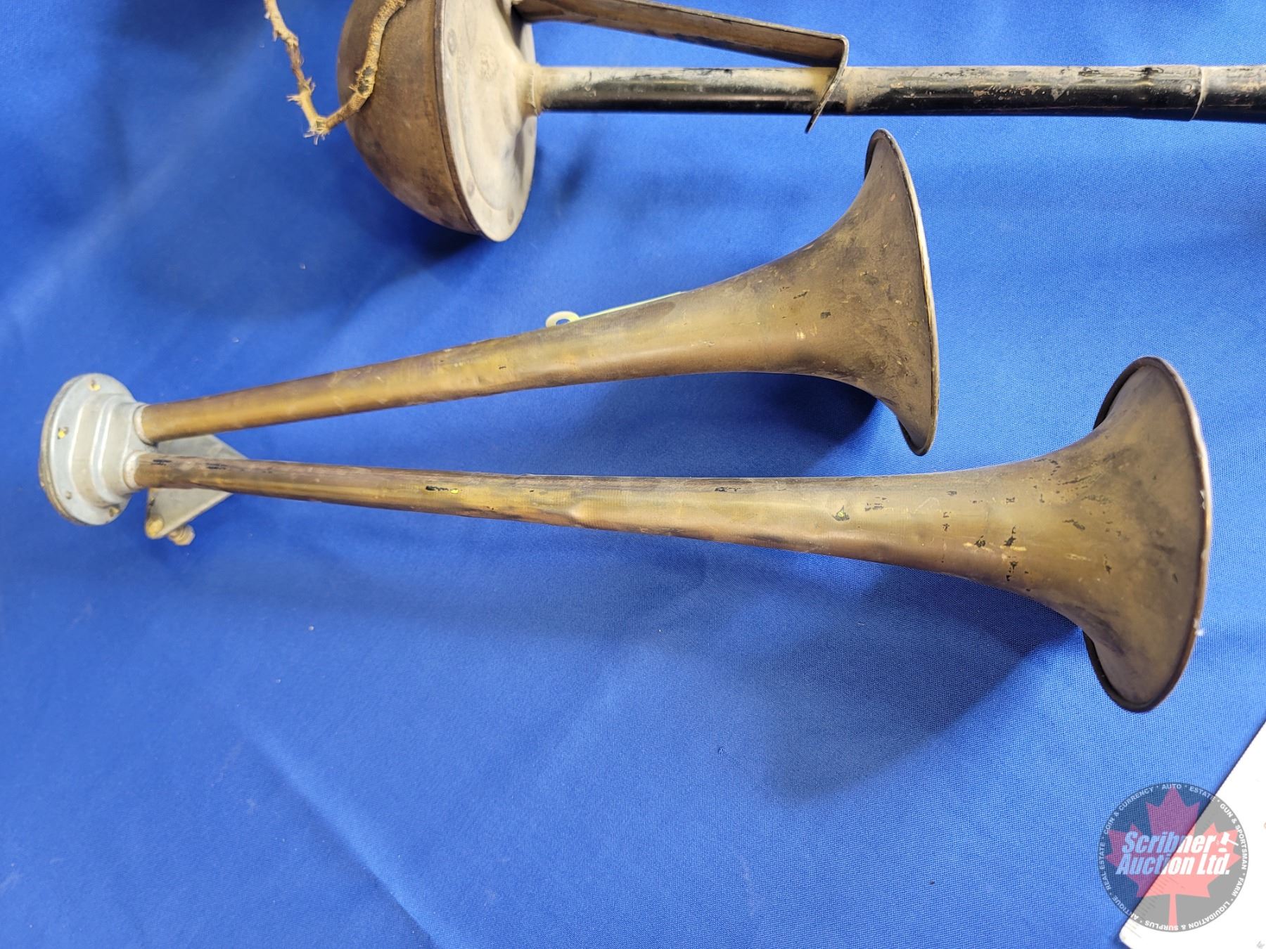 Brass Air Horn & Tin Truck Horns (2) : Trumpet Style