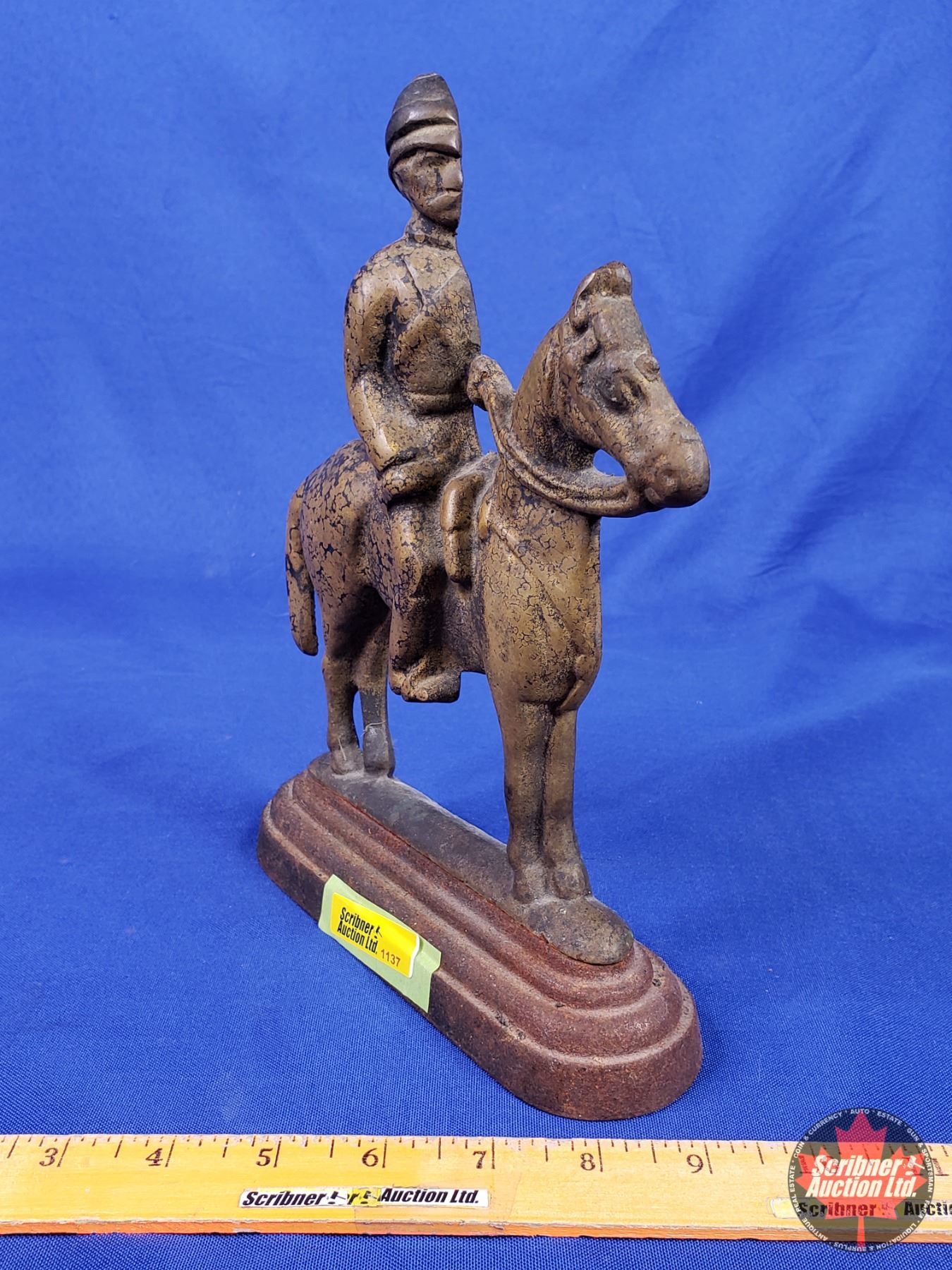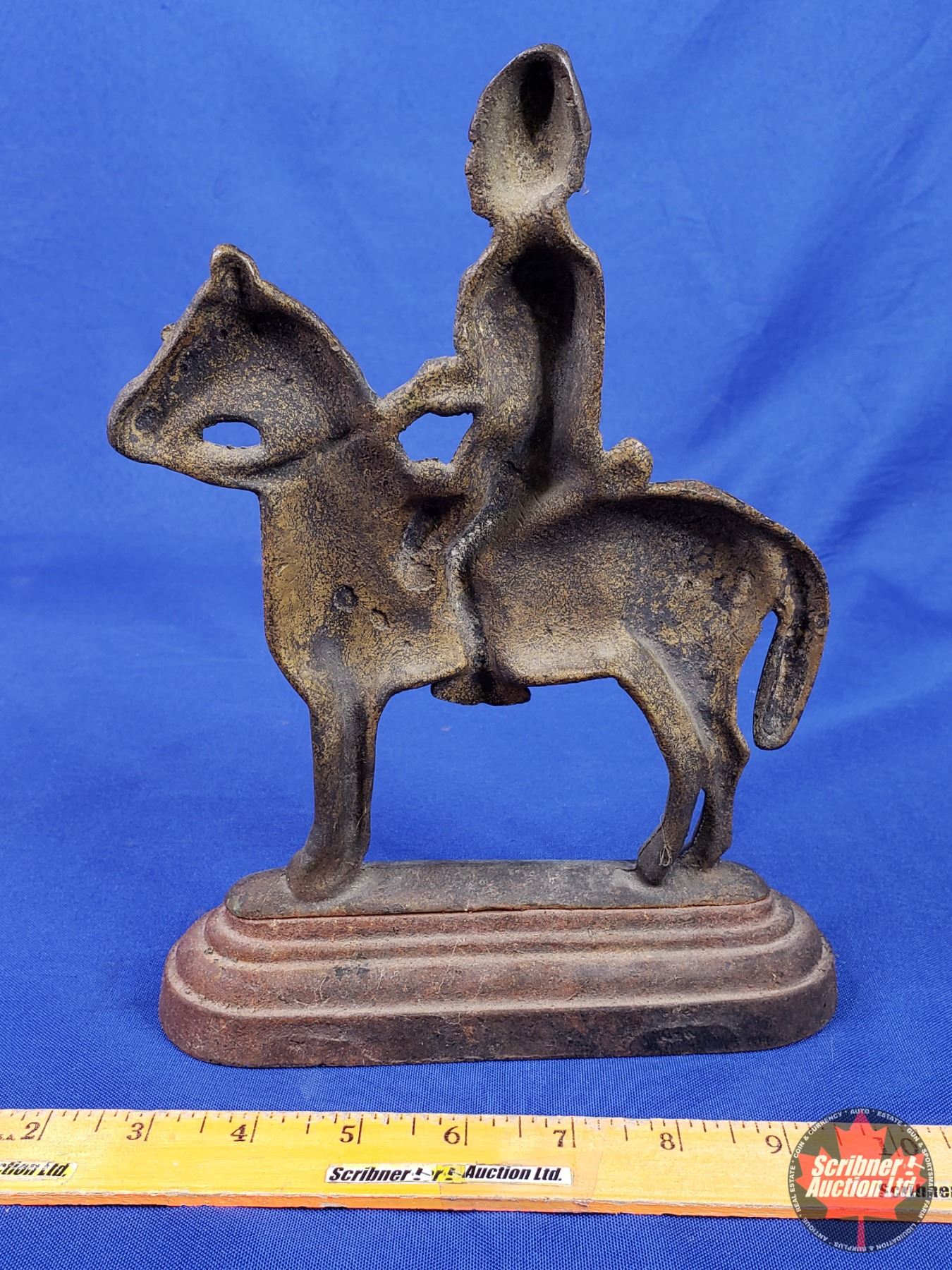 Brass & Cast Iron Calvary Soldier on Horse Door Stop (10") (SEE PICS!)