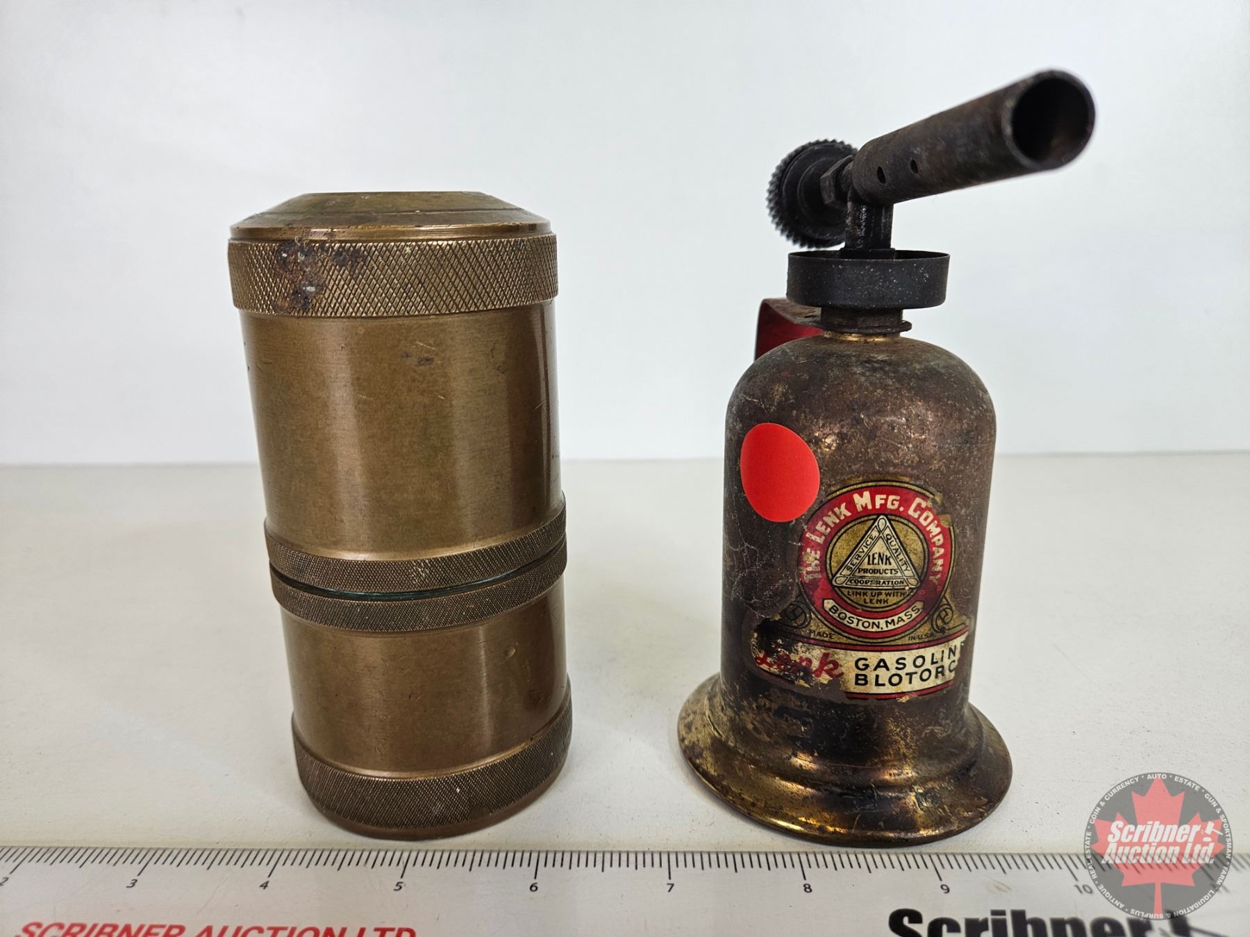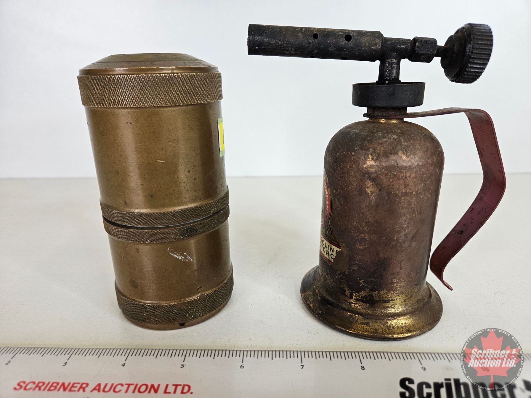 Brass Coin Bank w/ Small Brass Blow Torch