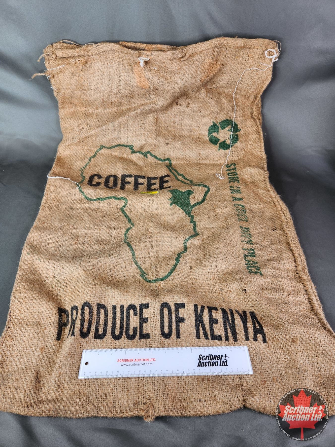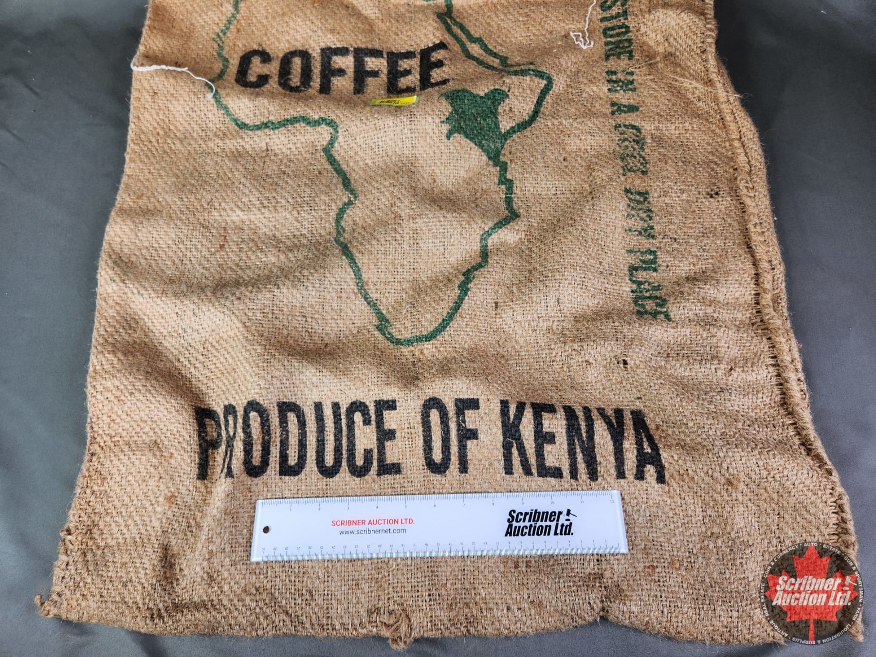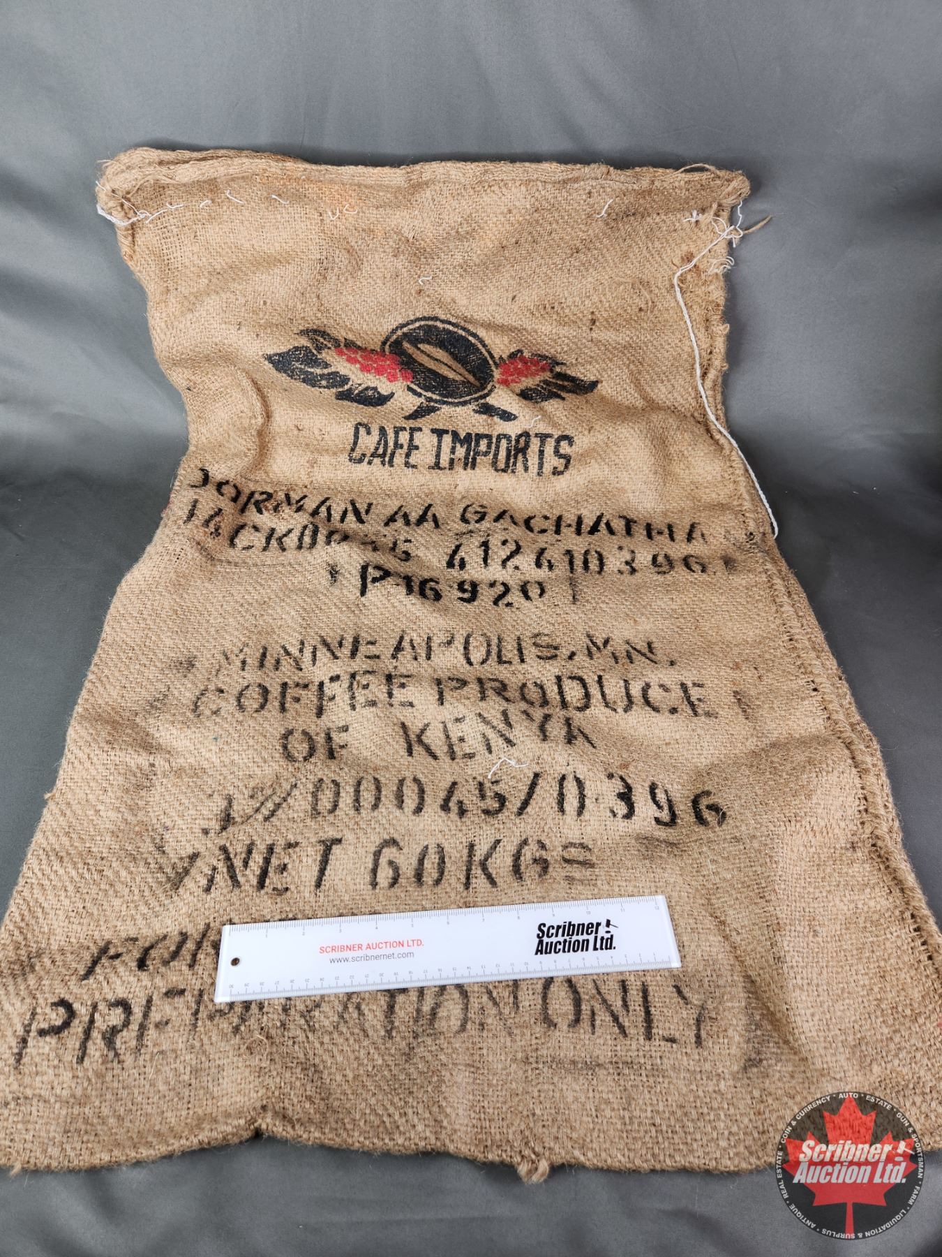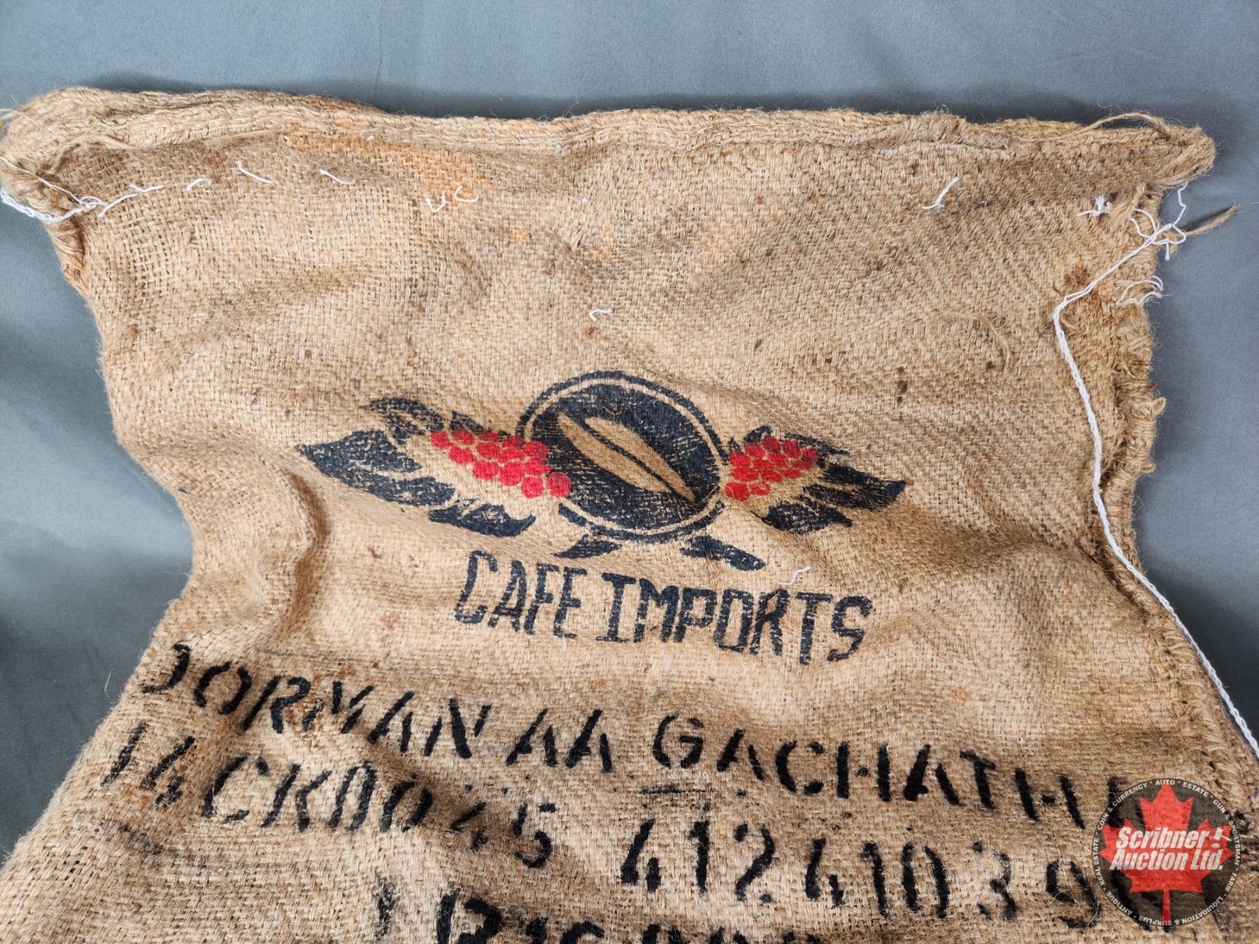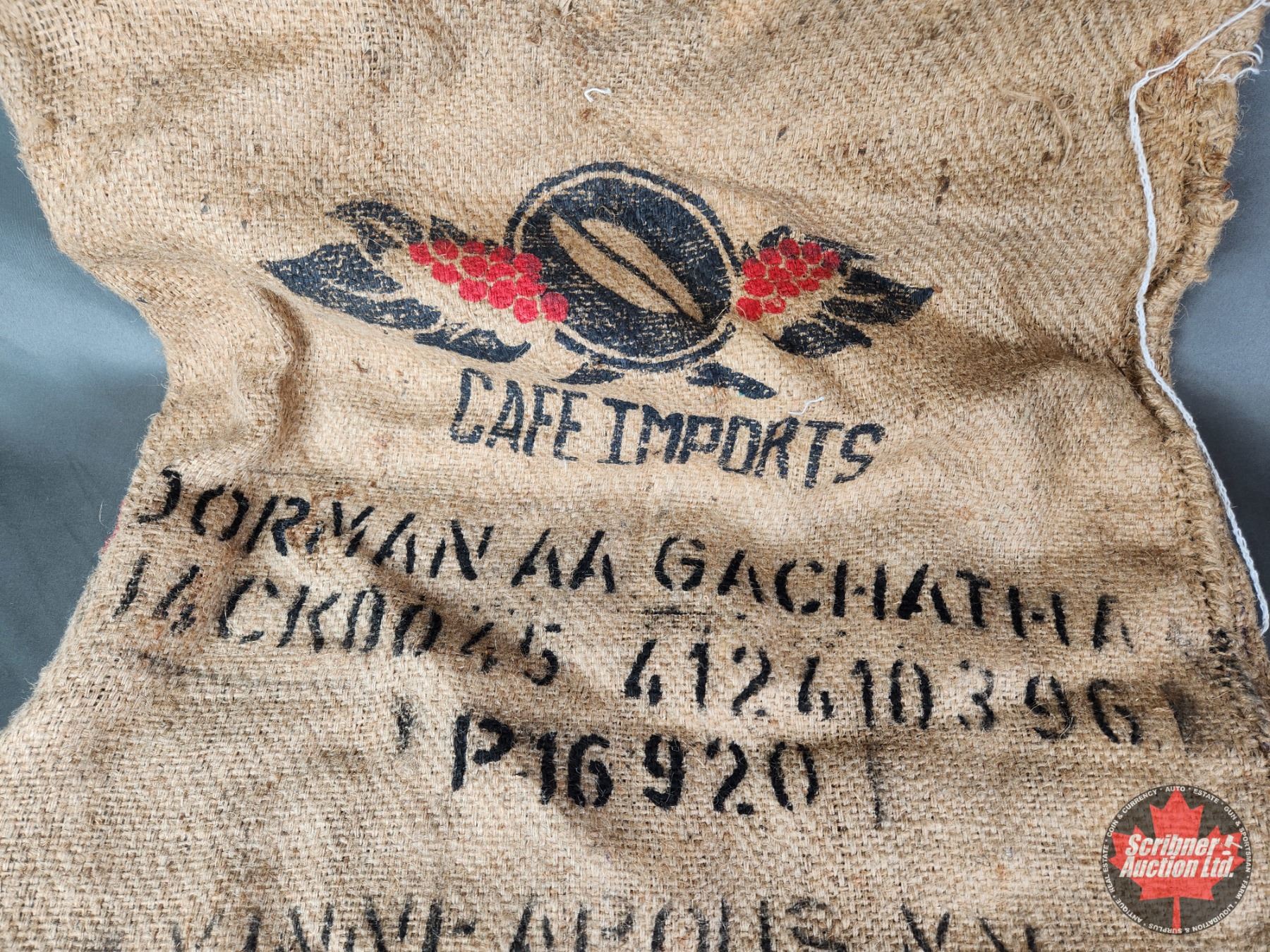 Burlap COFFEE Sack "CAFÉ IMPORTS" (Stamping Both Sides) (40"H x 24"W) (SEE PICS!)