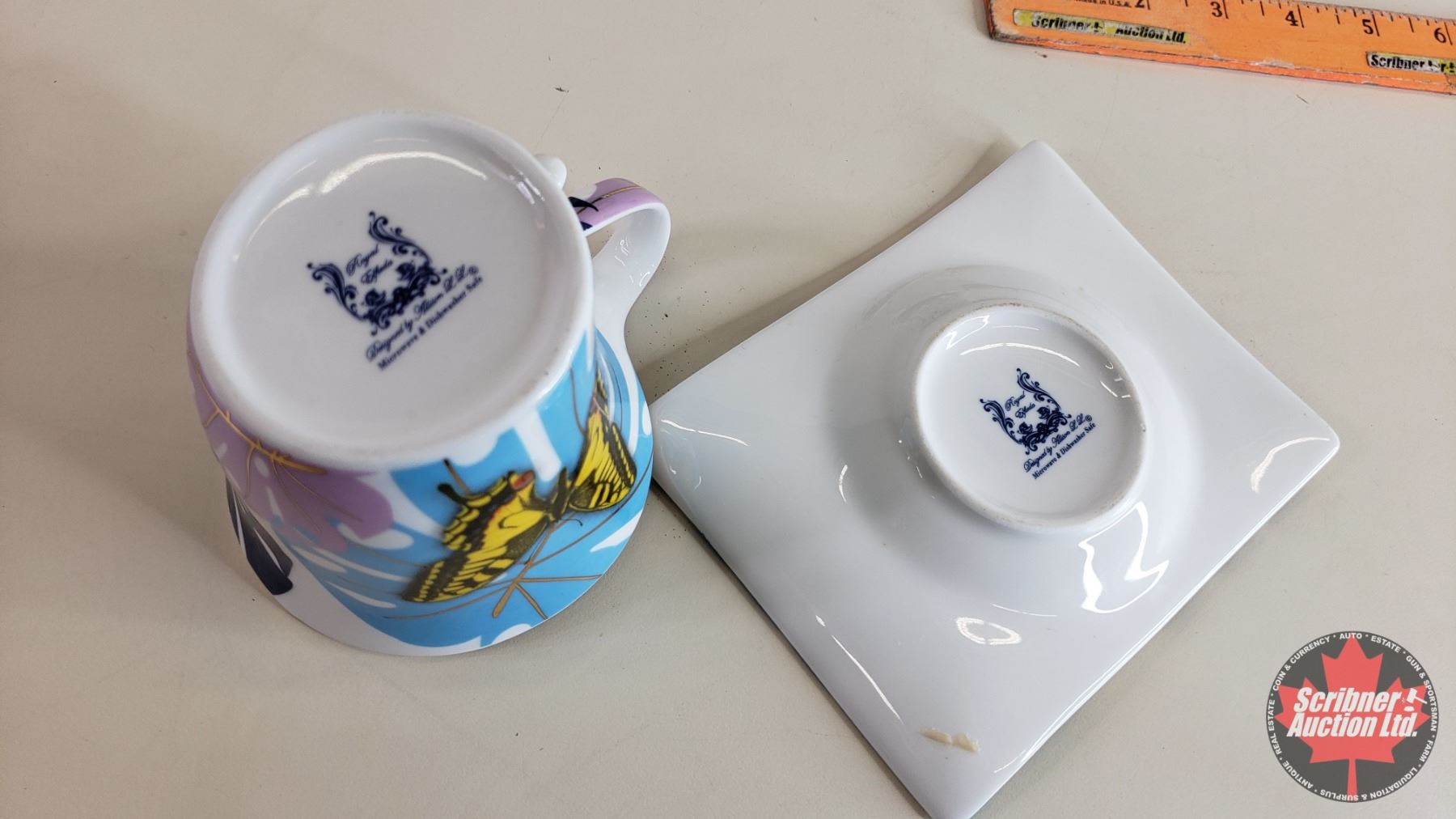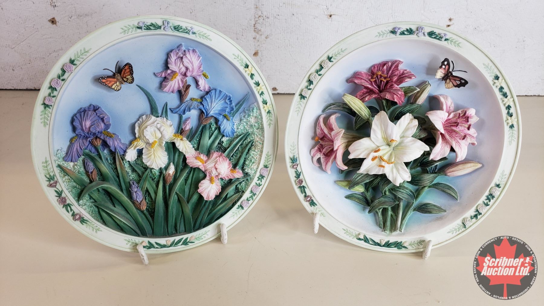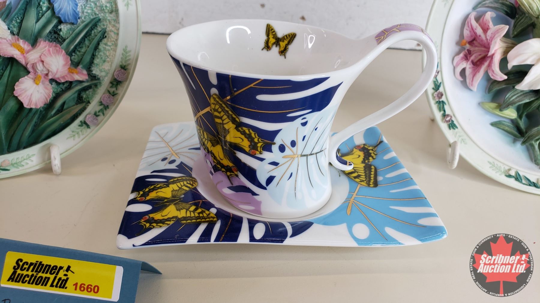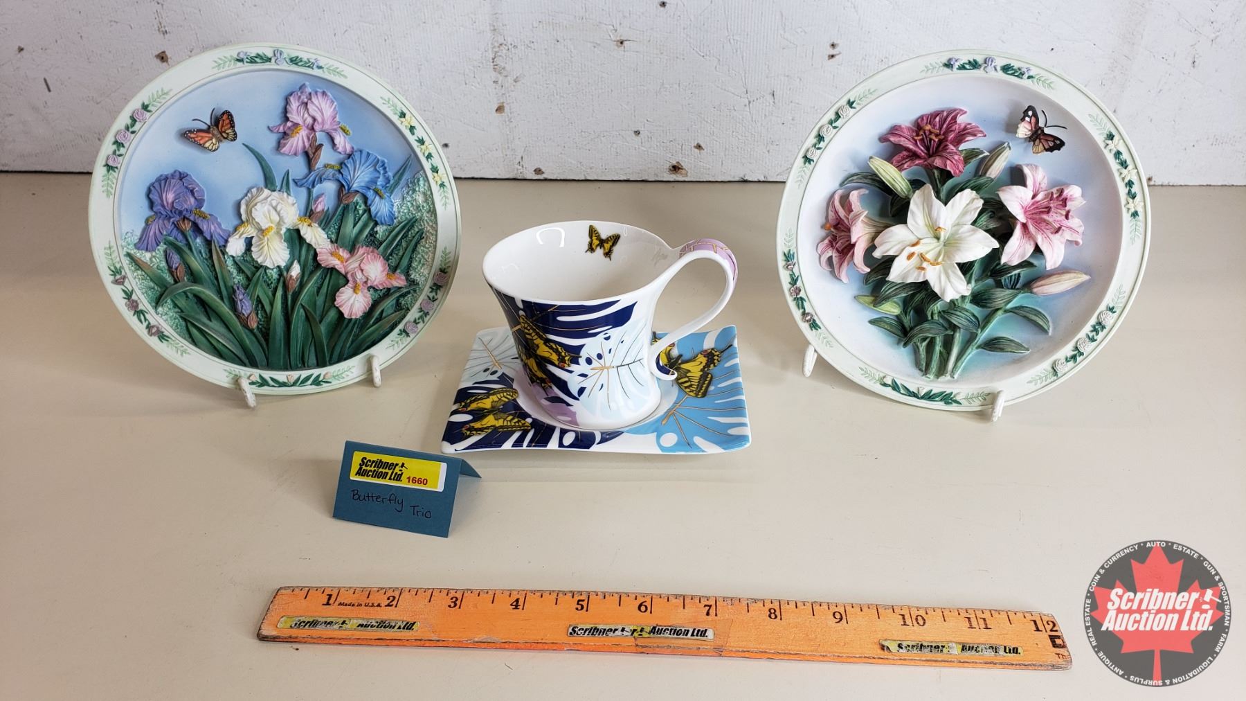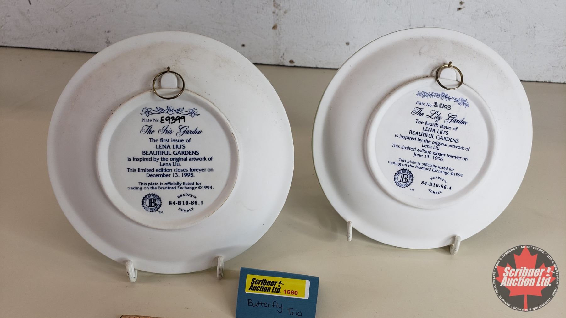 Butterfly Cup/Saucer & 2 BRADFORD Collector Plates "The Lily Garden" & "The Iris Garden" (7"Dia) (SEE PICS!)