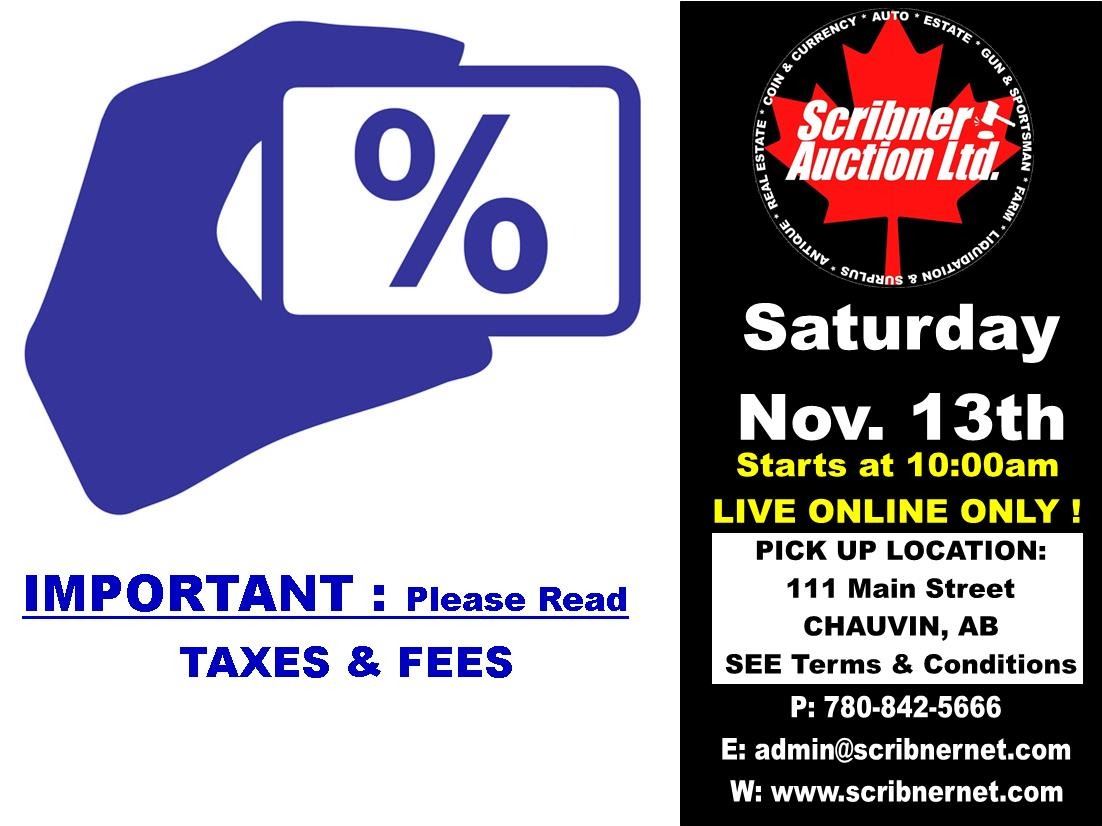 After an item has been sold, that item is the sole responsibility of the purchaser. All merchandise is sold AS IS/WHERE IS. No Guarantees or Warranties Given or Implied. Scribner Auction is not responsible for missing parts. No bidder shall retract his/her bid. All sales are final. Open house Preview on Thursday November 11th from 2pm - 7pm at GOODALL MOTORS LOCATION : 111 Main Street, CHAUVIN, AB.