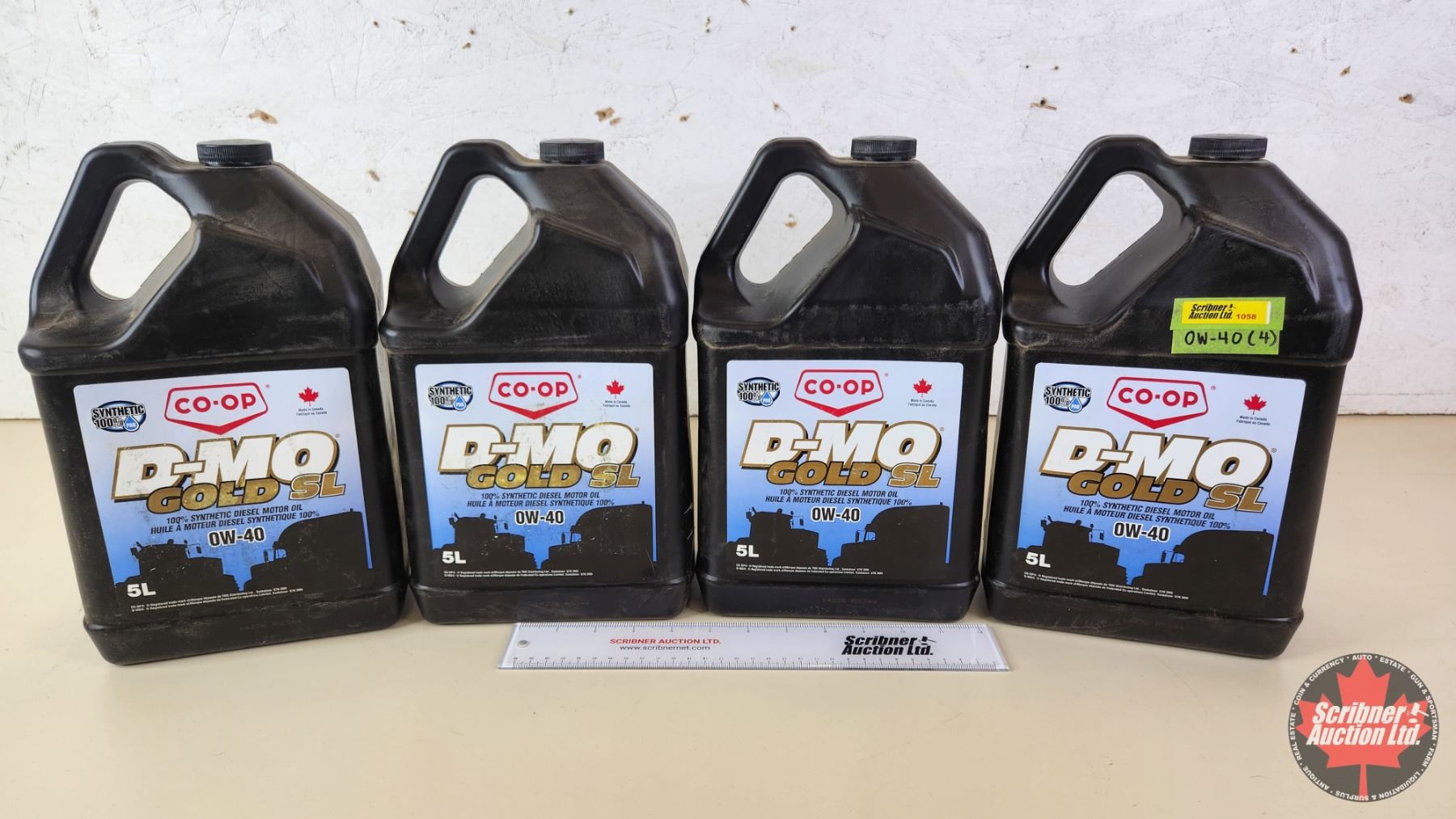 CO-OP Motor Oil D-MO GOLD SL 0W-40 Synthetic (4 Jugs - ALL FULL) (SEE PICS!) Location : Scribner Auction Pavilion (2209-23 Street, Wainwright, AB)