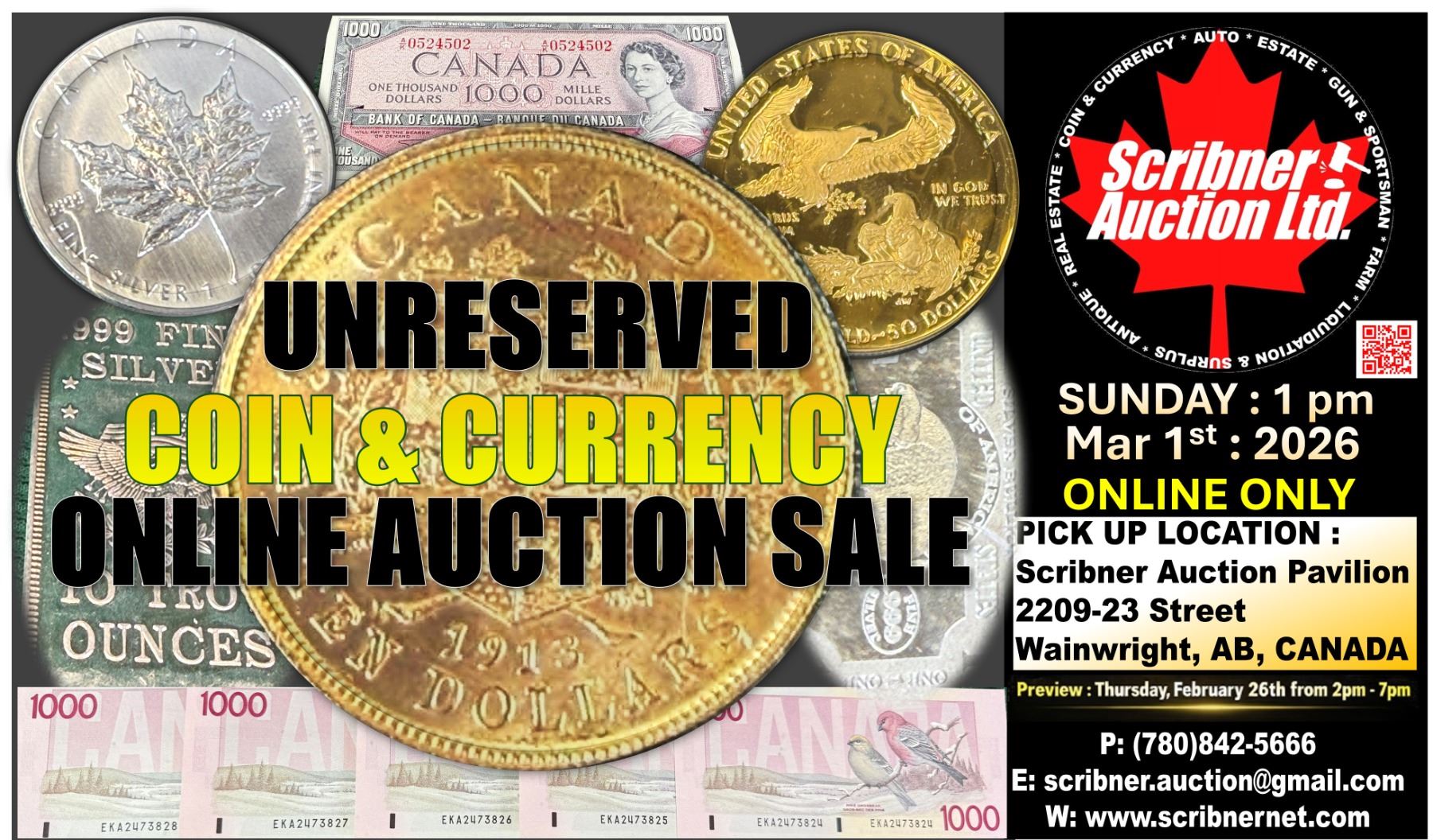 3. If you wish to pick up your items and pay with either Debit or Cash, this must be approved/arranged by Scribner Auction Ltd.