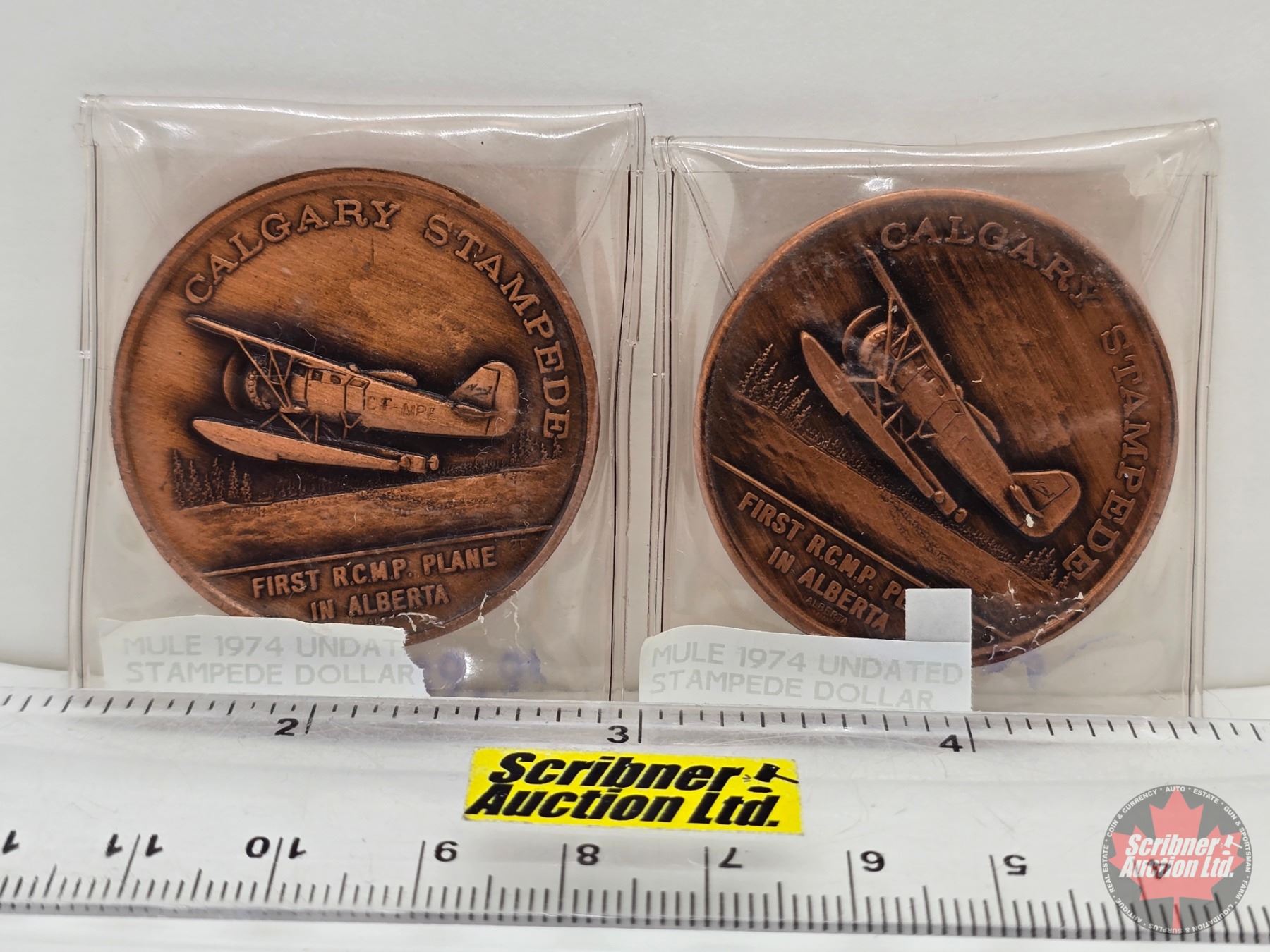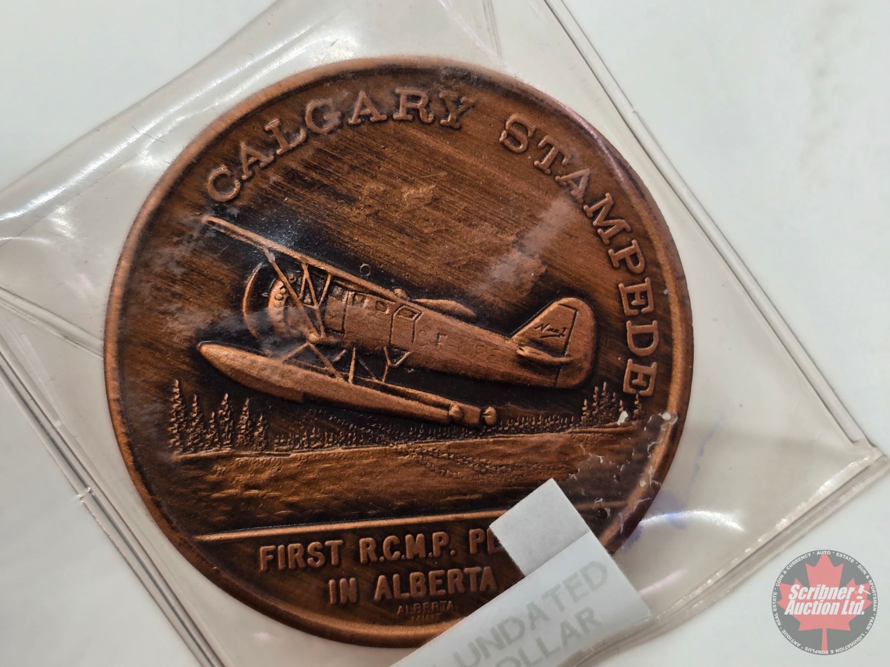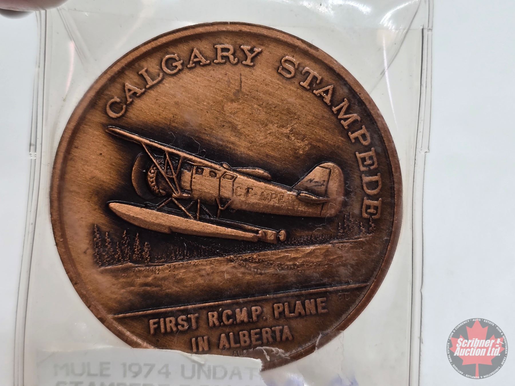 Calgary Stampede Medallions (2) : First RCMP Plane in Alberta (Mule 1974)