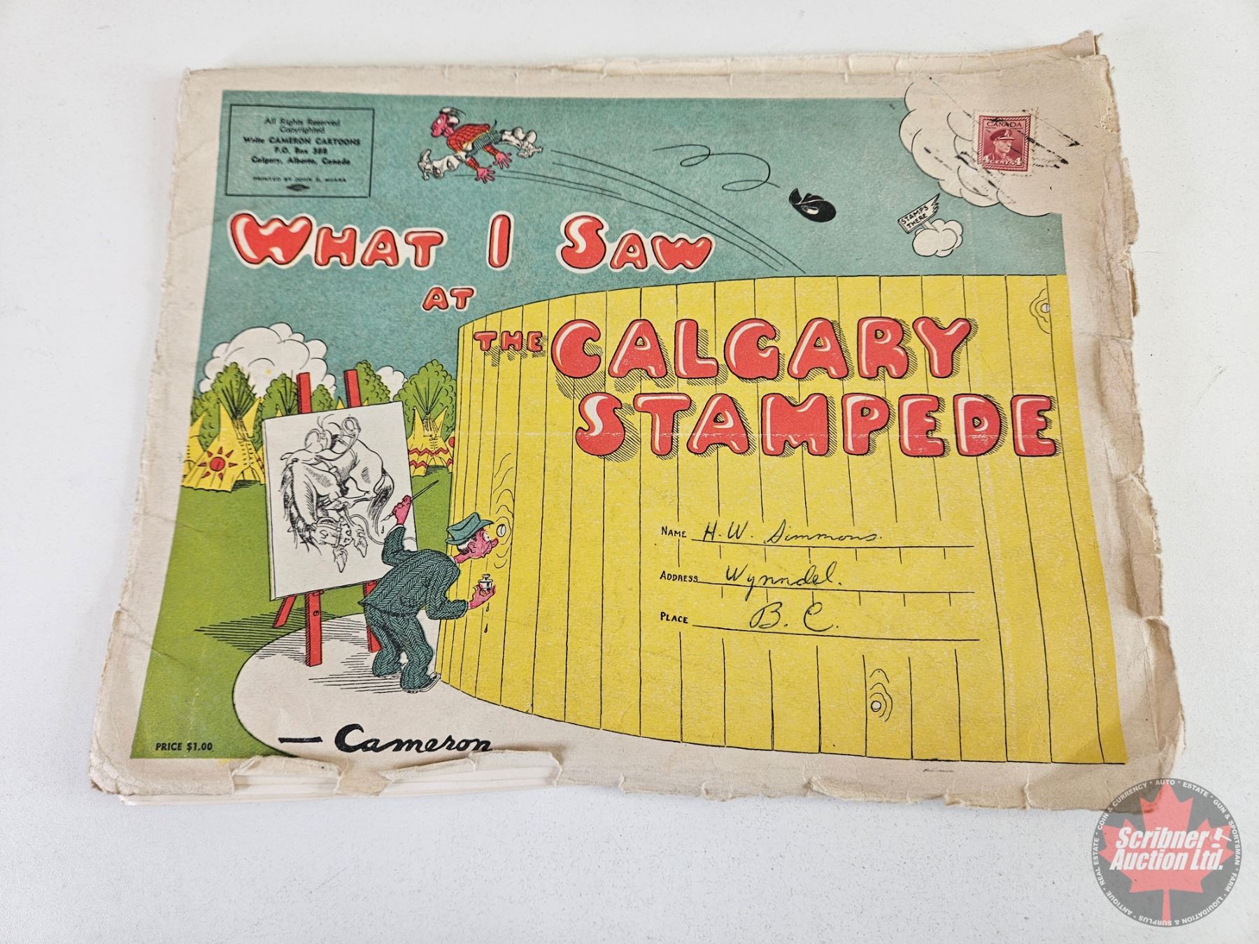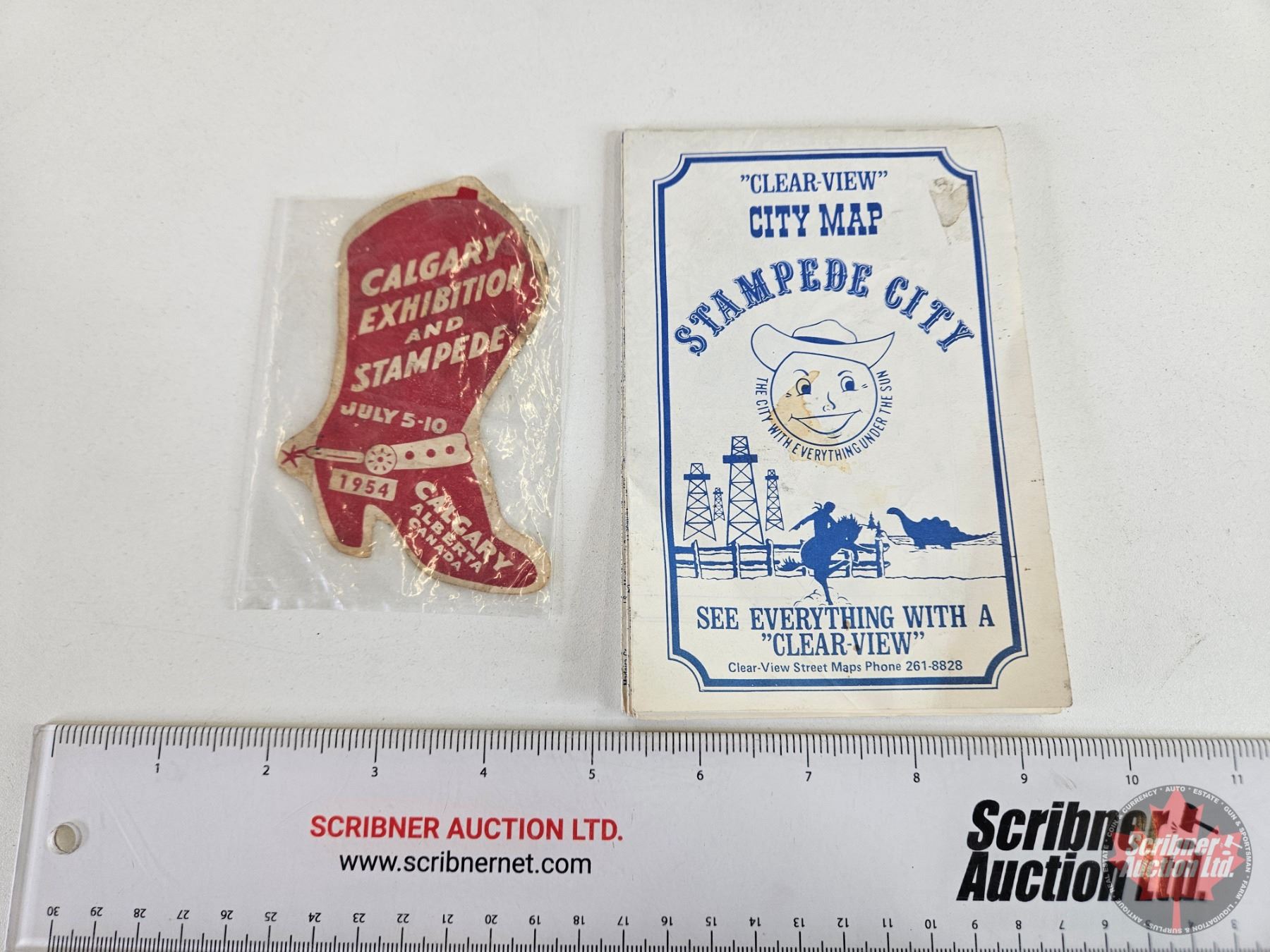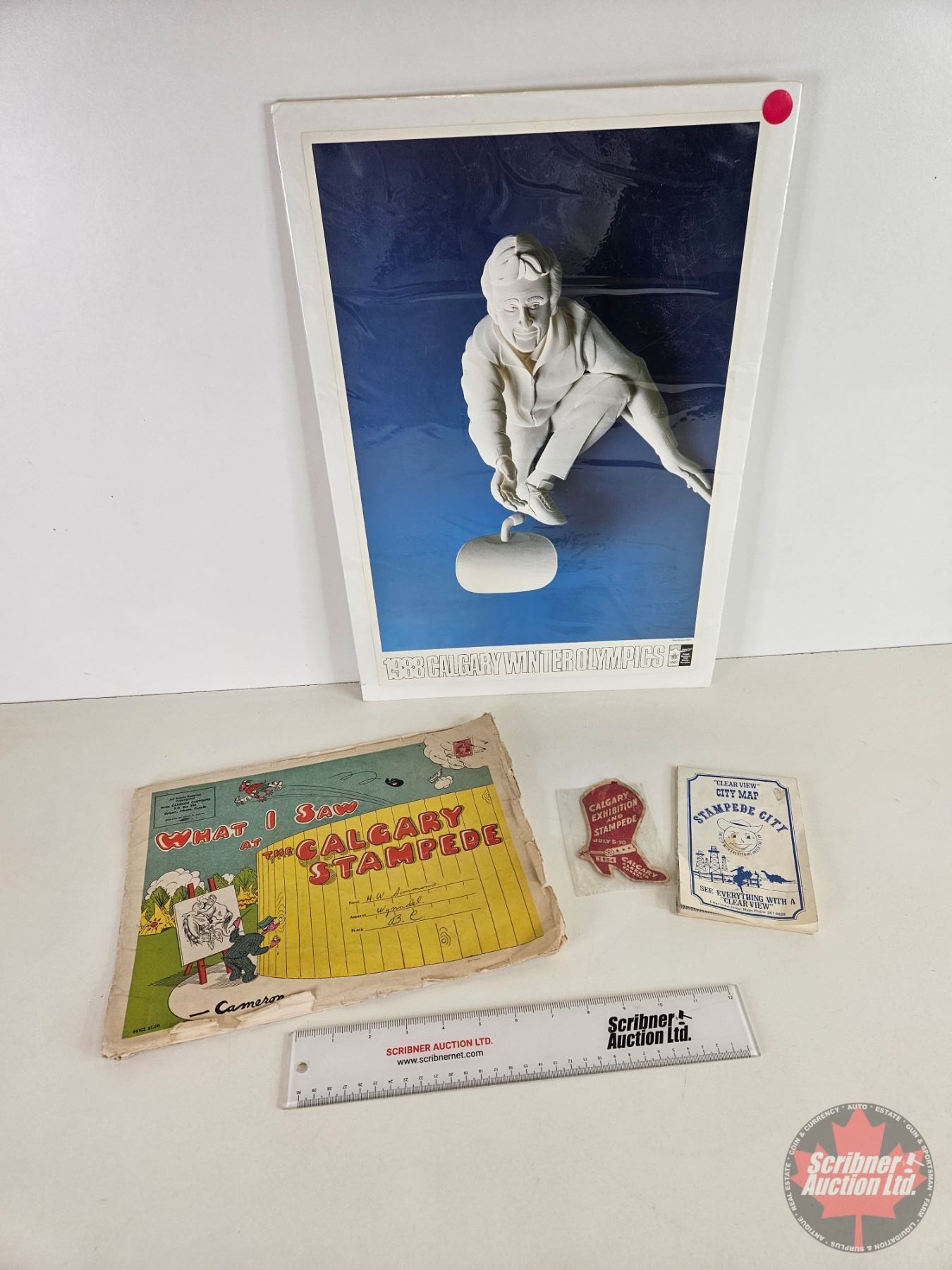 (Stampede Cartoon Book 1949 ; Stampede 1954 Sticker; 1986 City Map; 1988 Winter Olympics Poster on Board)