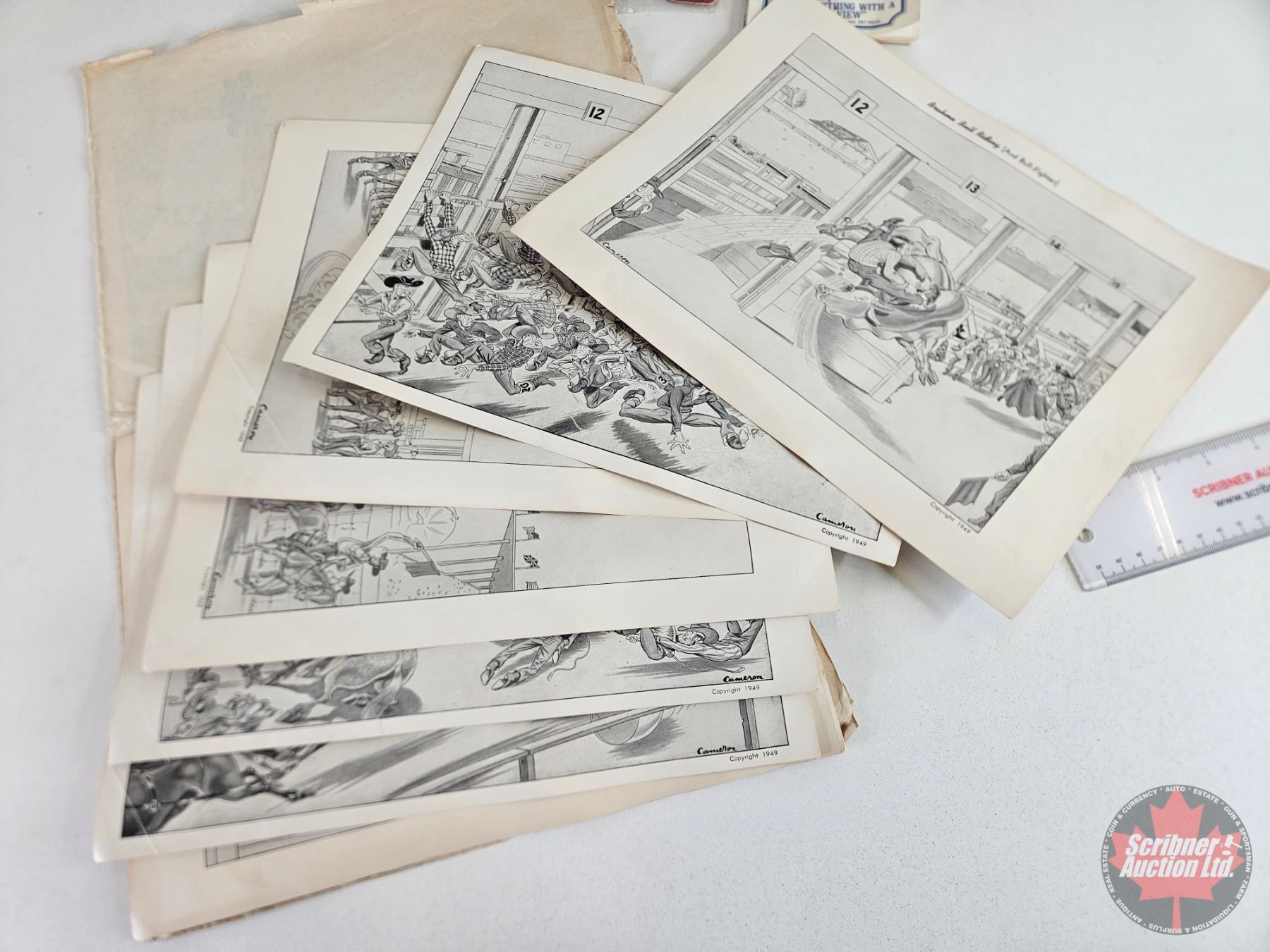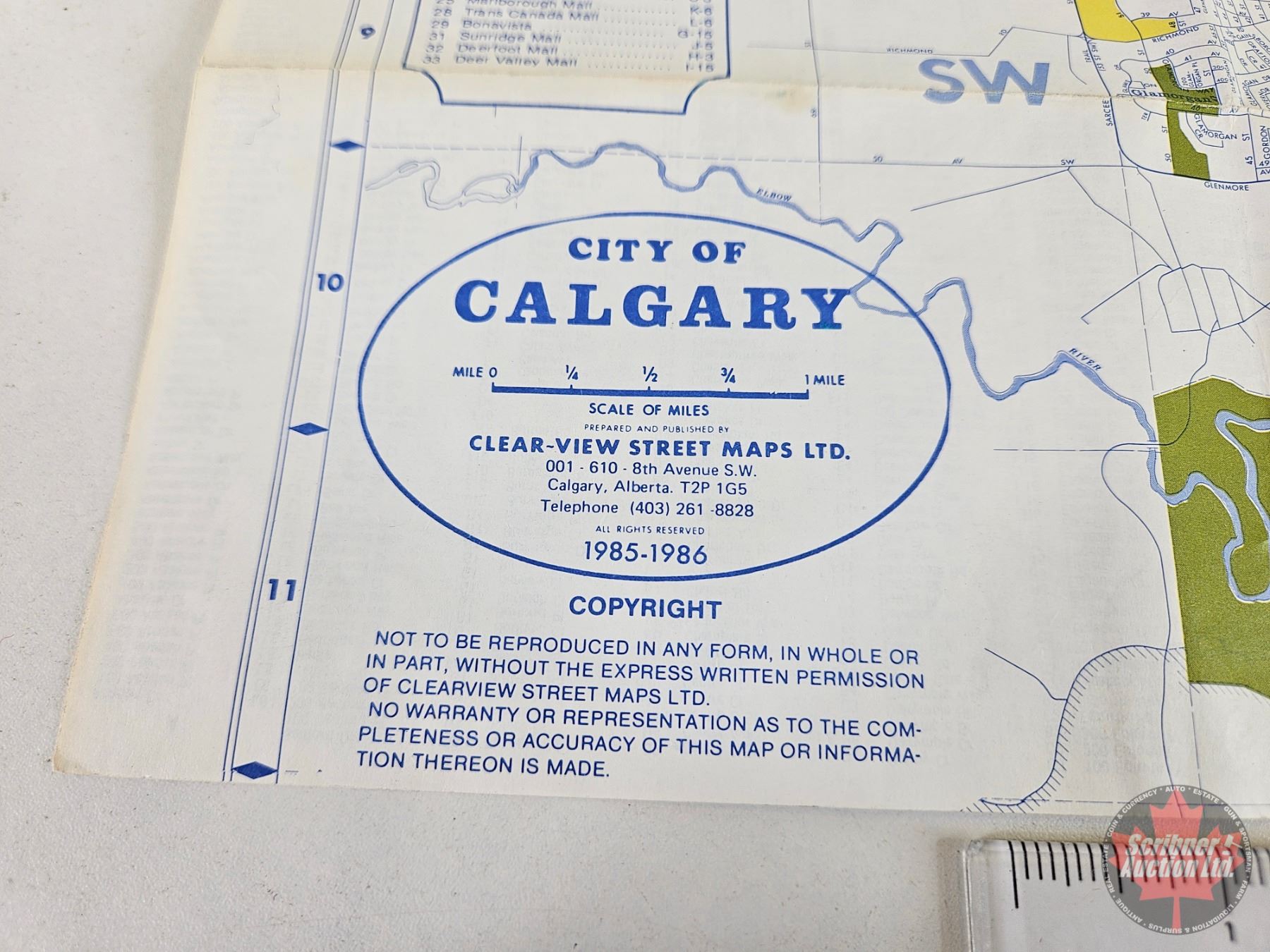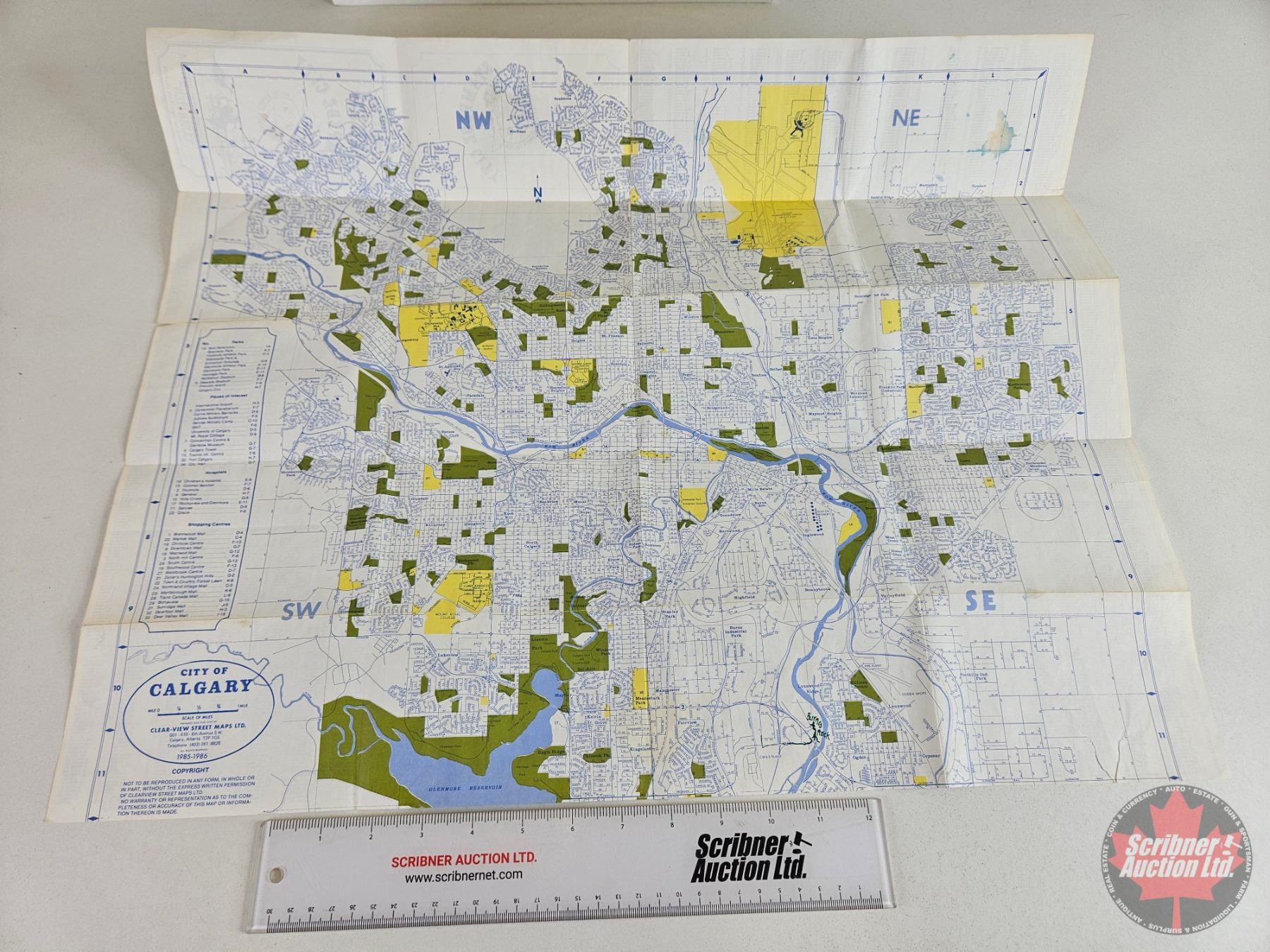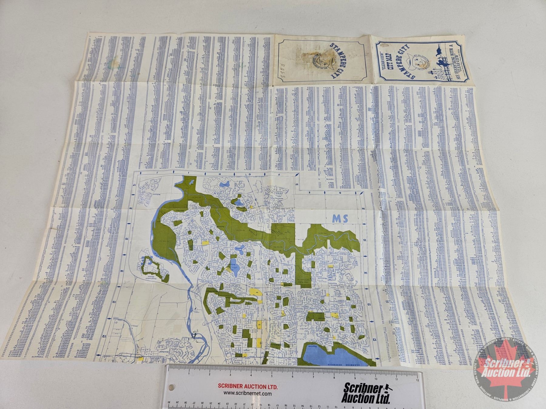 (Stampede Cartoon Book 1949 ; Stampede 1954 Sticker; 1986 City Map; 1988 Winter Olympics Poster on Board)