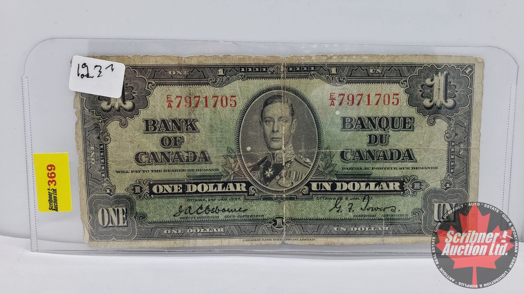 Canada $1 Bill 1937 : Osbourne/Towers #EA7971705