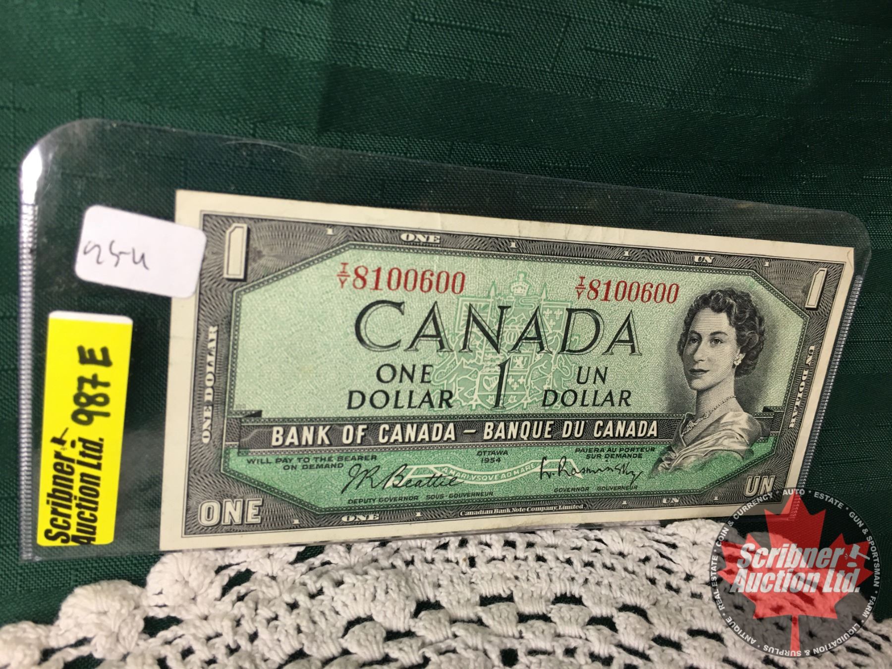 Canada $1 Bill 1954 : Beattie/Rasminsky #TY8100600