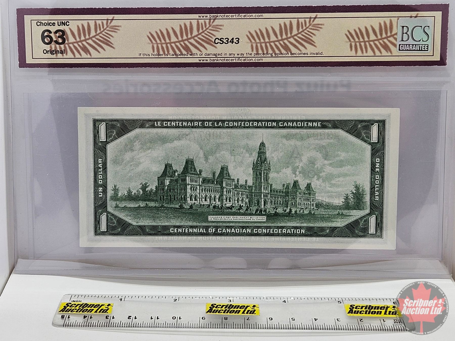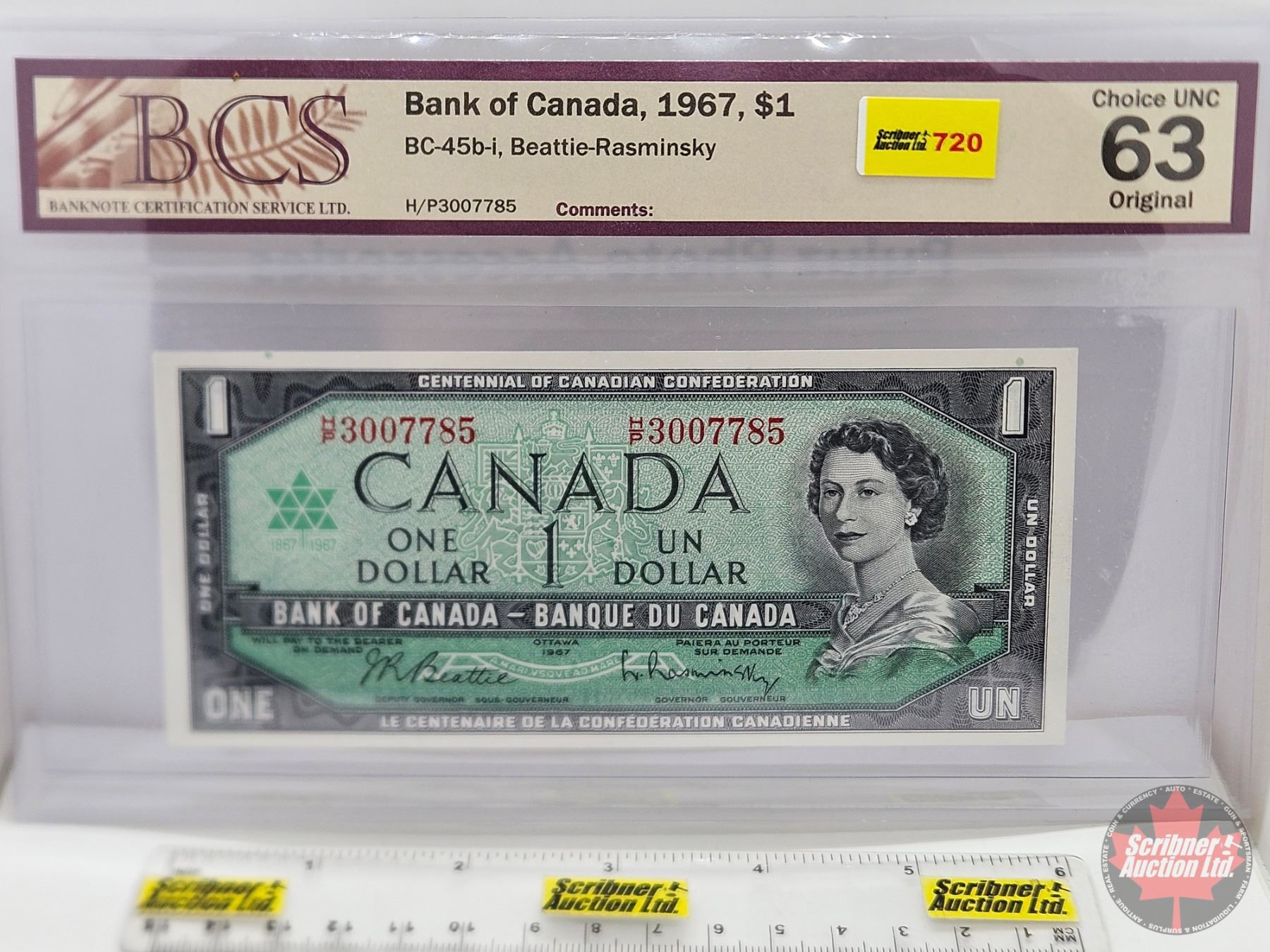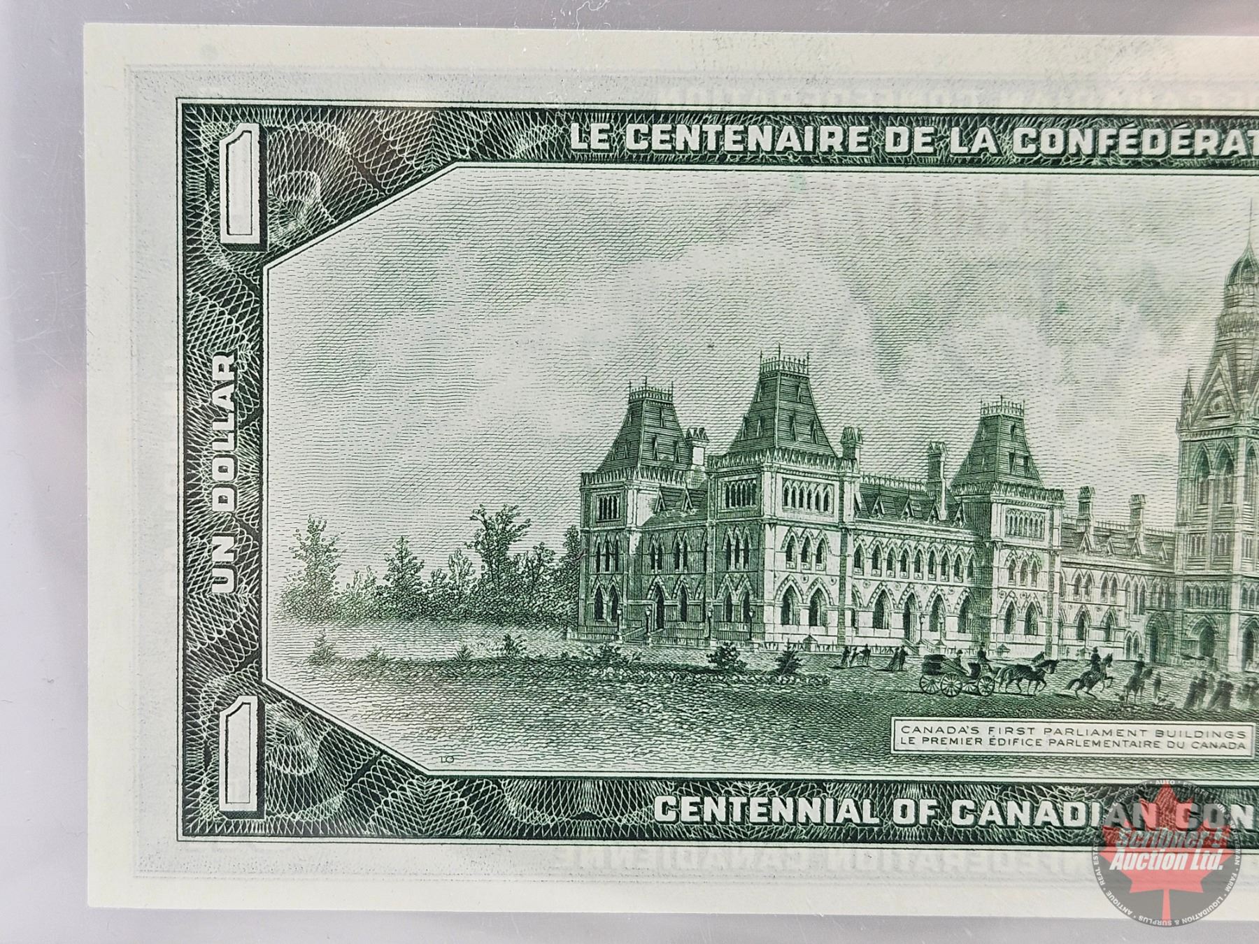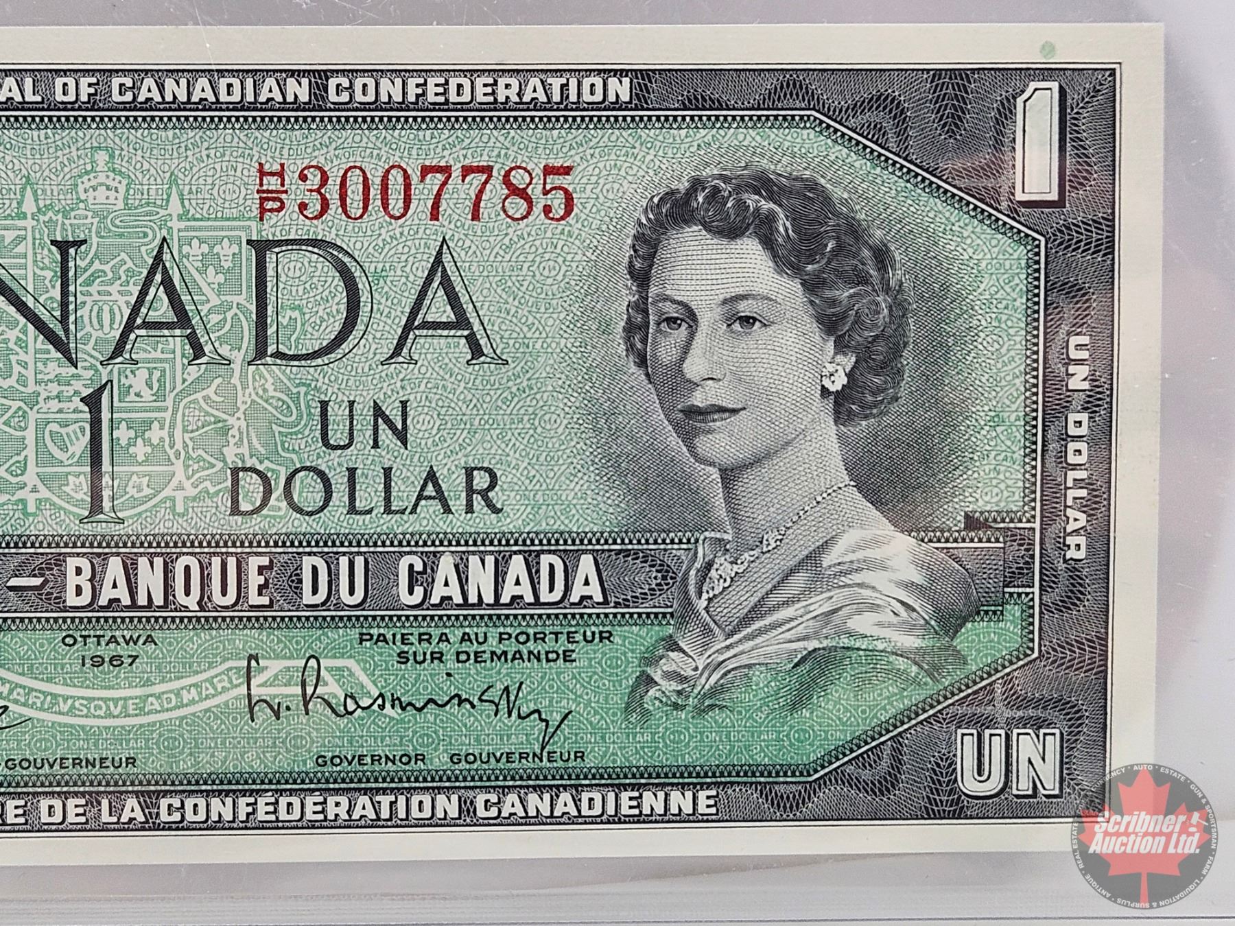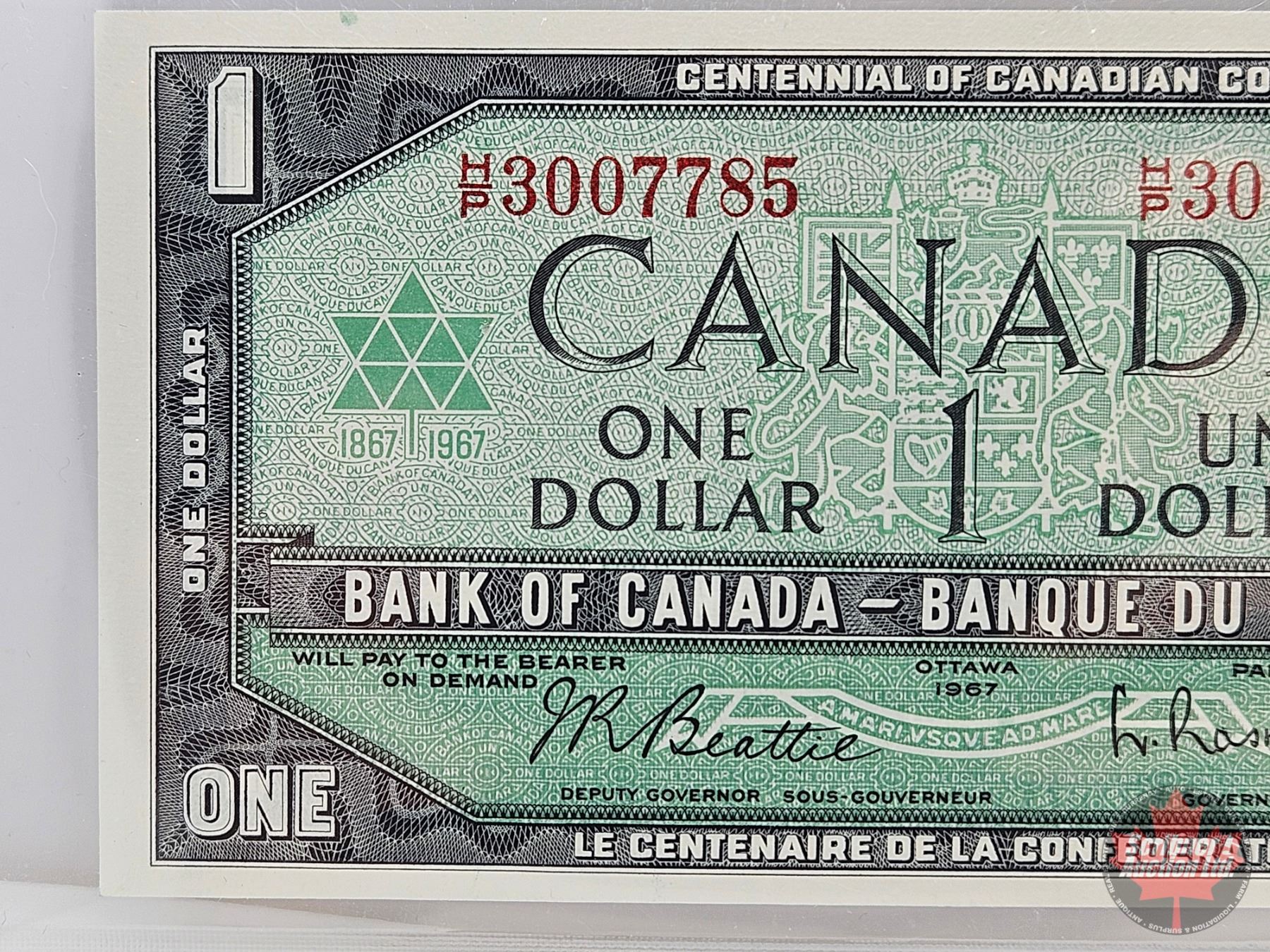 Canada $1 Bill 1967 : Beattie/Rasminsky #HP3007785 (BCS Cert: Choice UNC 63 Original)
