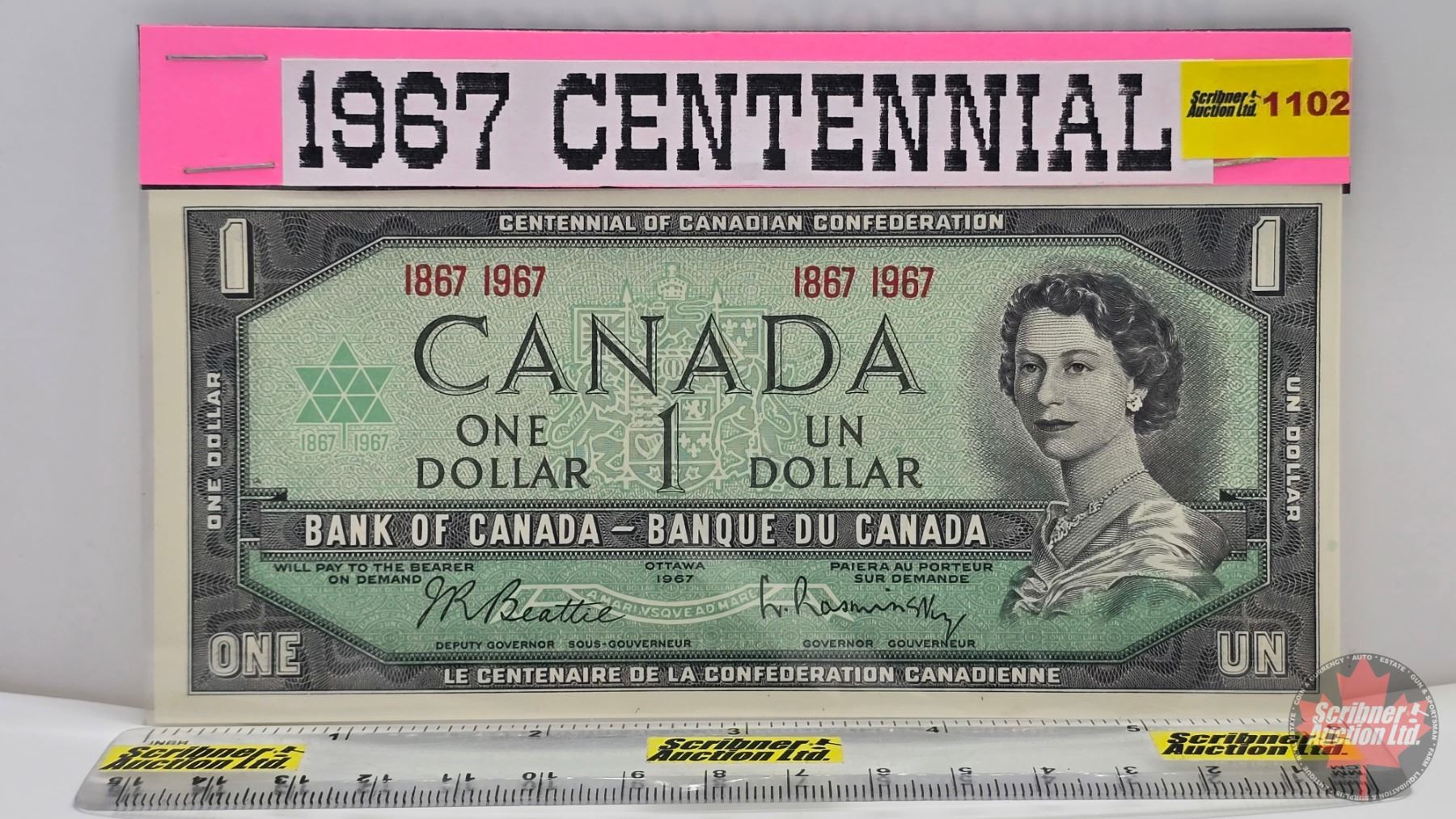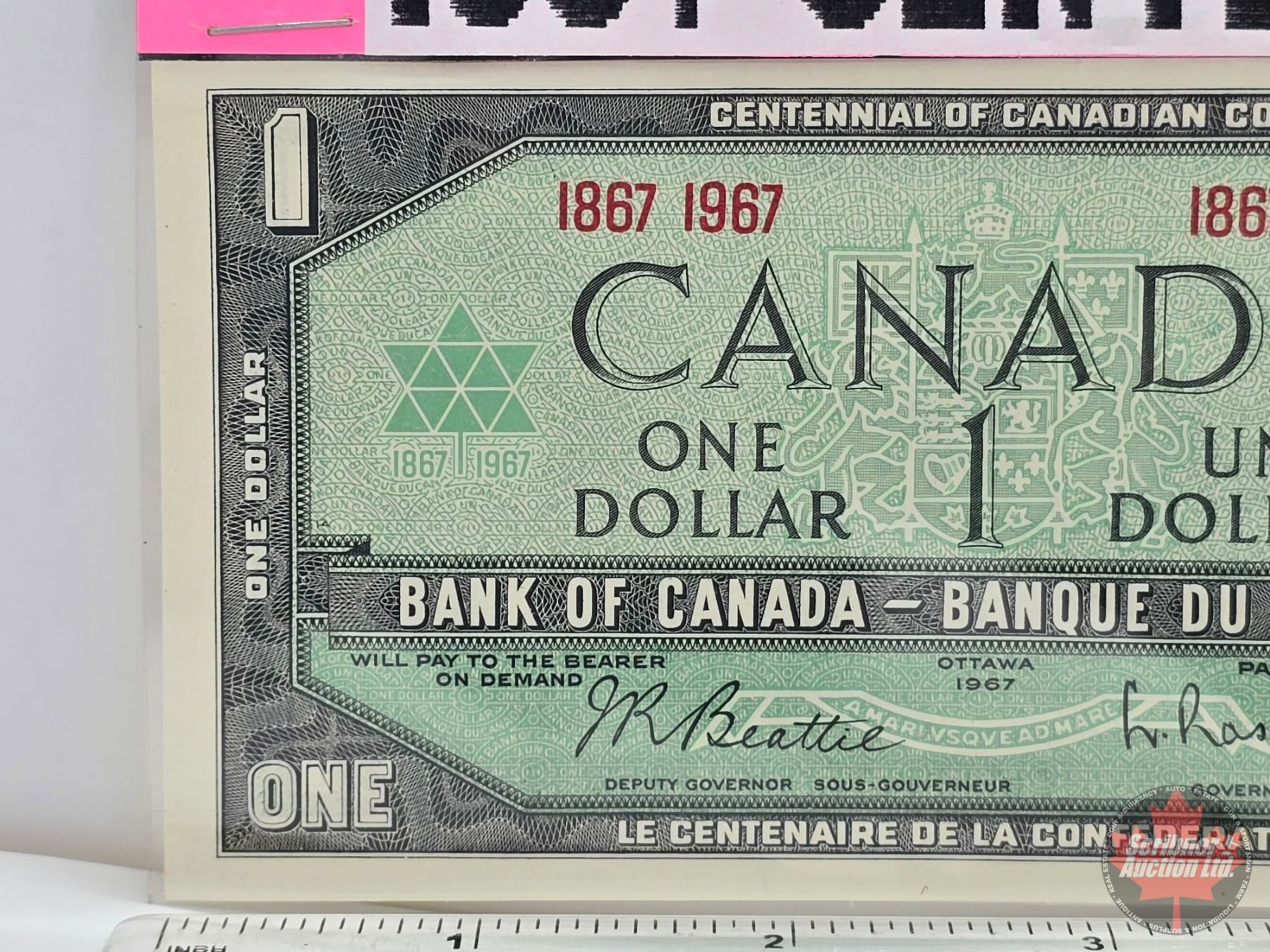 Canada $1 Bill Centennial : Beattie/Rasminsky # 1867 1967 (See Pics for Varieties, Conditions, Seria