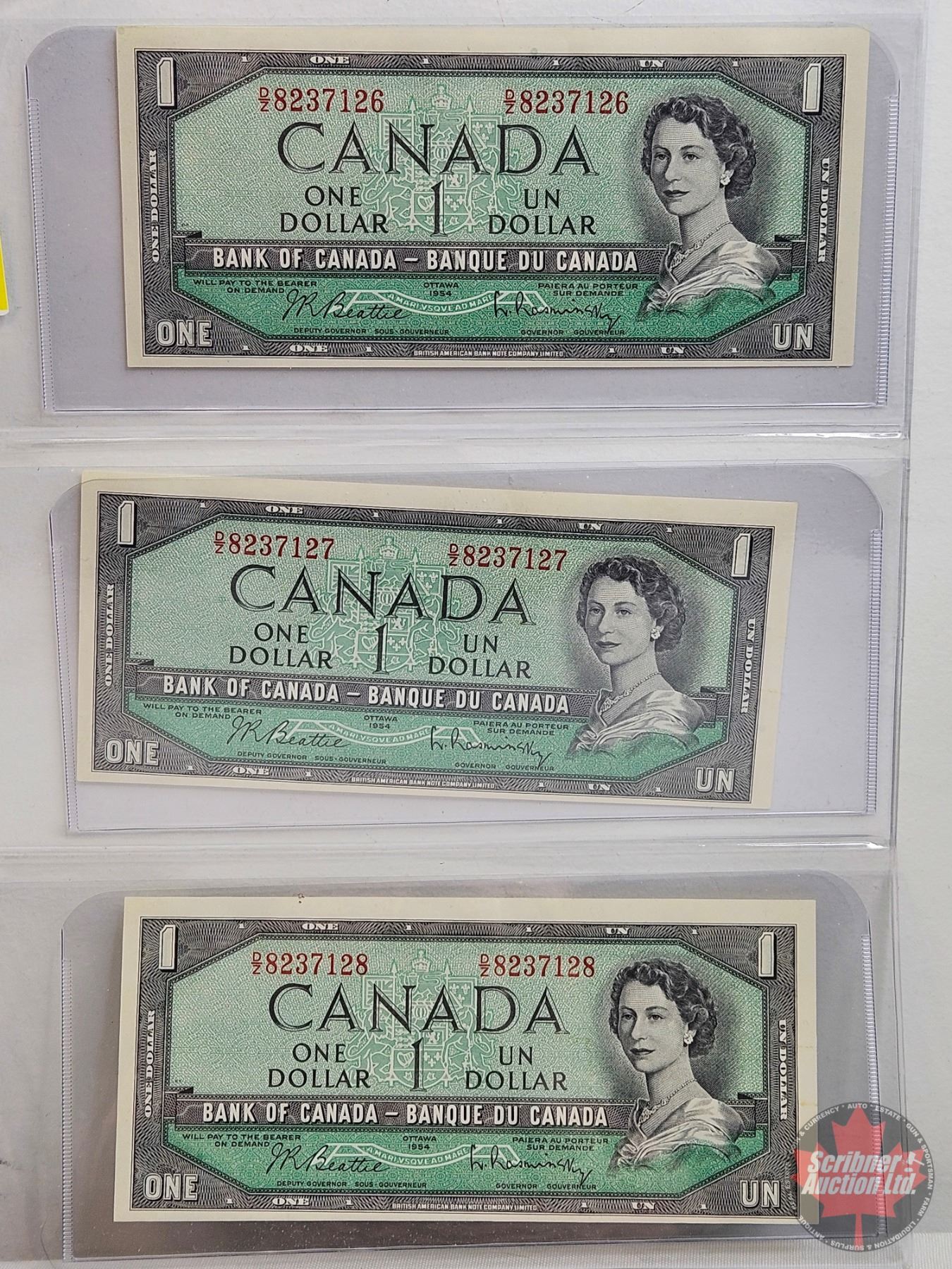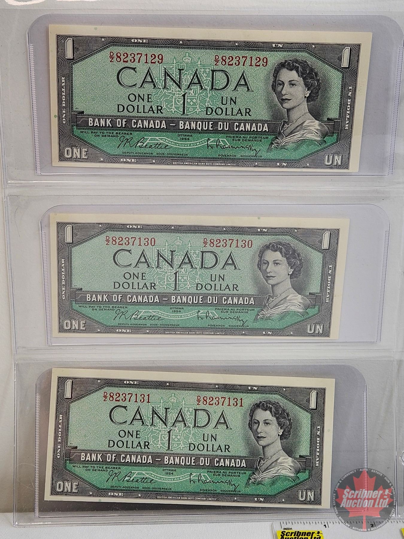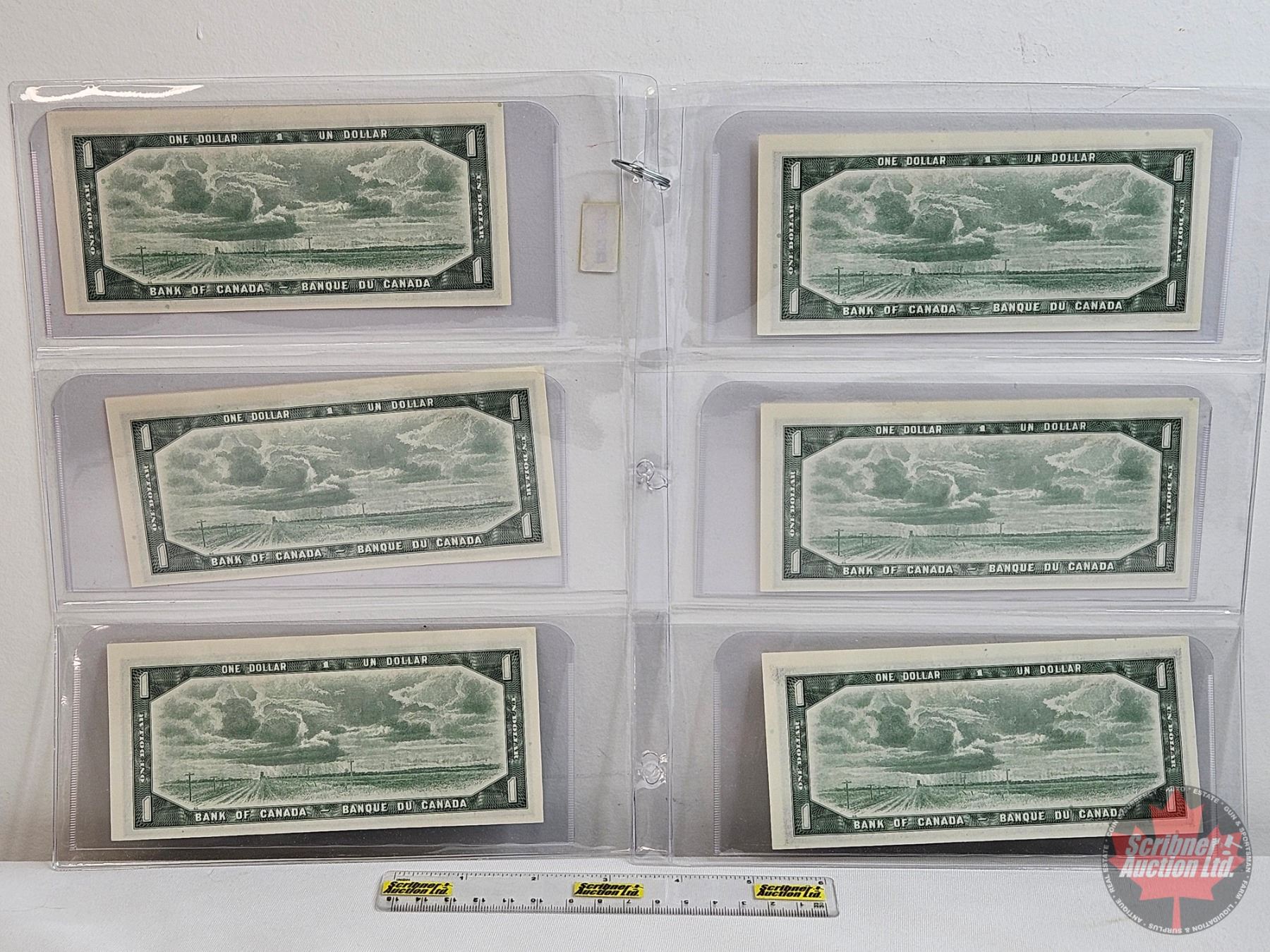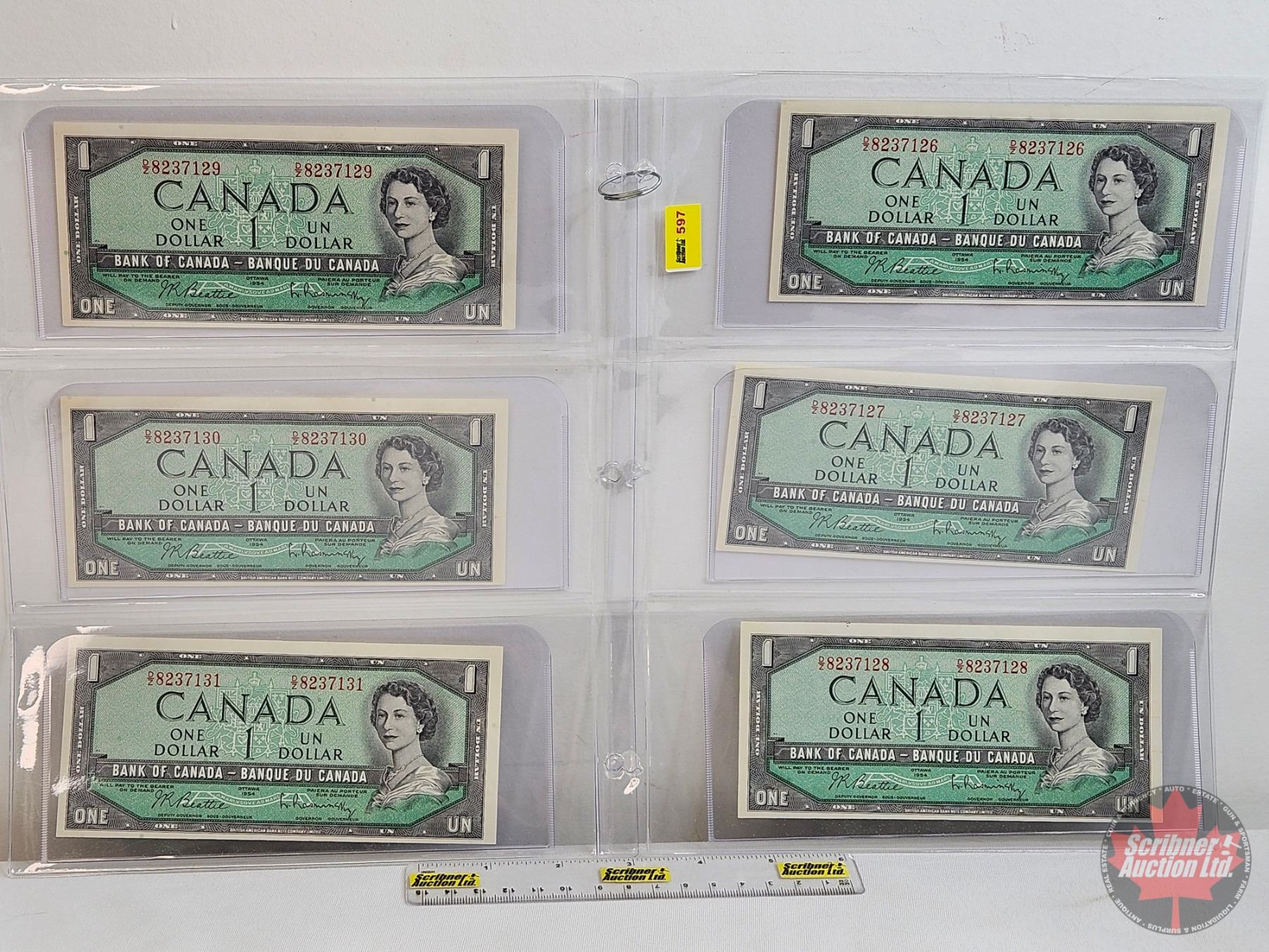 Canada $1 Bills 1954 (6 Sequential) : Beattie/Rasminsky #DZ8237126-7131