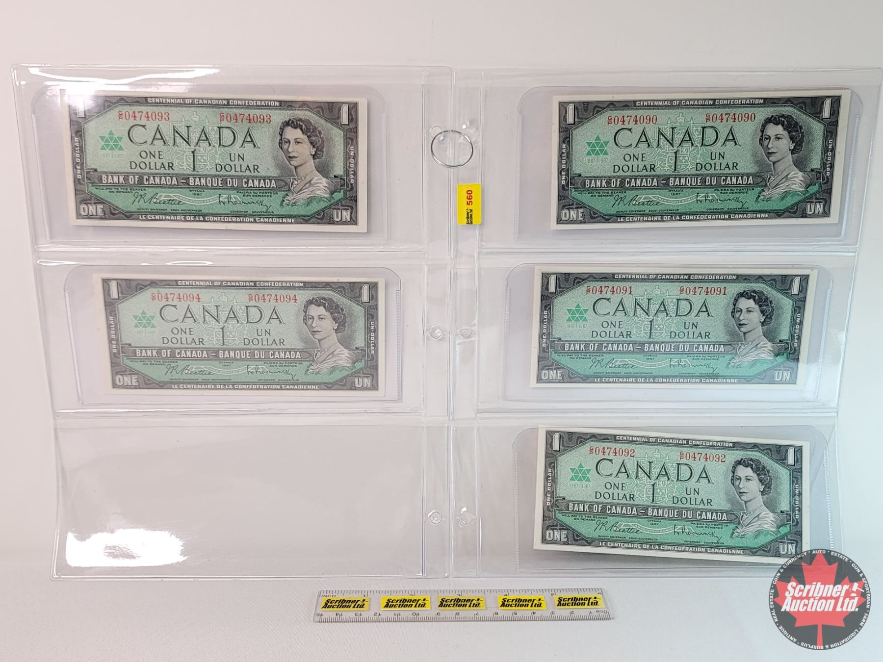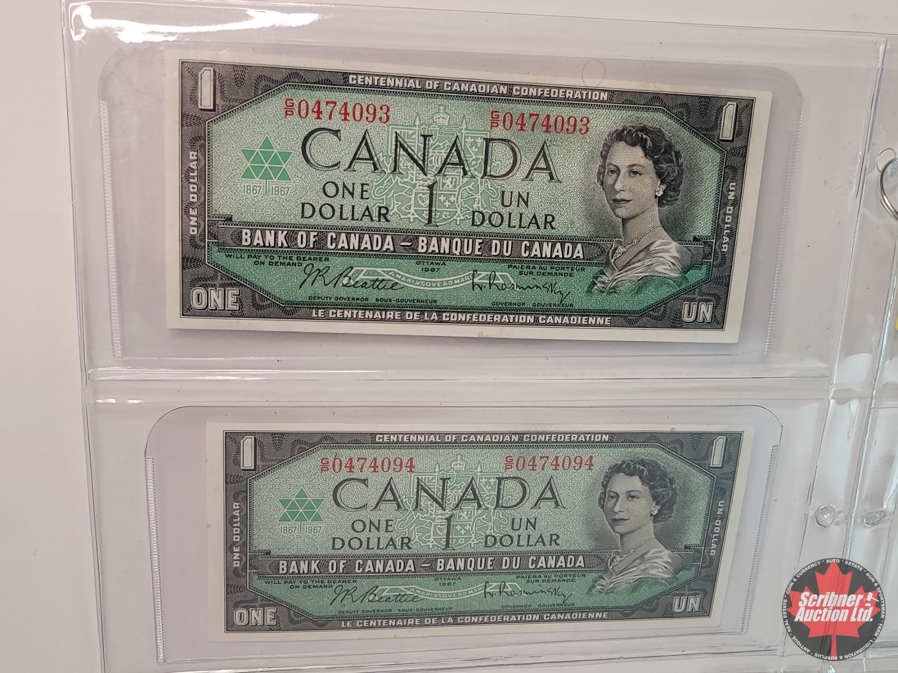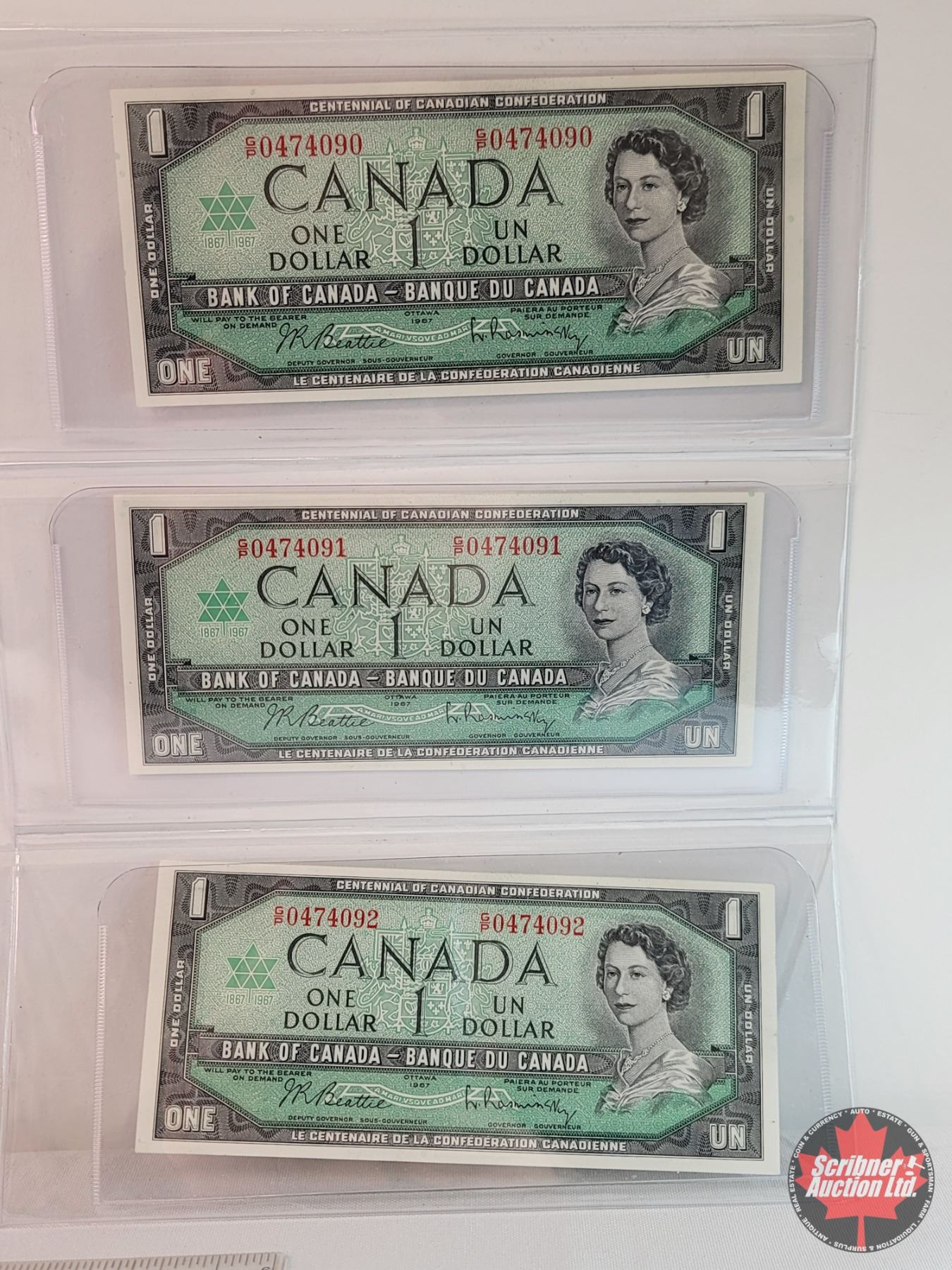Canada $1 Bills 1967 (5 Sequential) : S/N#GP0474090-91-92-93-94 Beattie/Rasminsky (See Pics for Varieties, Conditions, Serial Numbers & Signatures)