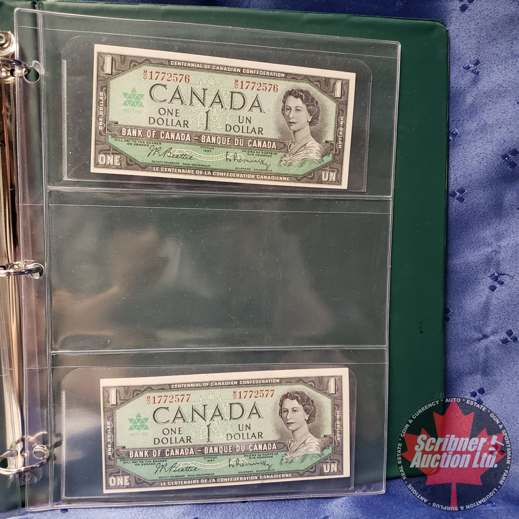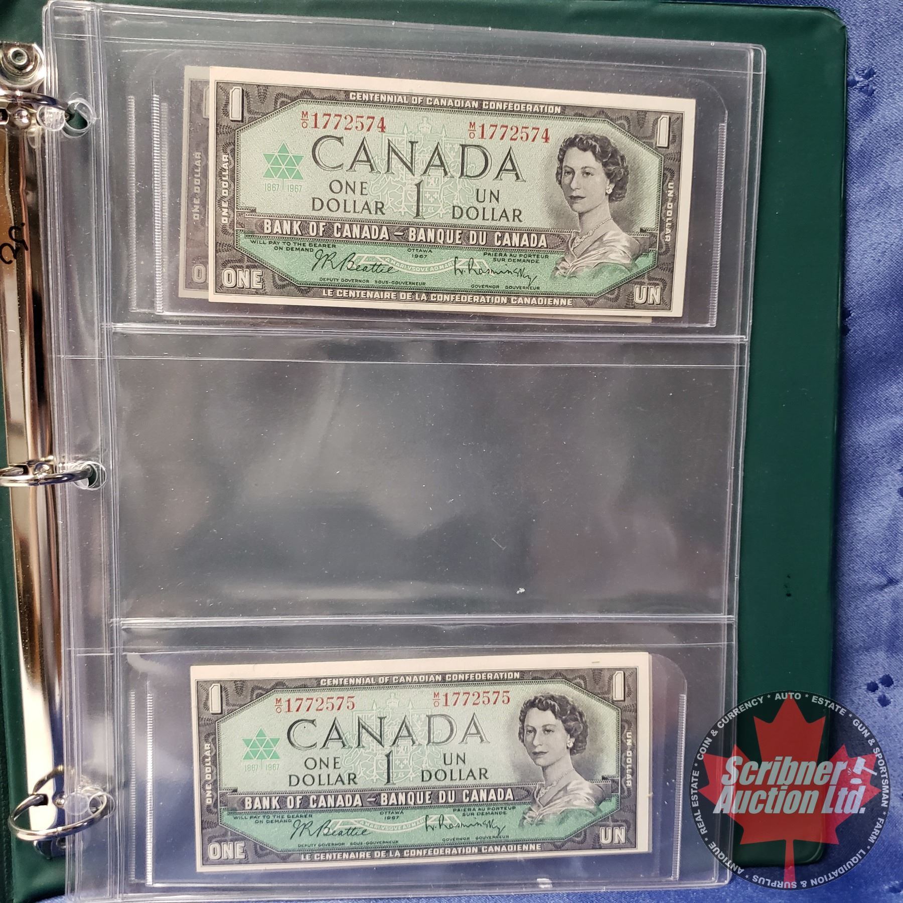 Canada $1 Bills 1967 Centennial (4 Sequential): Beattie/Rasminsky (#MO1772574-75-76-77) (See Pics for Signatures/Serial Numbers)