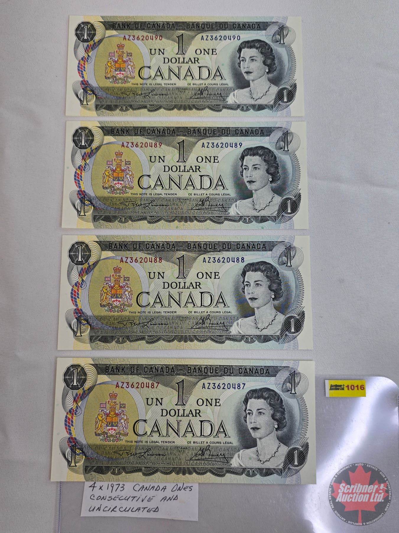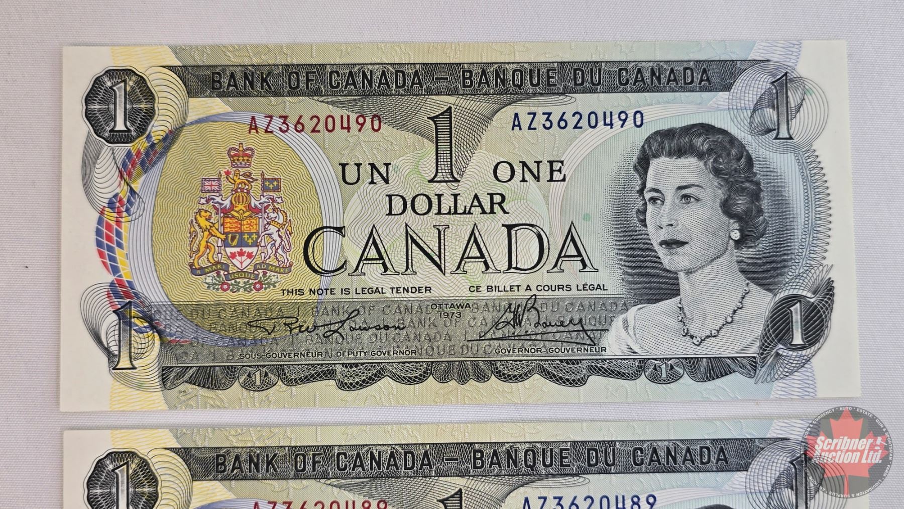 Canada $1 Bills 1973 (4 Consecutive) : Lawson/Bouey #AZ3620487-490