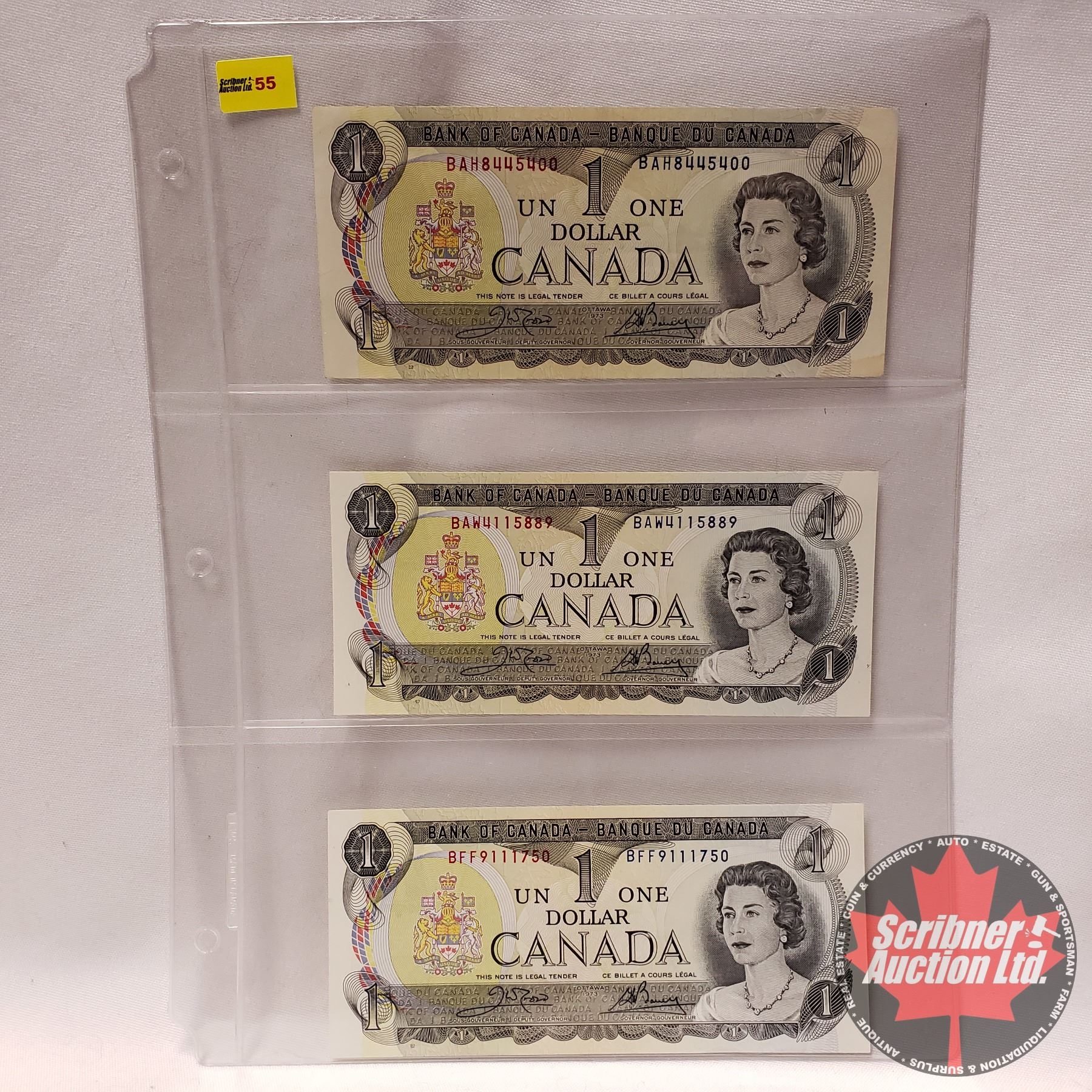 Canada $1 Bills (3) 1973 (See Pics for Signatures/Serial Numbers)