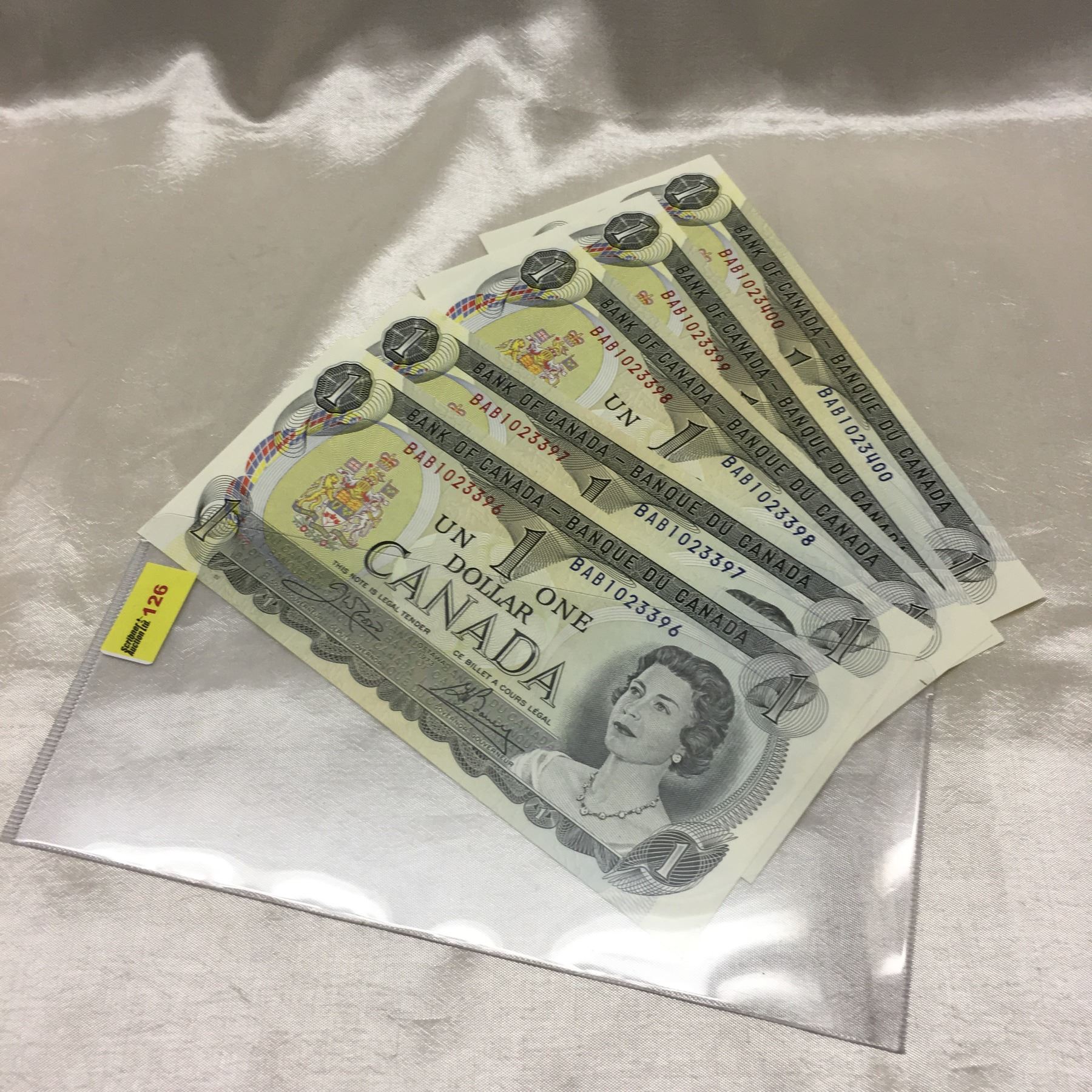 Canada $1 Bills (5 Sequential) BAB1023396/397/398/399/400