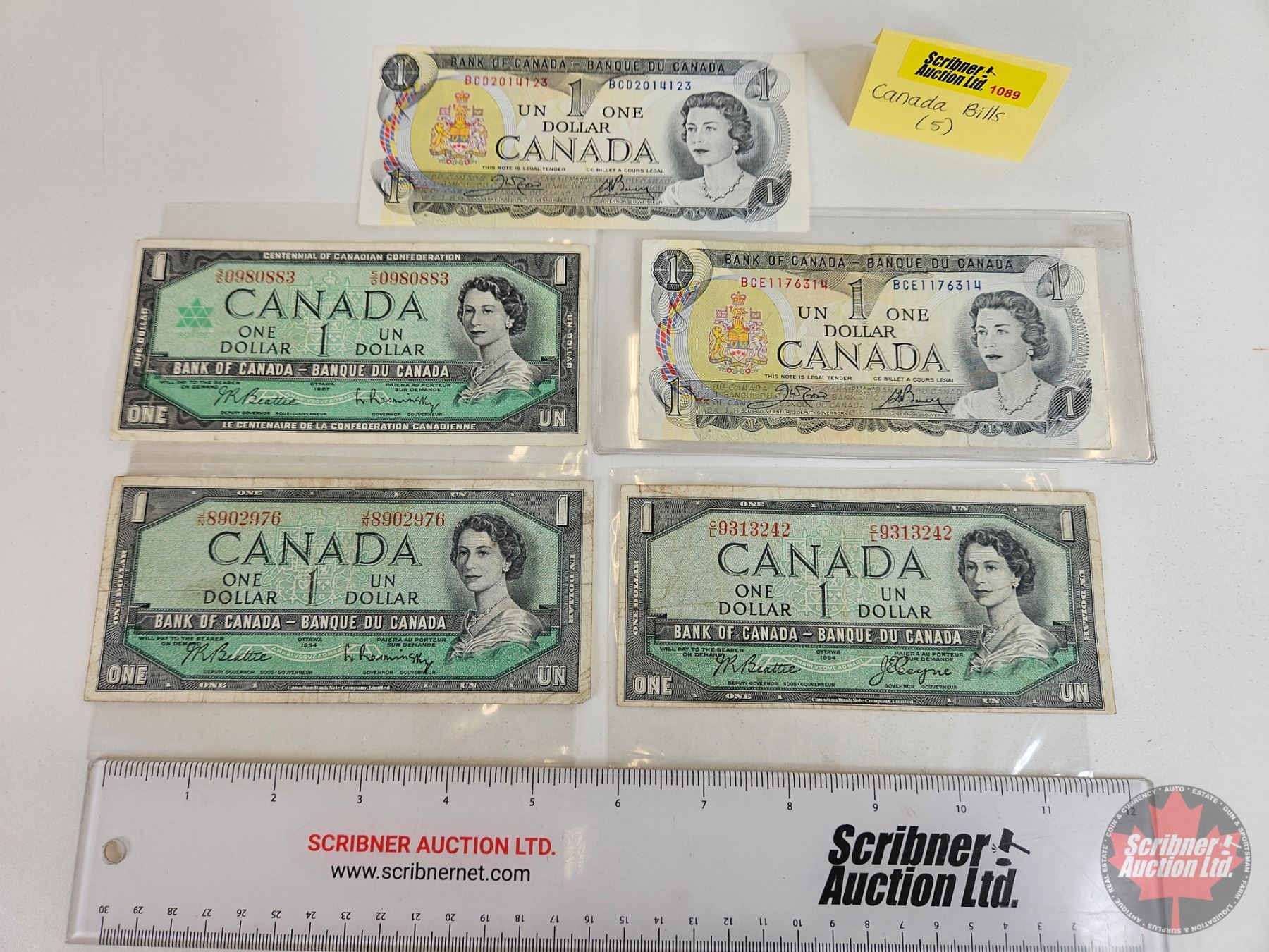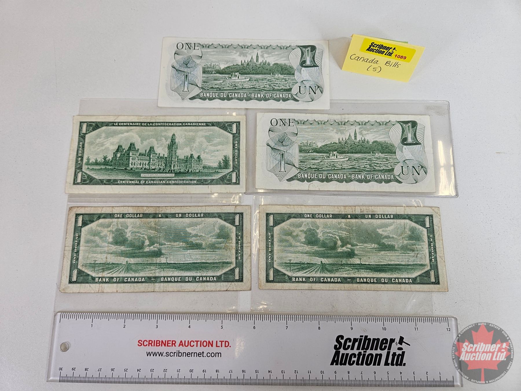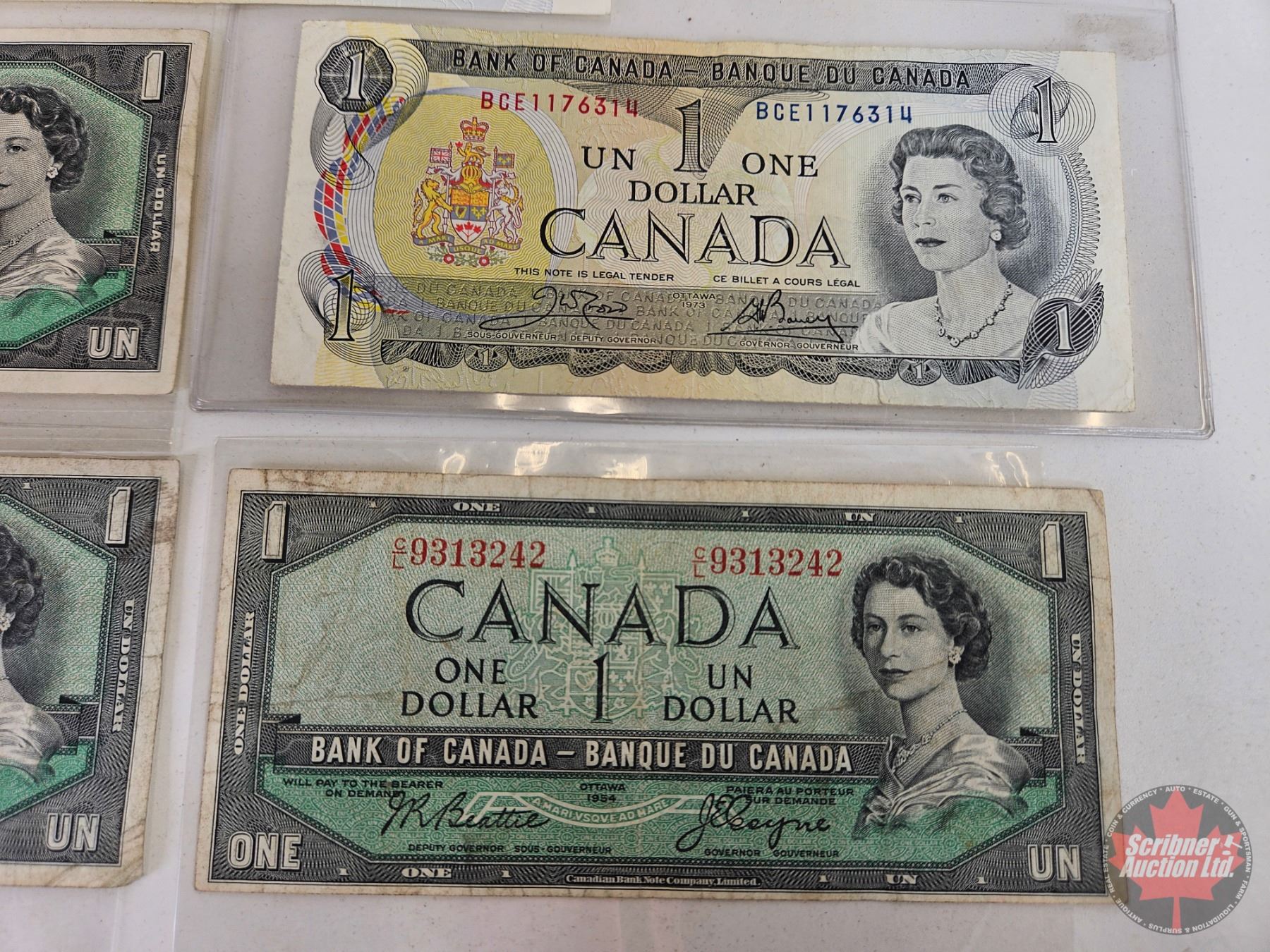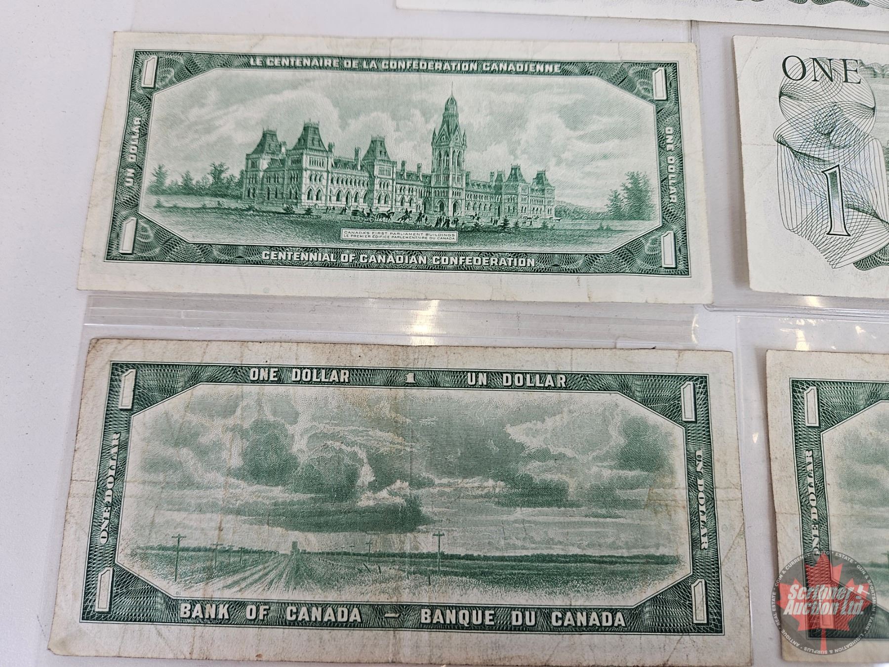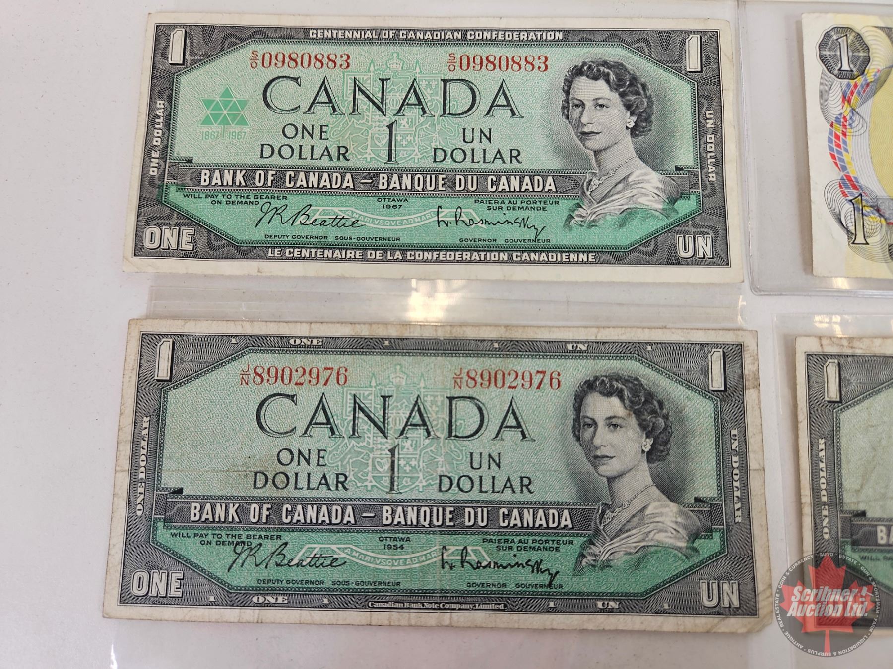 Canada $1 Bills (5) (Variety) : 1954; 1967 ; 1973