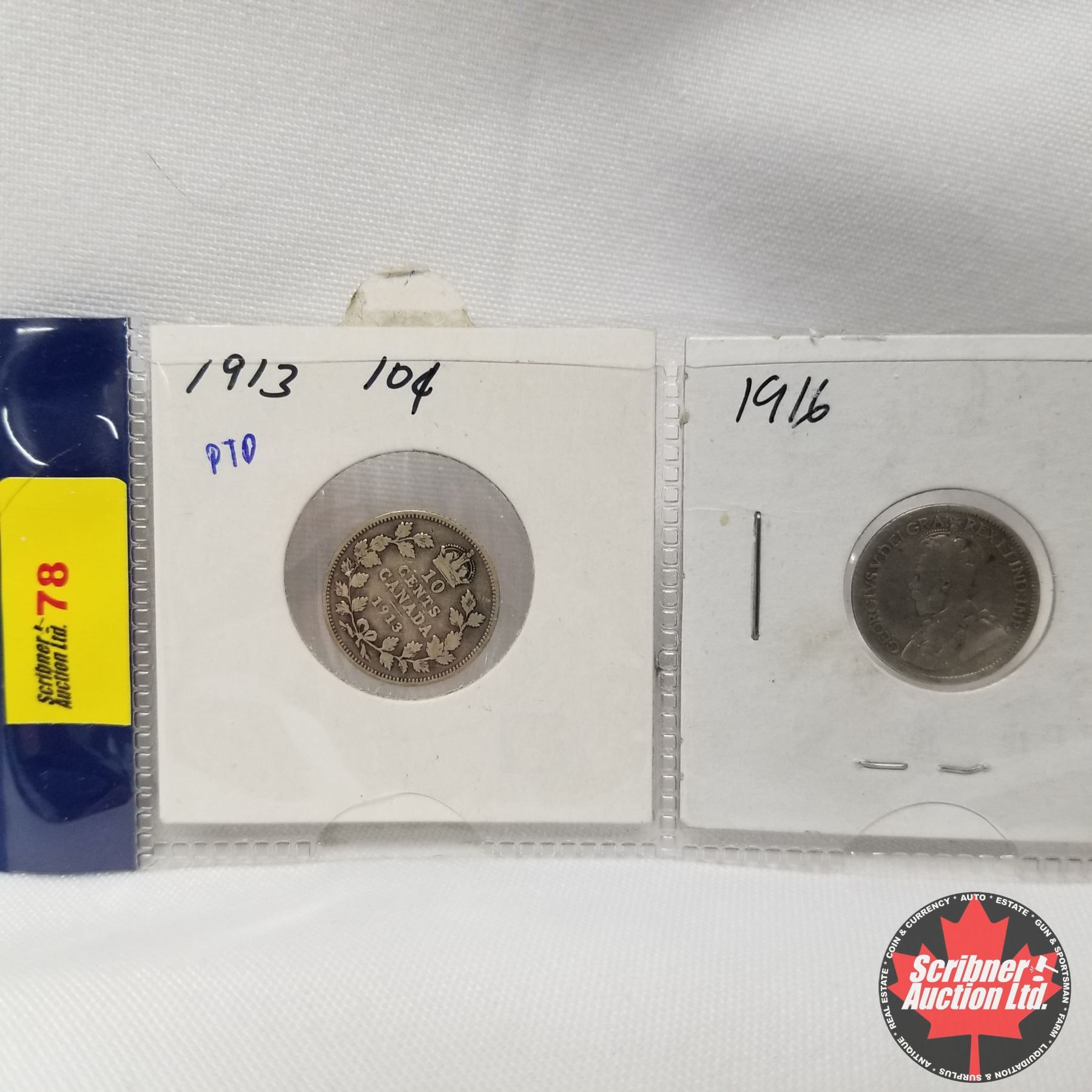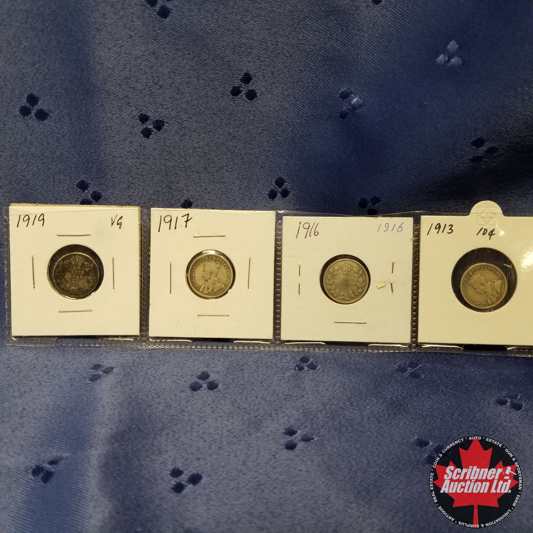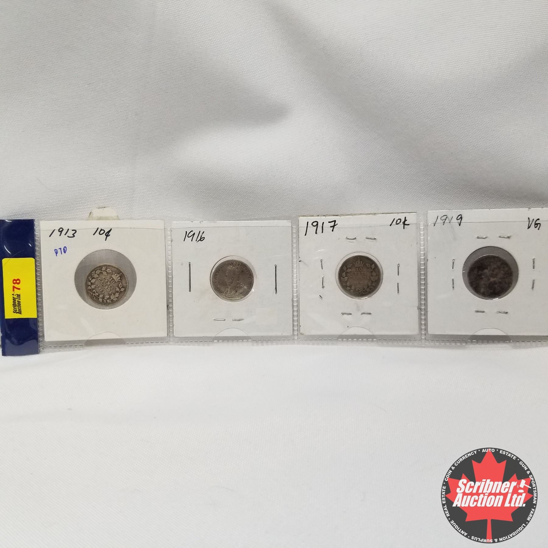 Canada 10¢ - Strip of 4: 1913, 1916, 1917, 1919