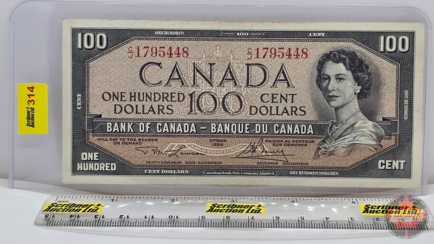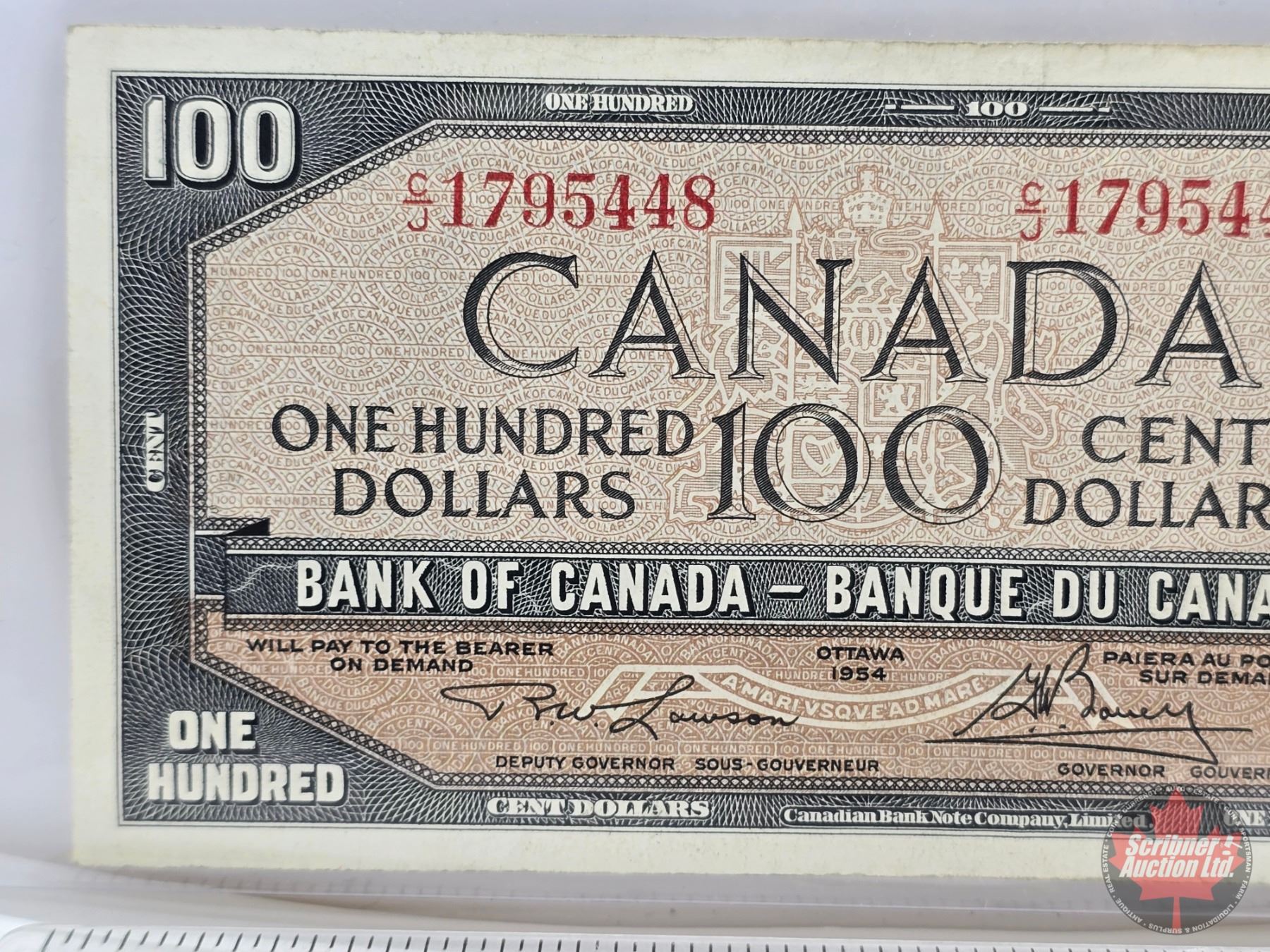 Canada $100 Bill 1954 : Lawson/Bouey #CJ1795448 (See Pictures for Varieties, Conditions, Serial Numb