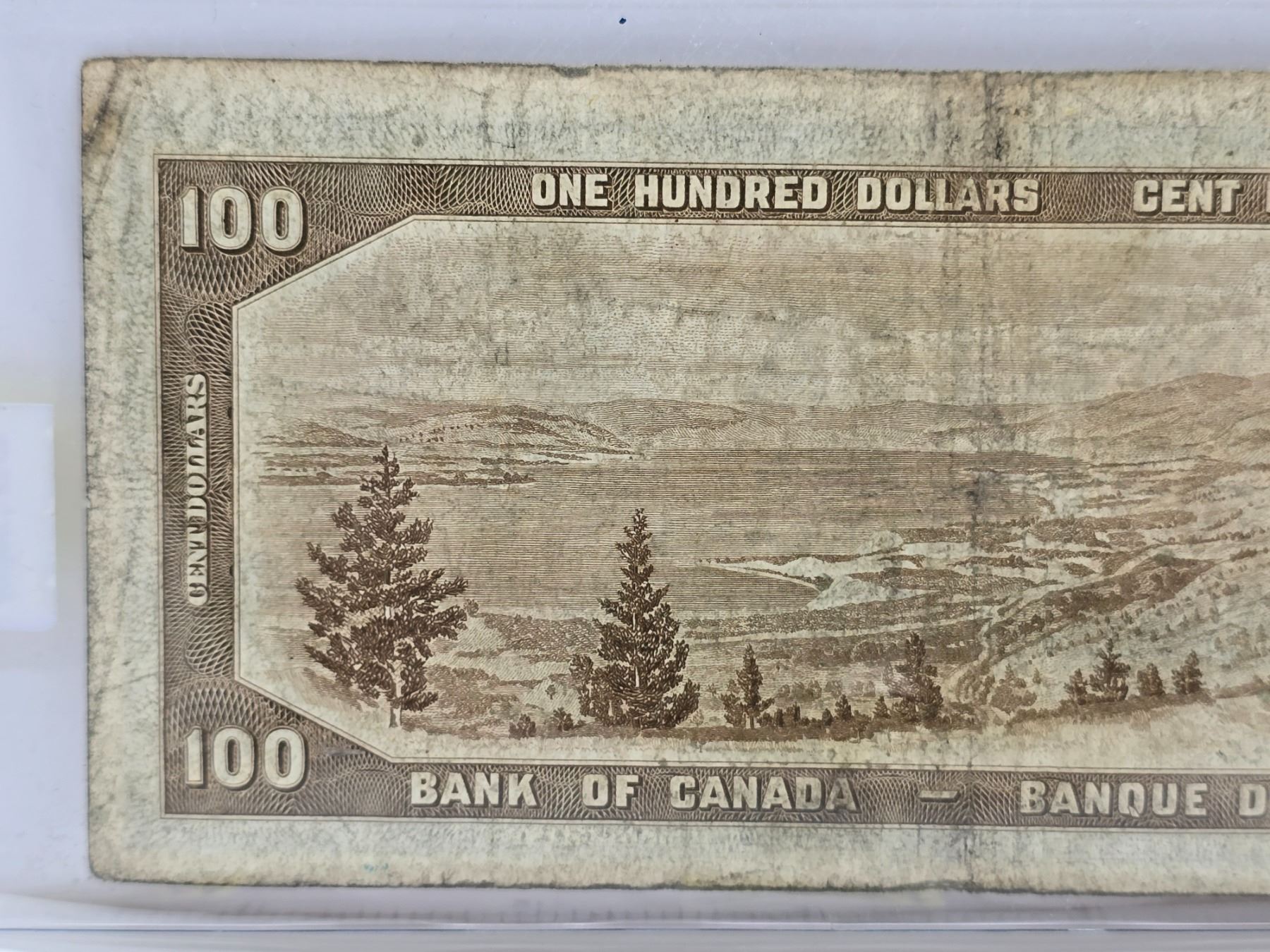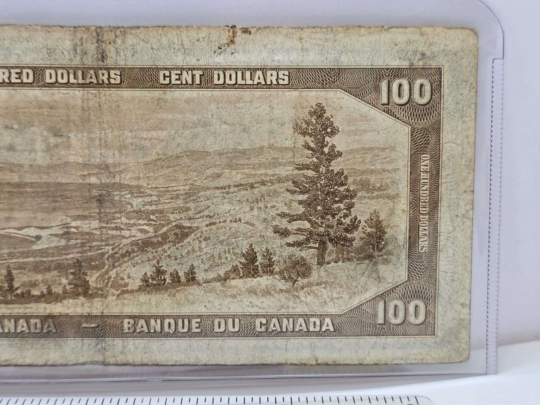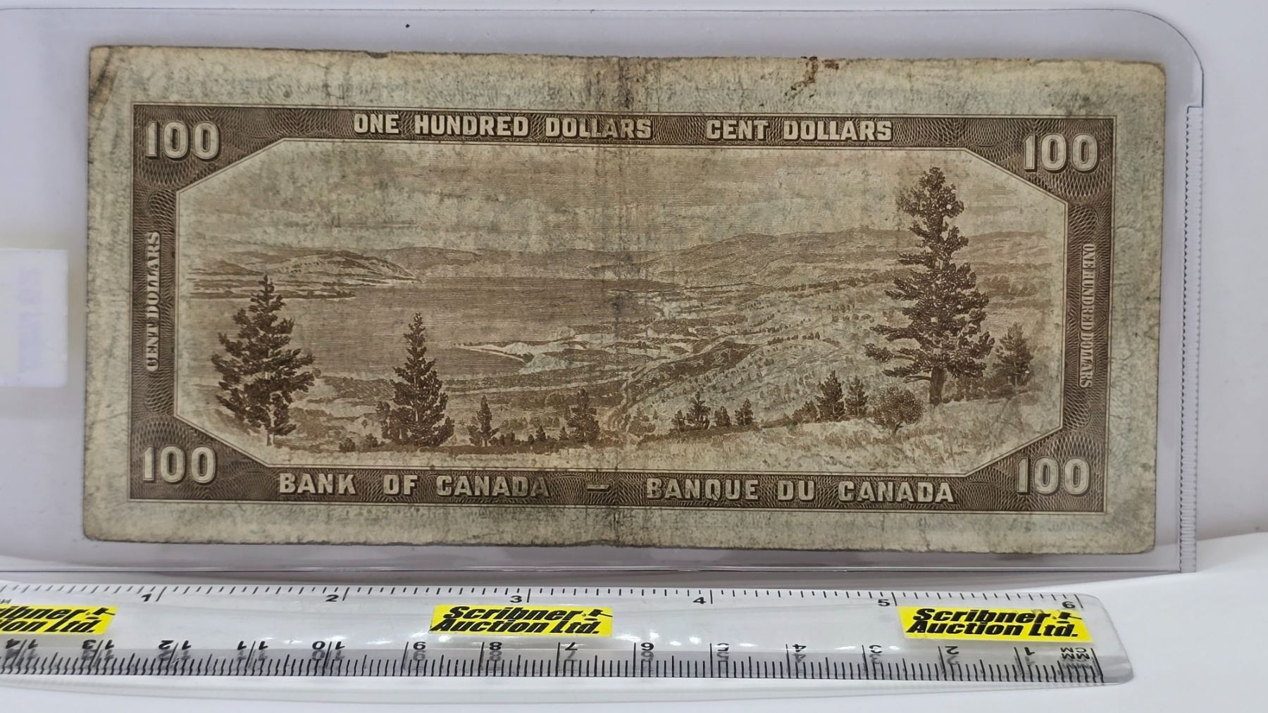 Canada $100 Bill 1954DF "Devil's Face" : Coyne/Towers #AJ0279084 (See Pics for Varieties, Conditions, Serial Numbers, Printing Dates & Signatures) (Listing & Descriptions are a GUIDE ONLY and are subject to changes, errors, additions or deletions. Please use the provided pictures to satisfy yourself to the Condition and/or Grades. Please Read & Understand All Terms & Conditions for this Auction Sale.)