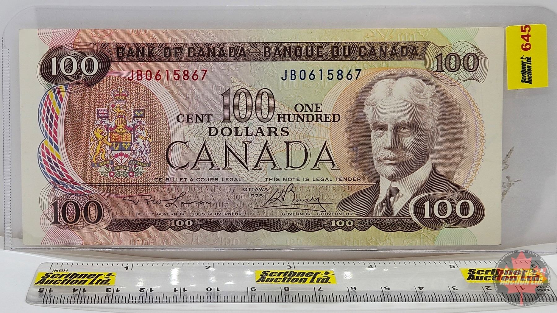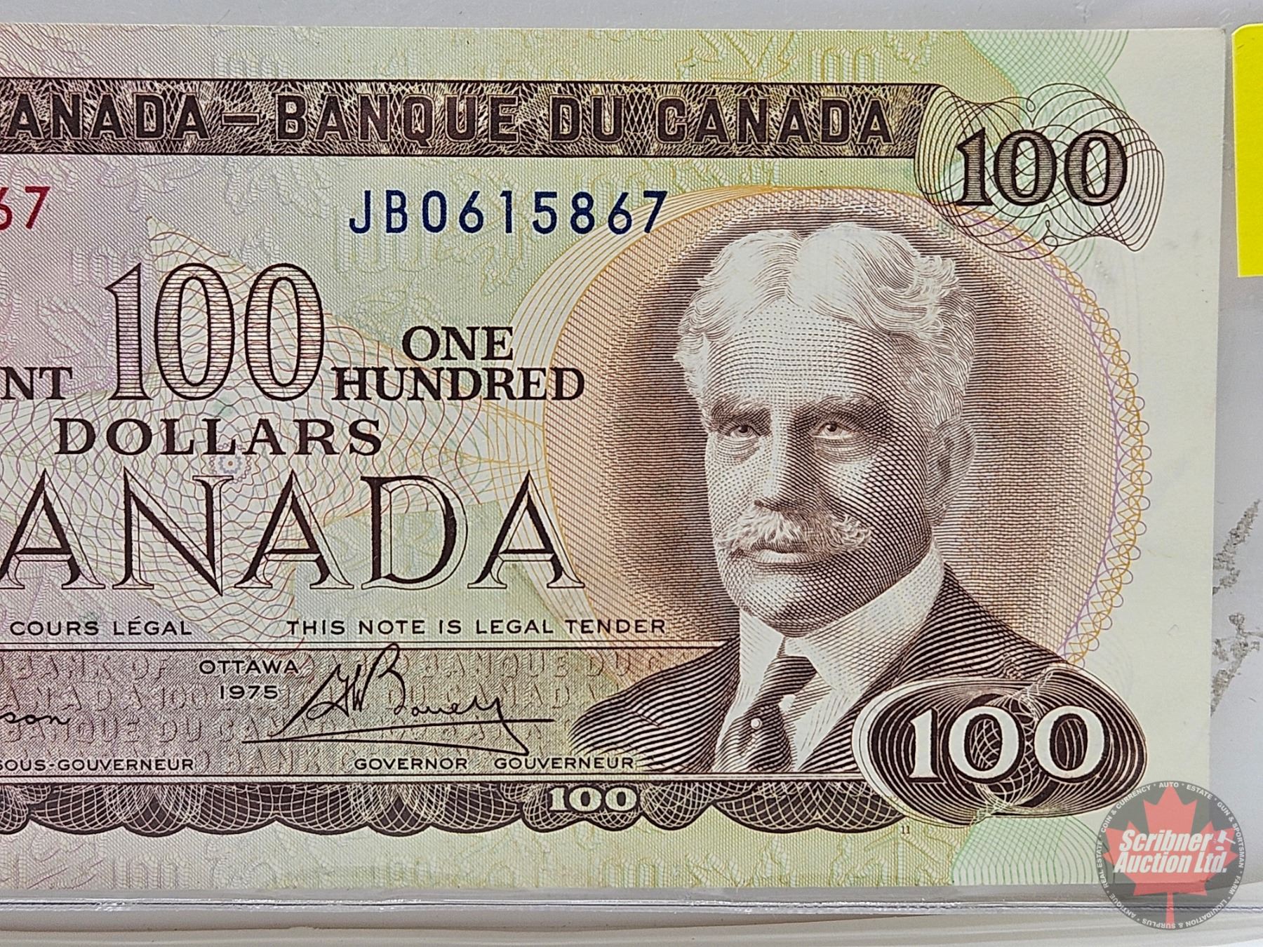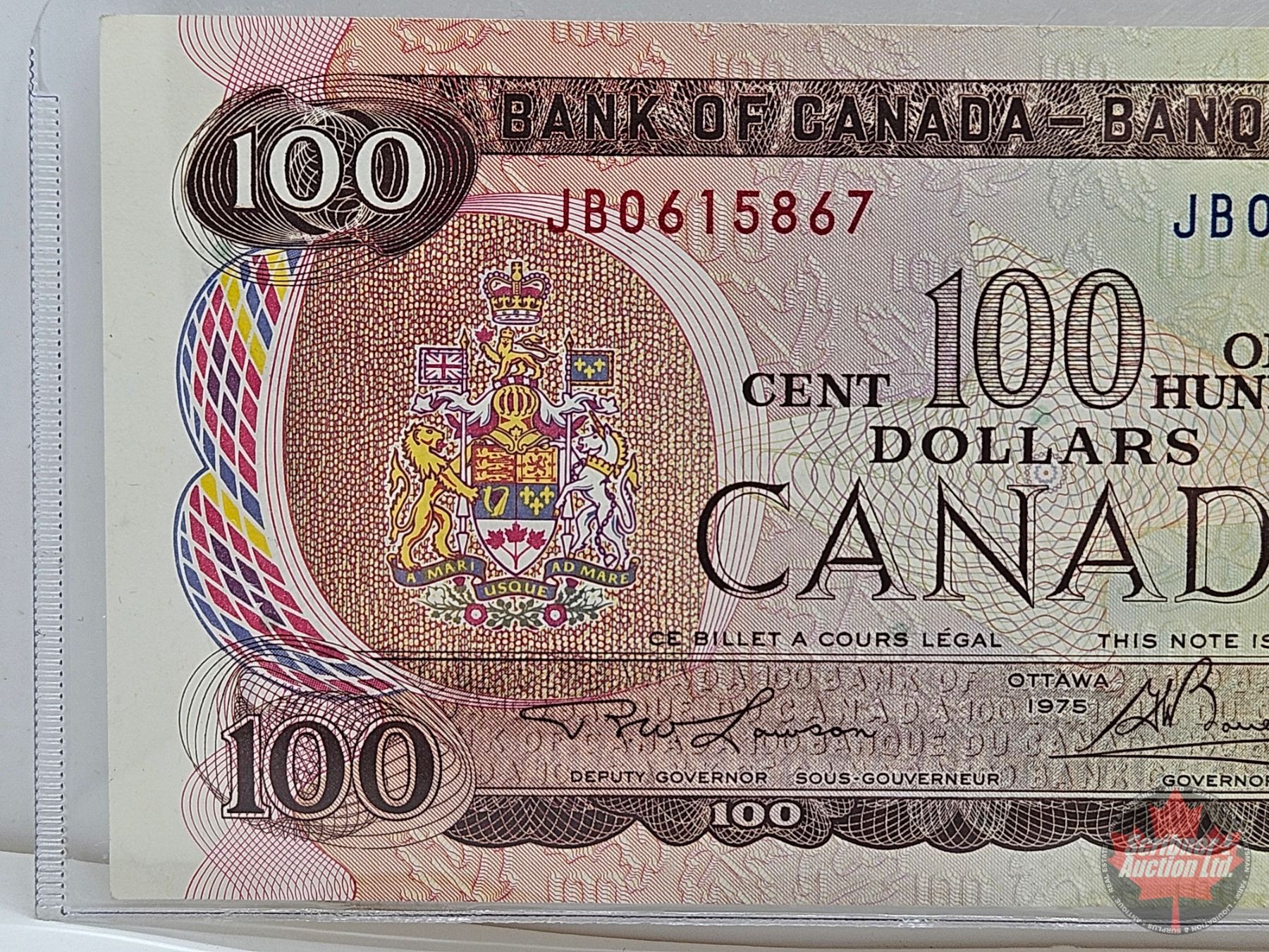 Canada $100 Bill 1975 : Lawson/Bouey #JB0615867 (See Pictures for Varieties, Conditions, Serial Numb
