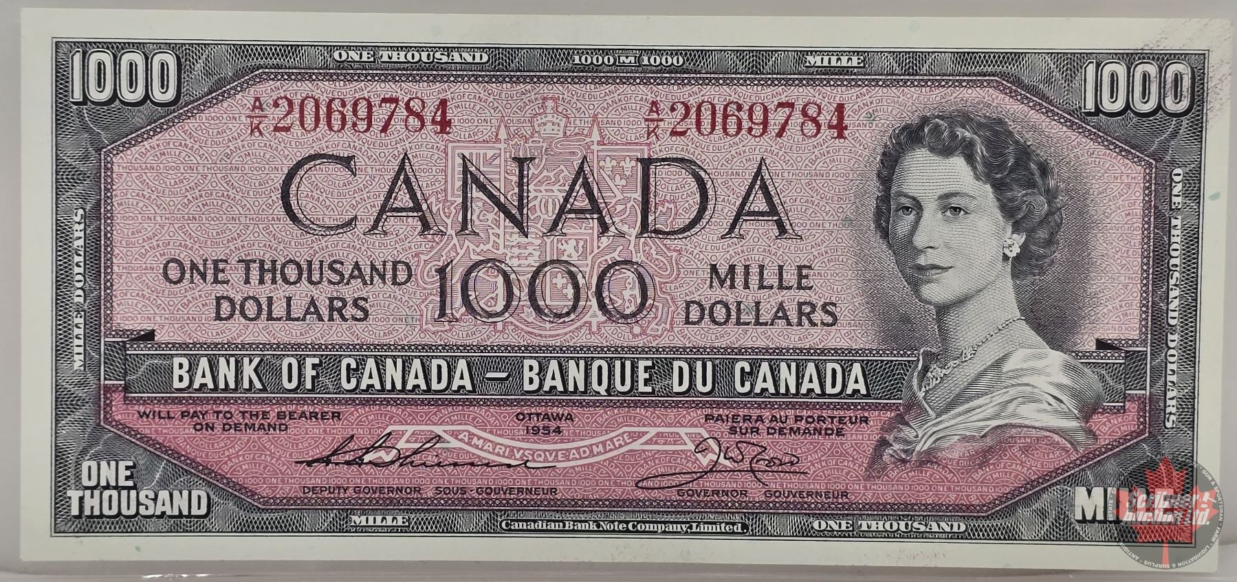 Canada $1000 Bill 1954 : Thiessen/Crow #AK2069784